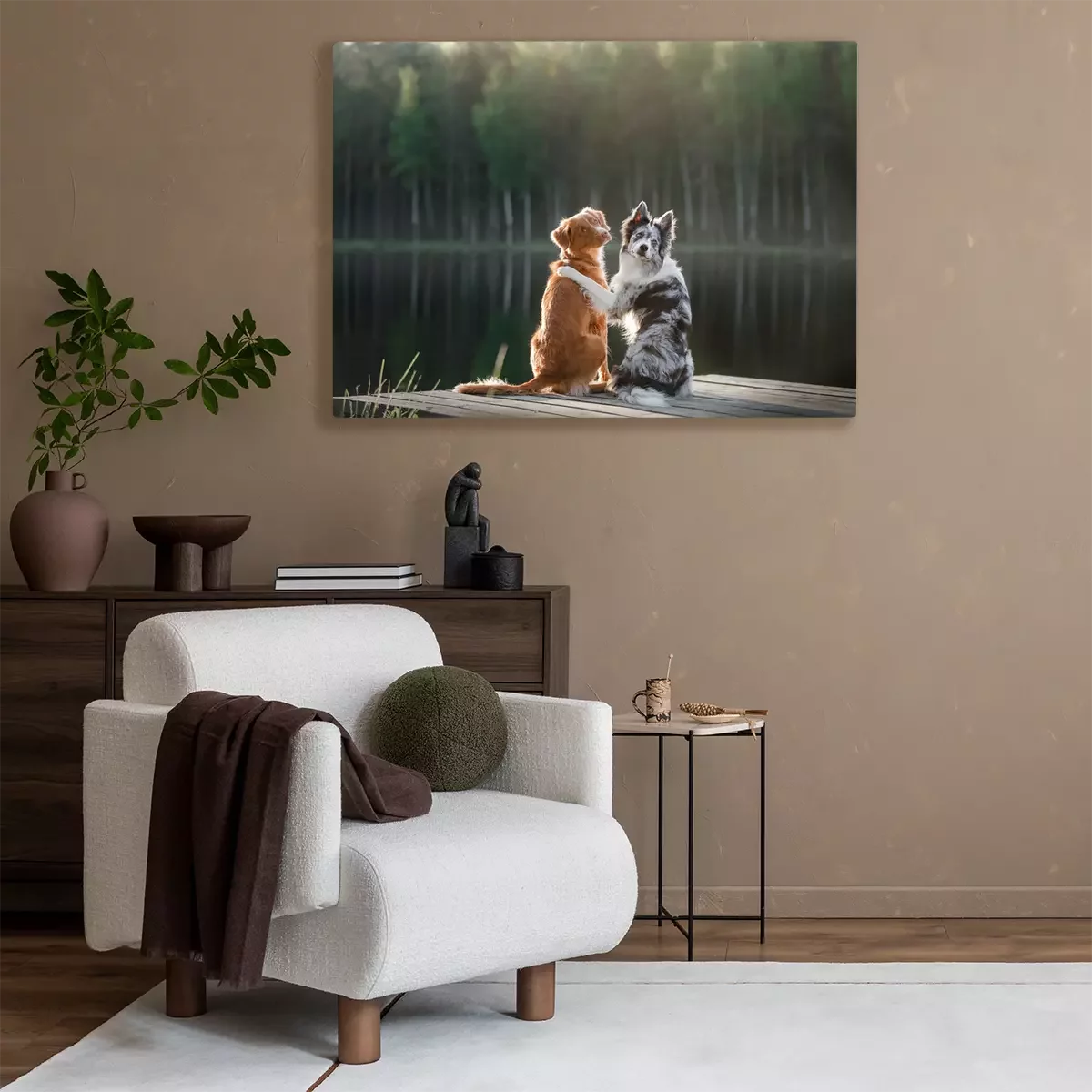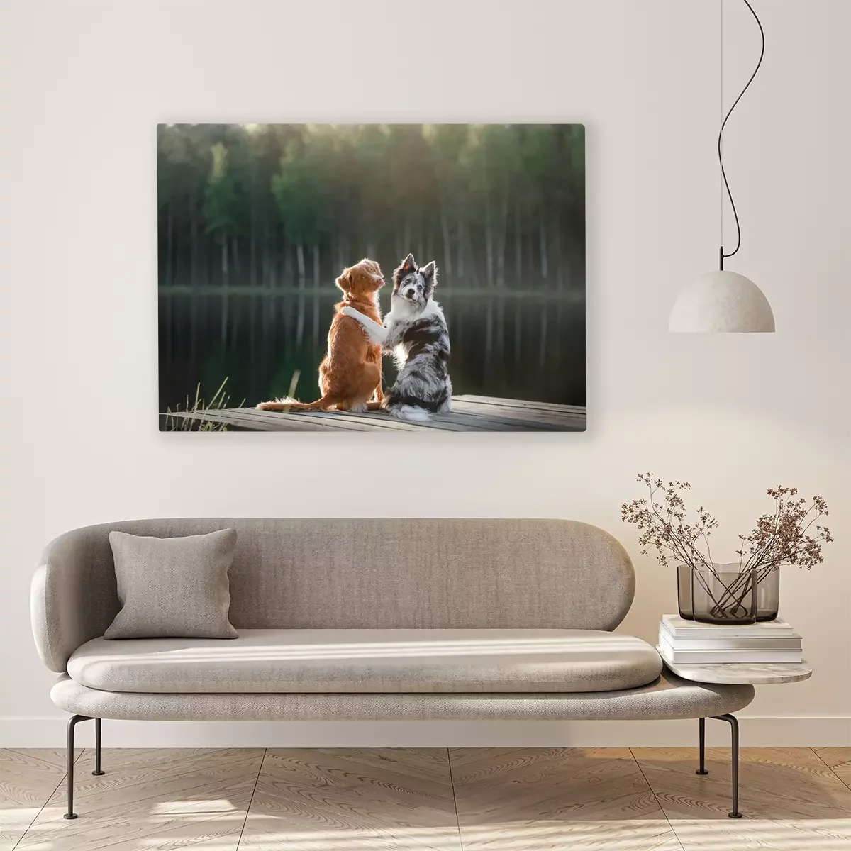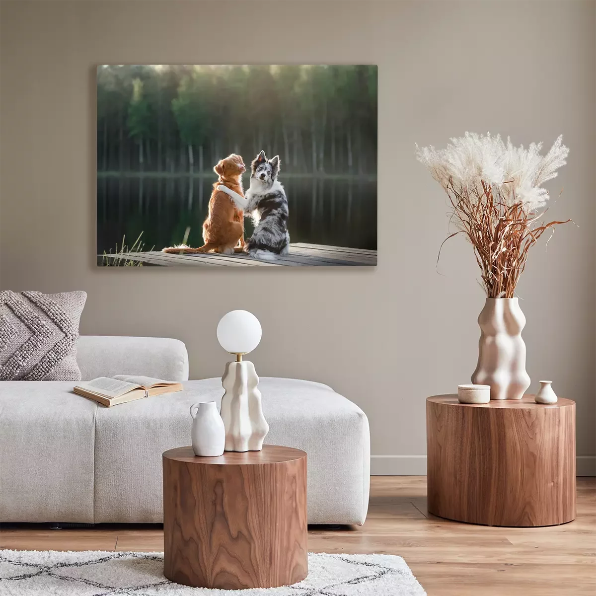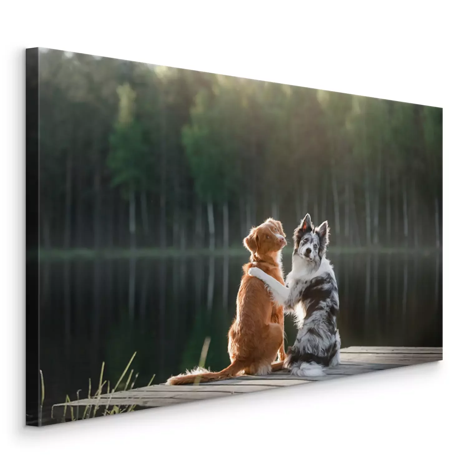 Tableau : Chiens au bord du lac
