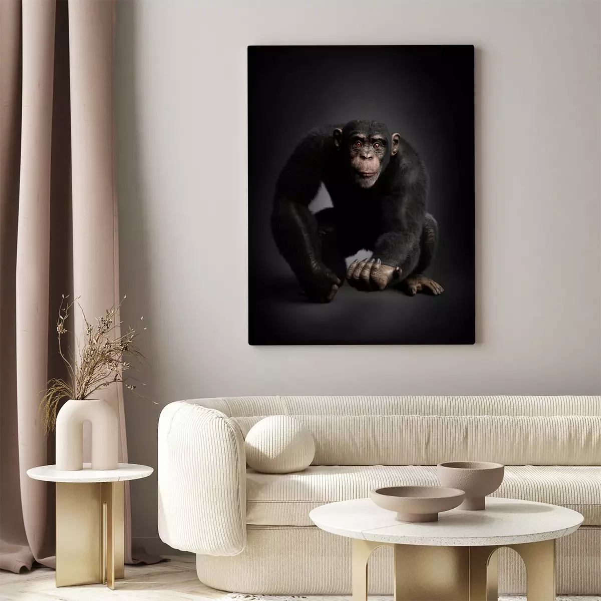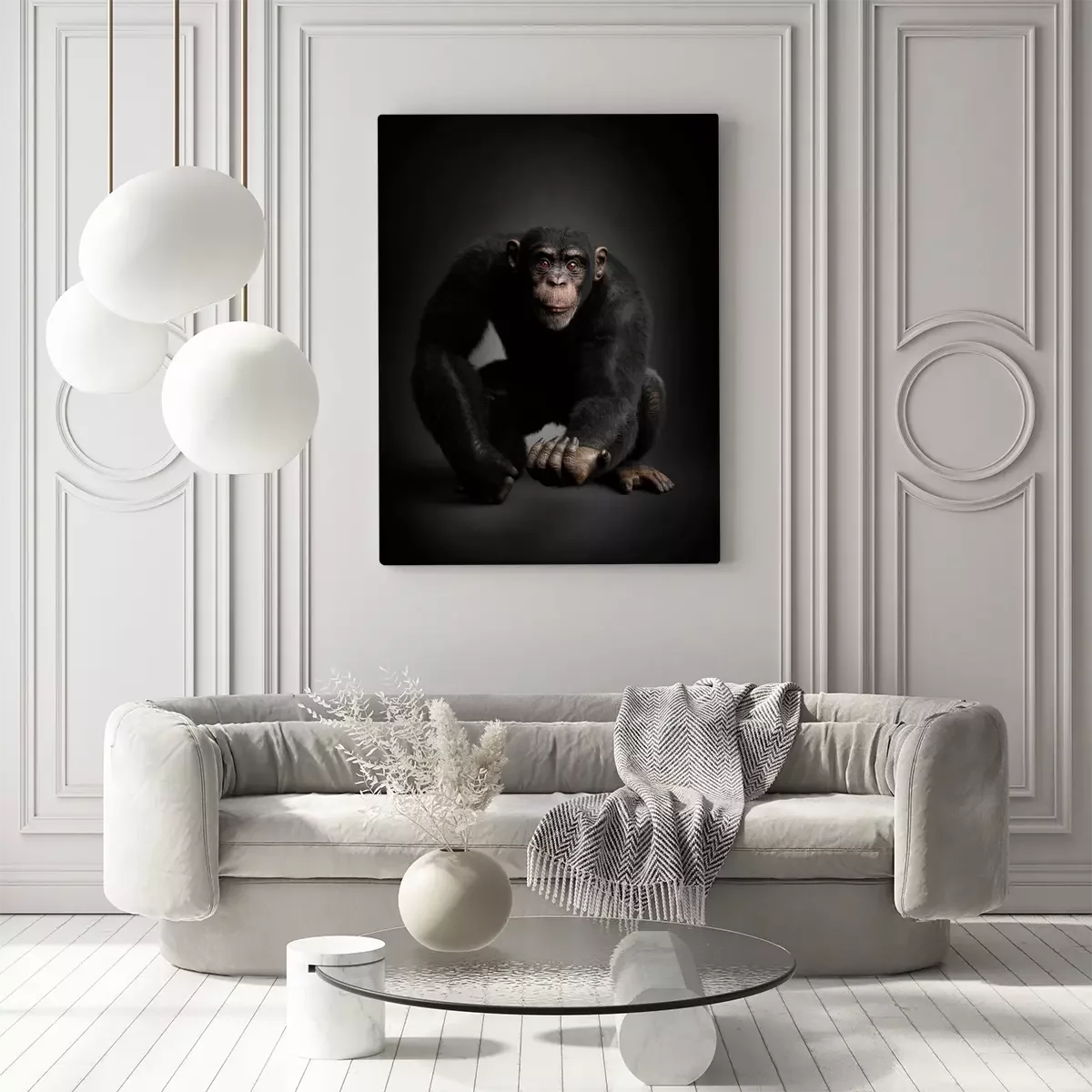 Tableau : Chimpanzé adulte sur fond noir