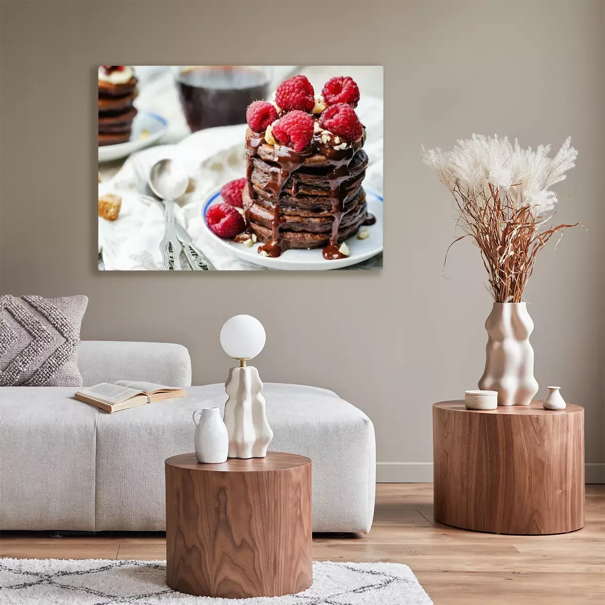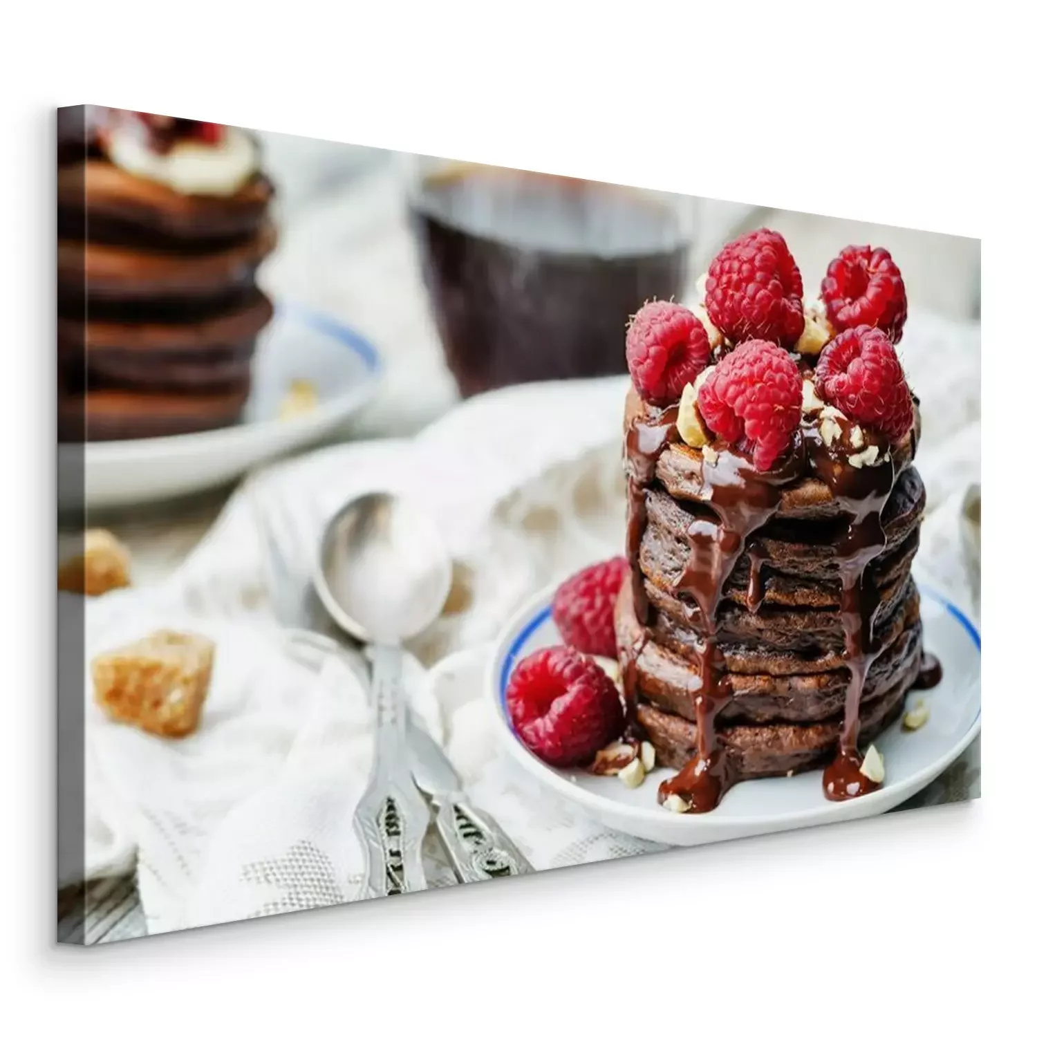 Tableau  Chocolate pancake with bananas, raspberries, nuts and chocolate