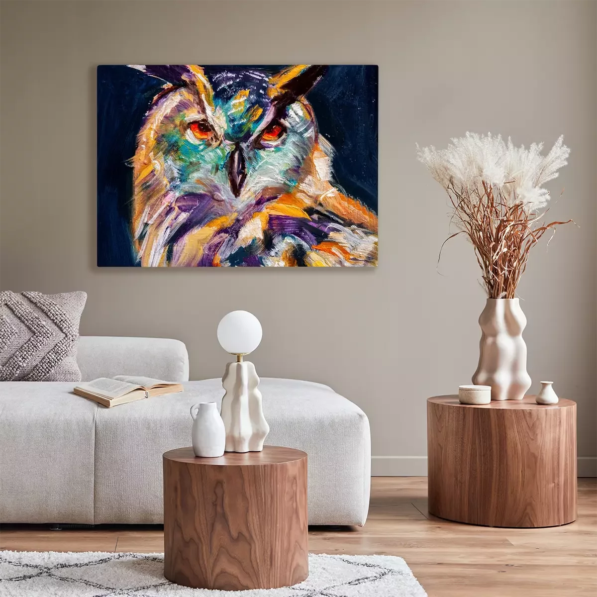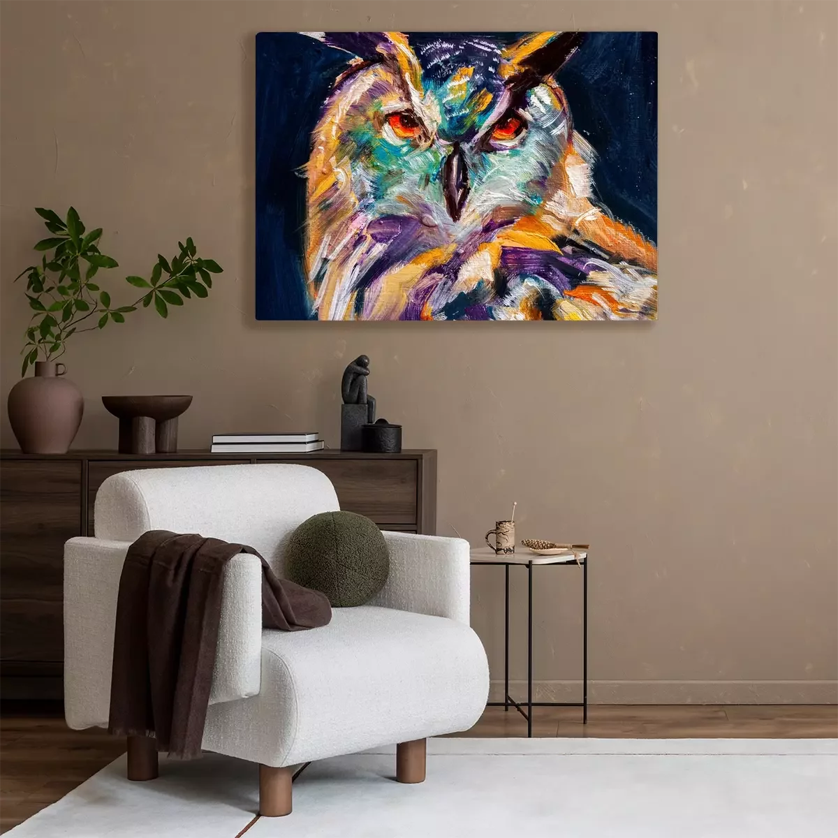 Tableau : Chouette colorée peinte