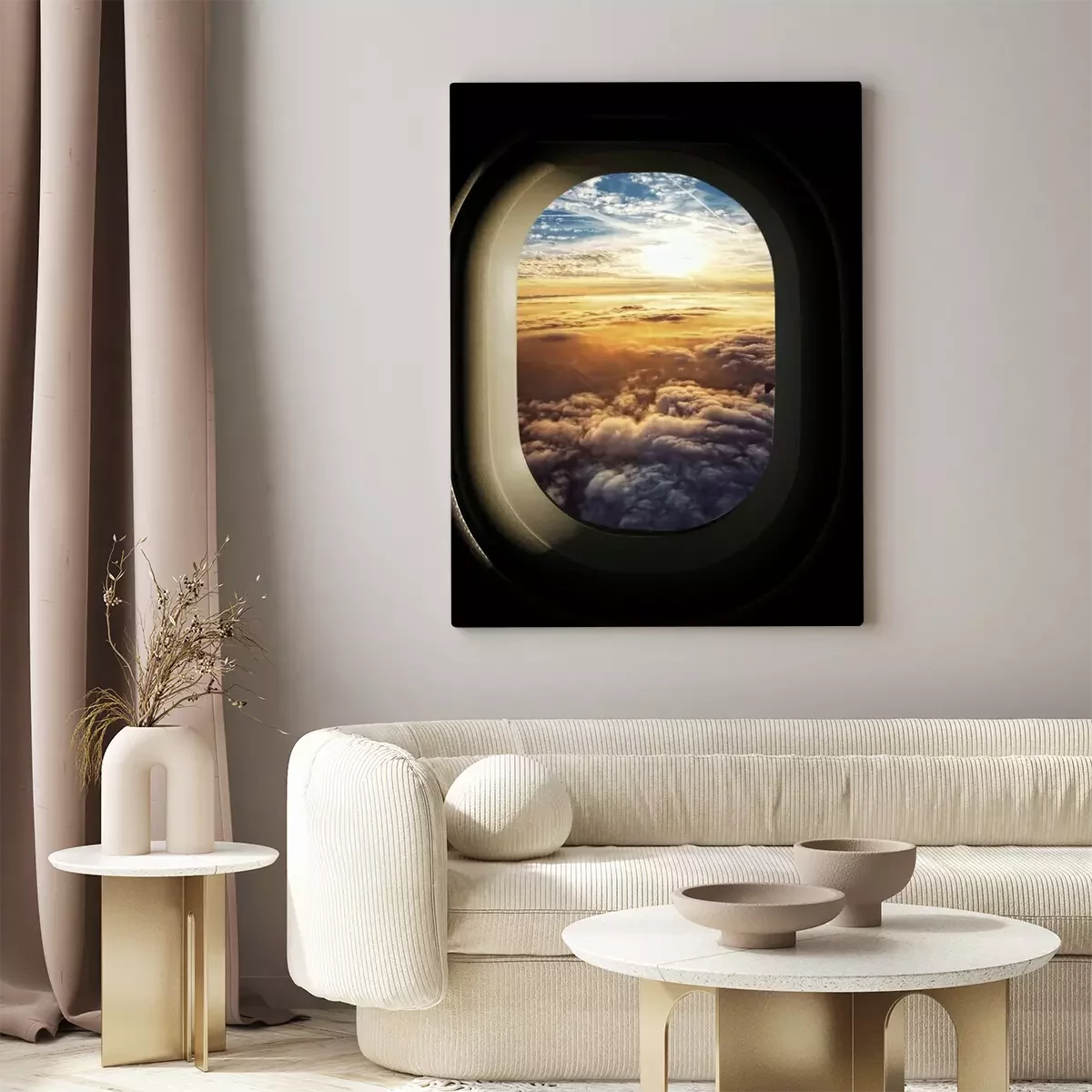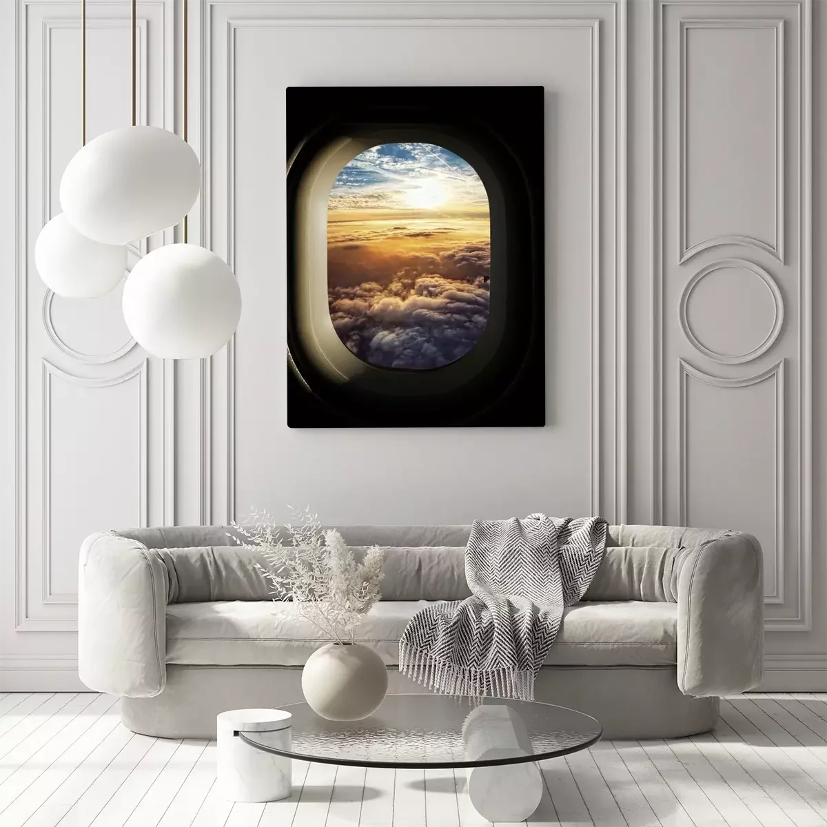 Tableau : Ciel céleste vu à travers les fenêtres d'un avion