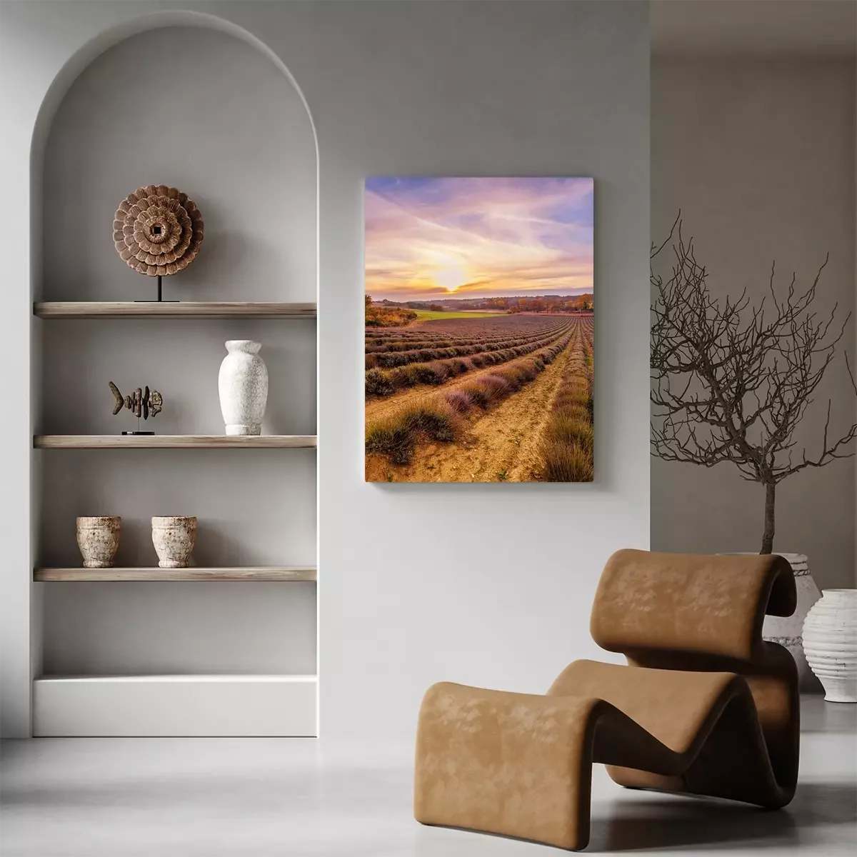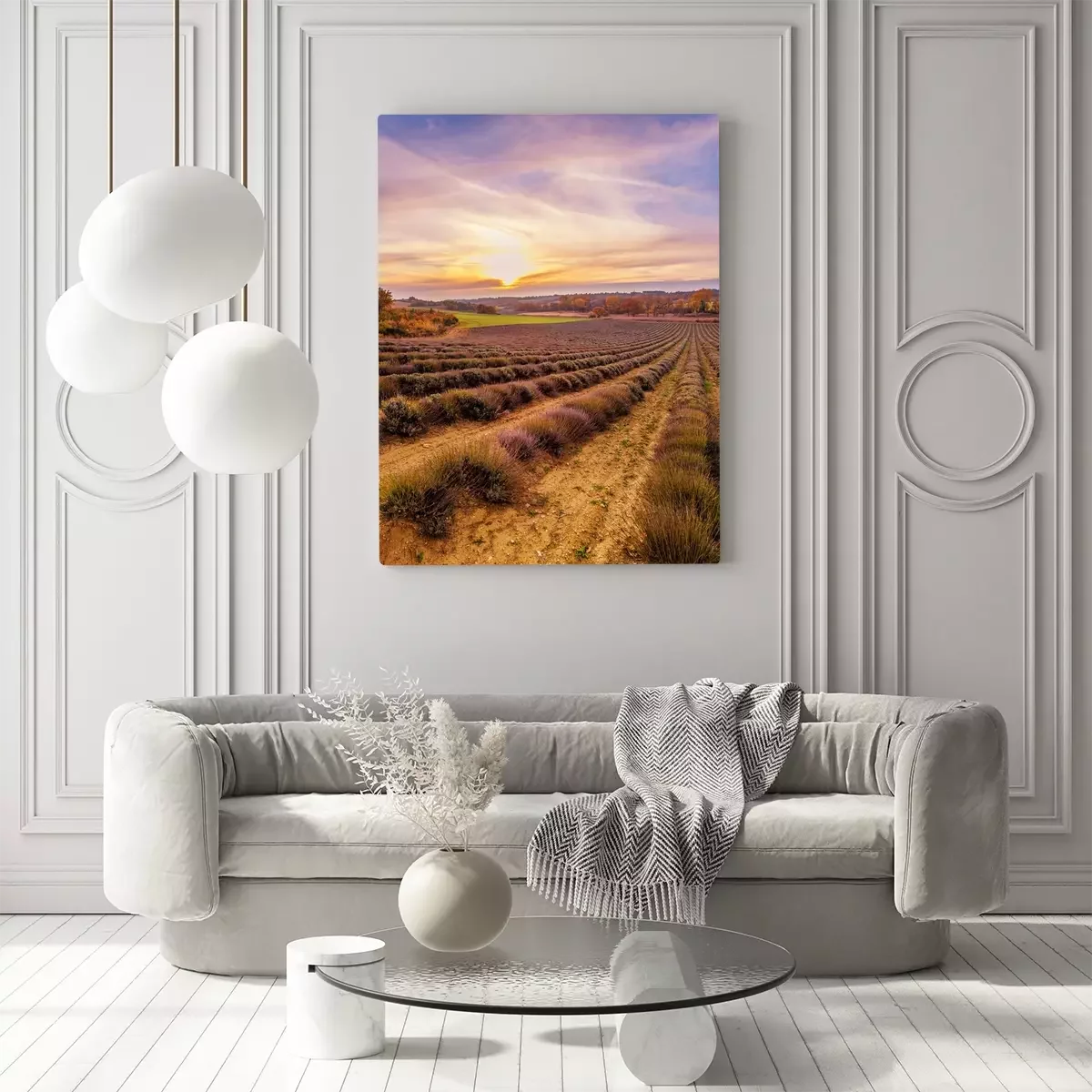 Tableau : Ciel coloré sur un champ de lavande