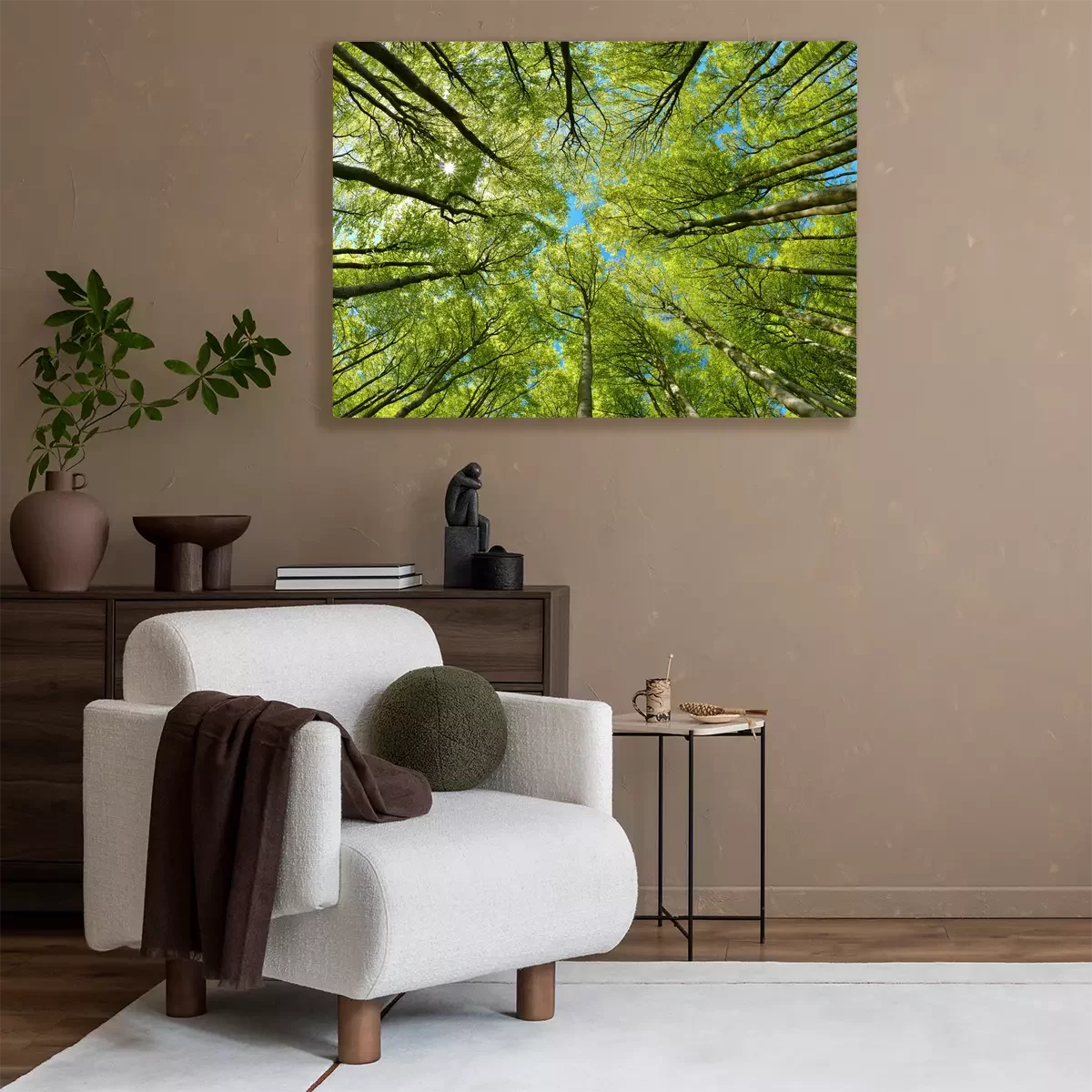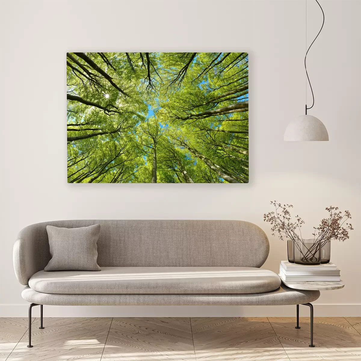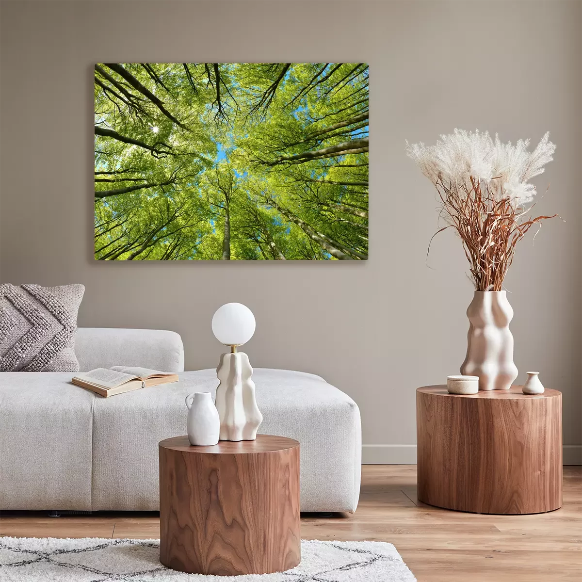 Cimes vertes des arbres se détachant sur le ciel bleu