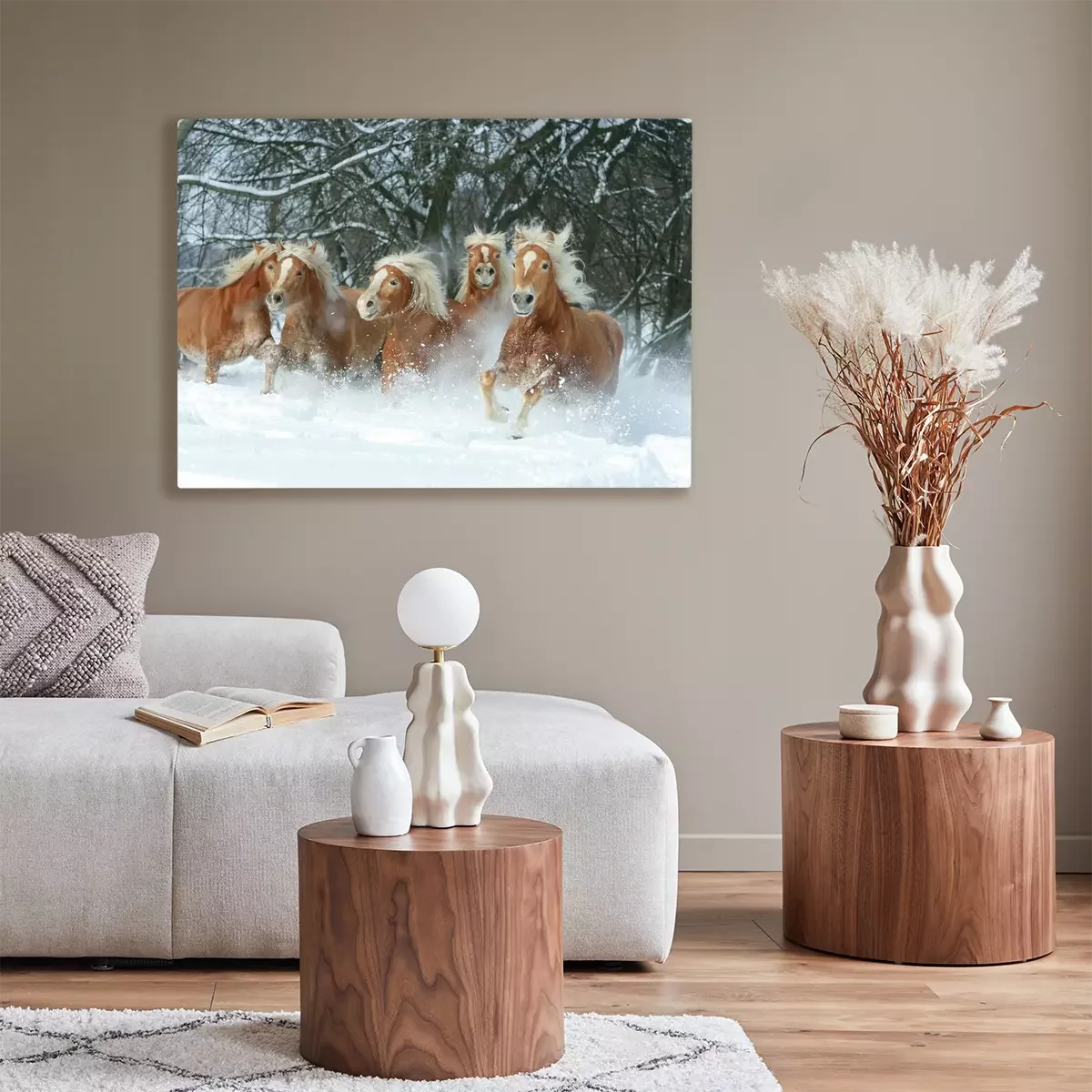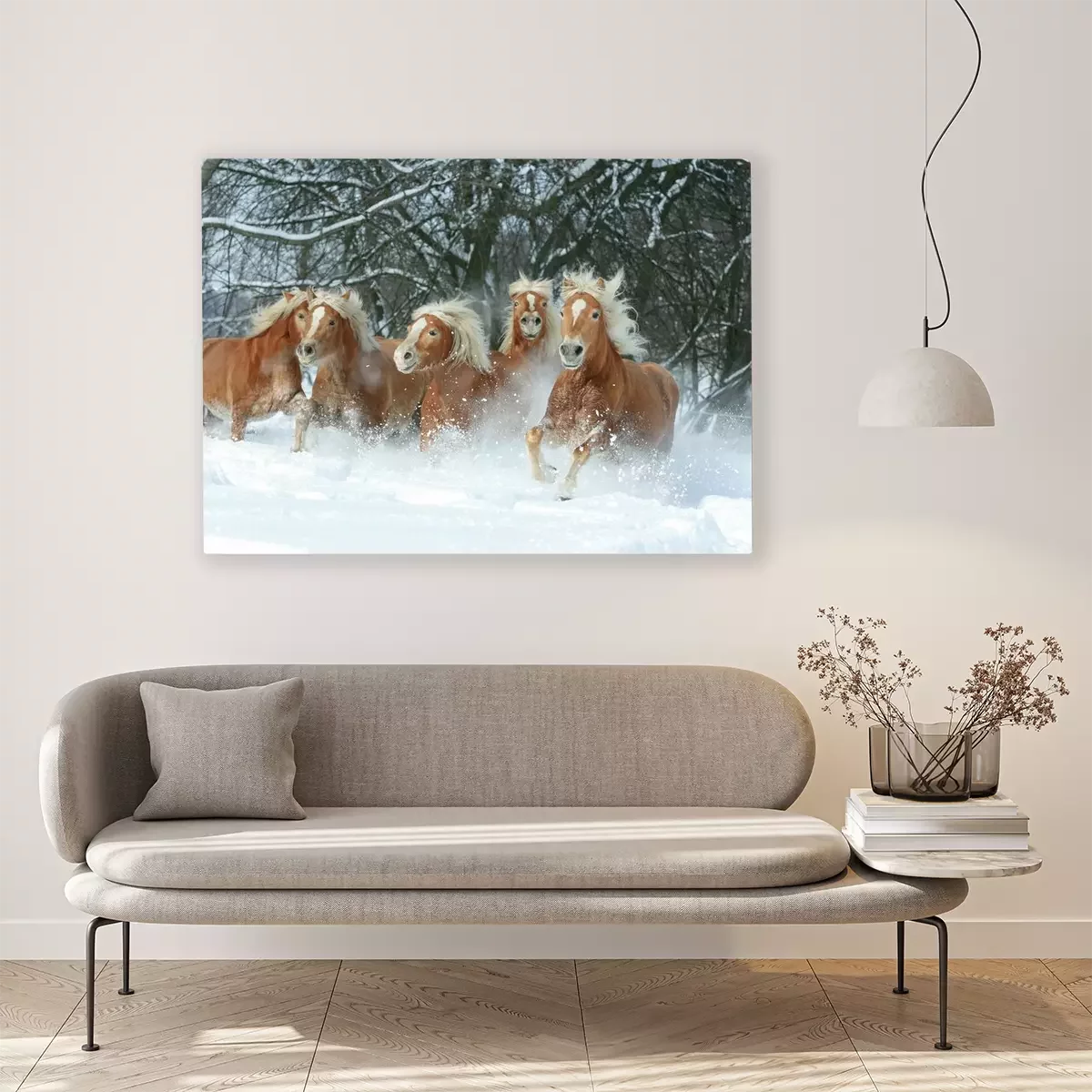 Tableau  Cinq chevaux dans la neige