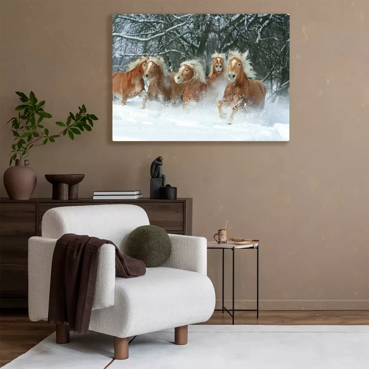 Tableau : Cinq chevaux dans la neige