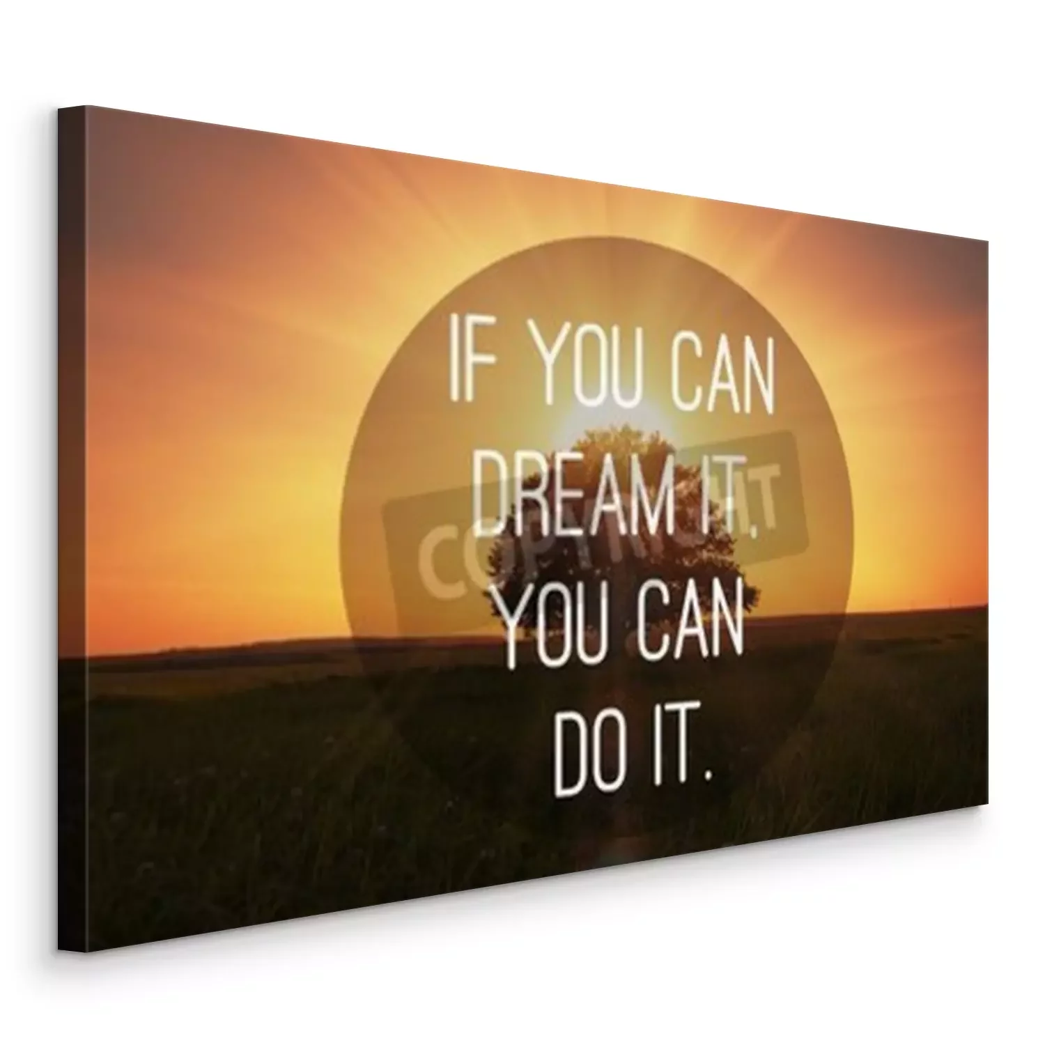 Tableau  Citation de motivation pour rendre les rêves devenus réalité sur le coucher de soleil magique avec l'arrière-plan d'arbre
