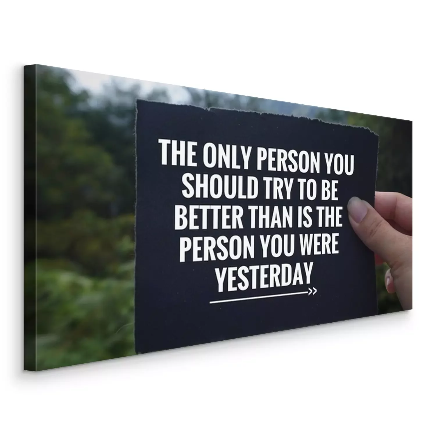 Tableau  Citation inspirante et motivante - "La seule personne que vous devriez essayer d'être meilleur que celle que vous étiez hier" est écrite sur du papier noir. Arrière-plan flou de style vintage.
