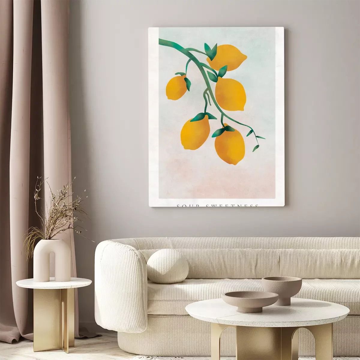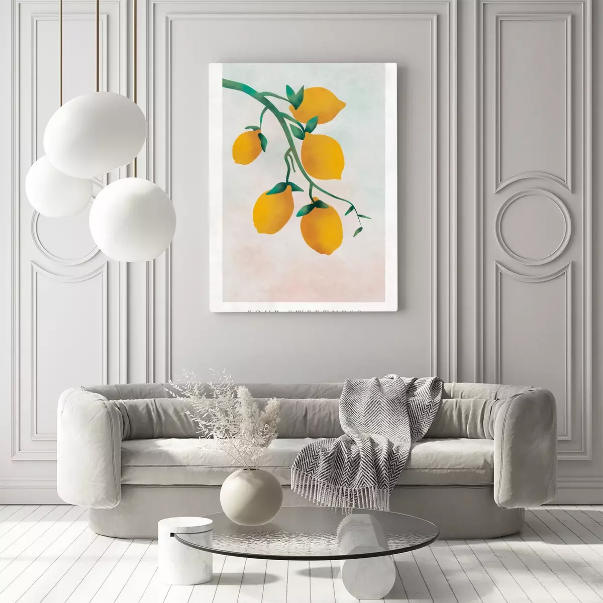 Citrons jaunes sur une branche avec des inscriptions