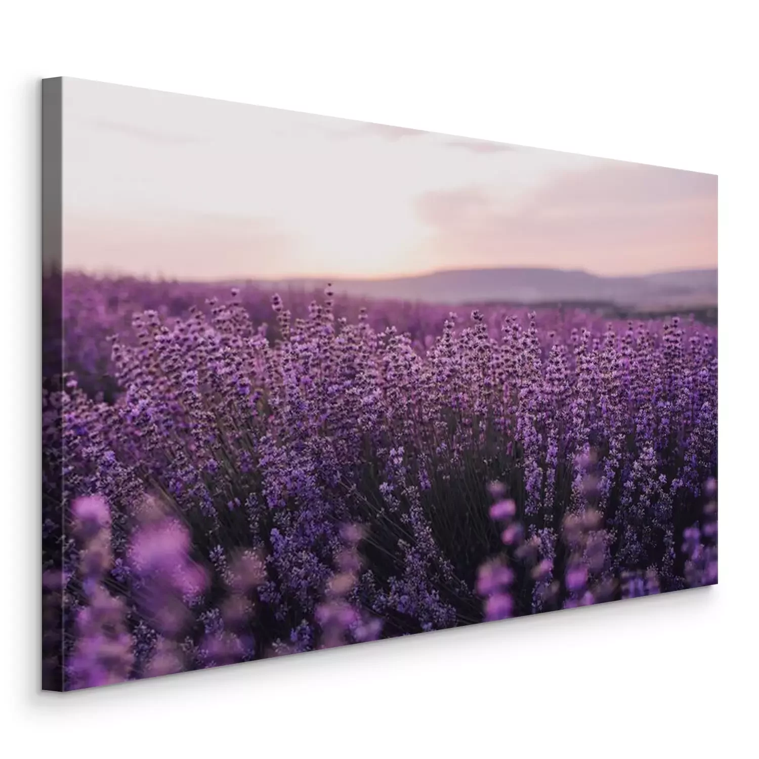 Tableau  Close up lavender flowers in beautiful field at sunset.