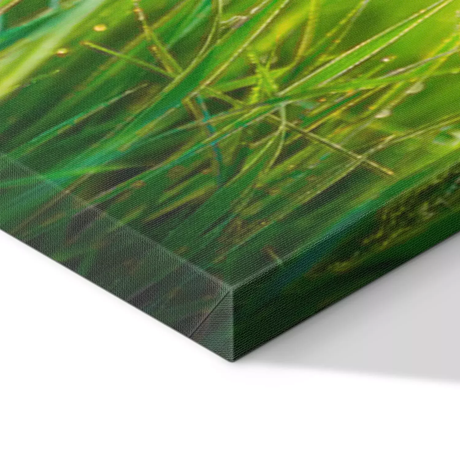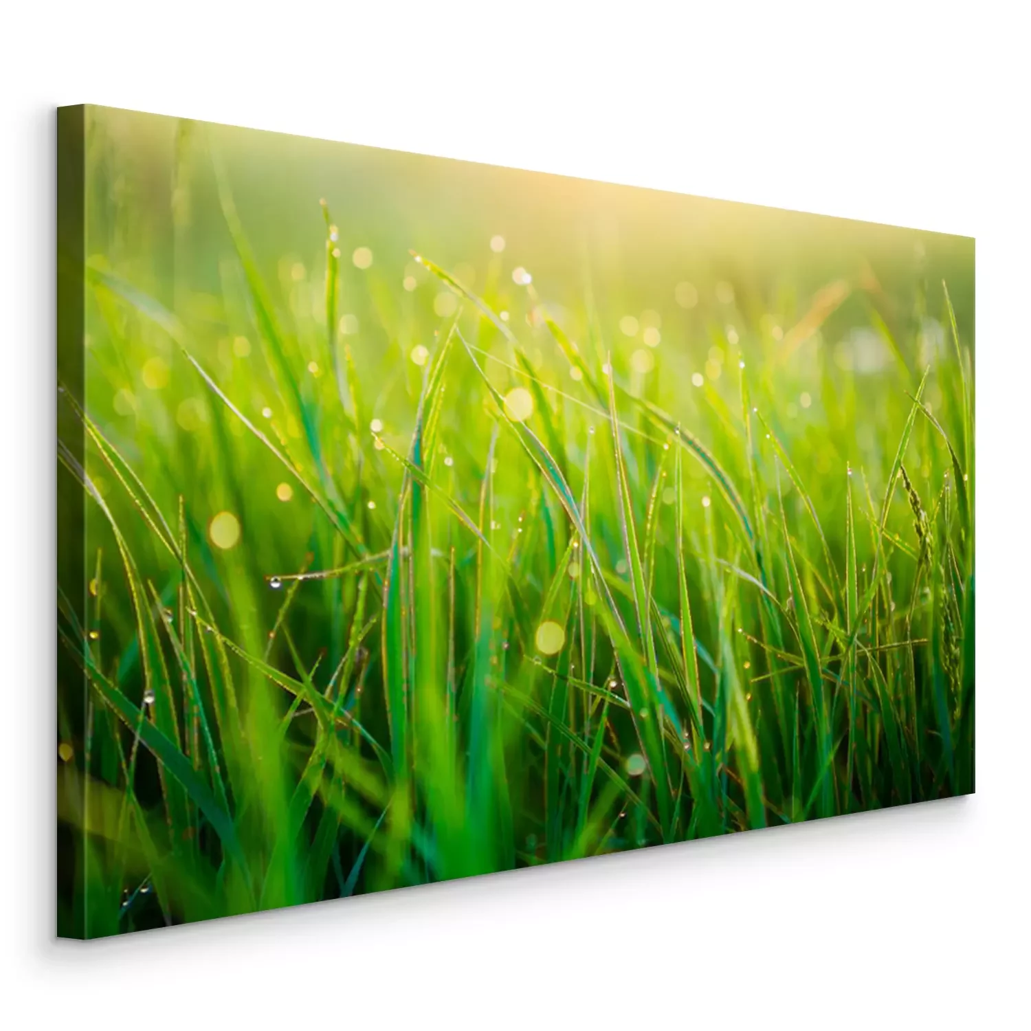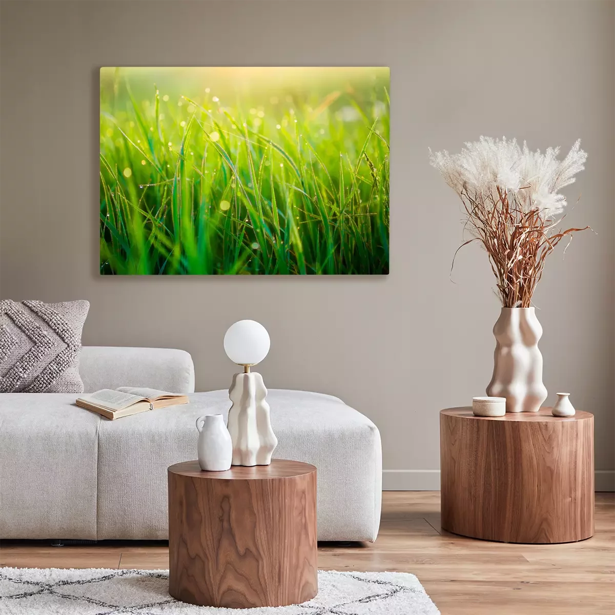 Tableau  Close up of fresh thick grass with water drops in the early morning