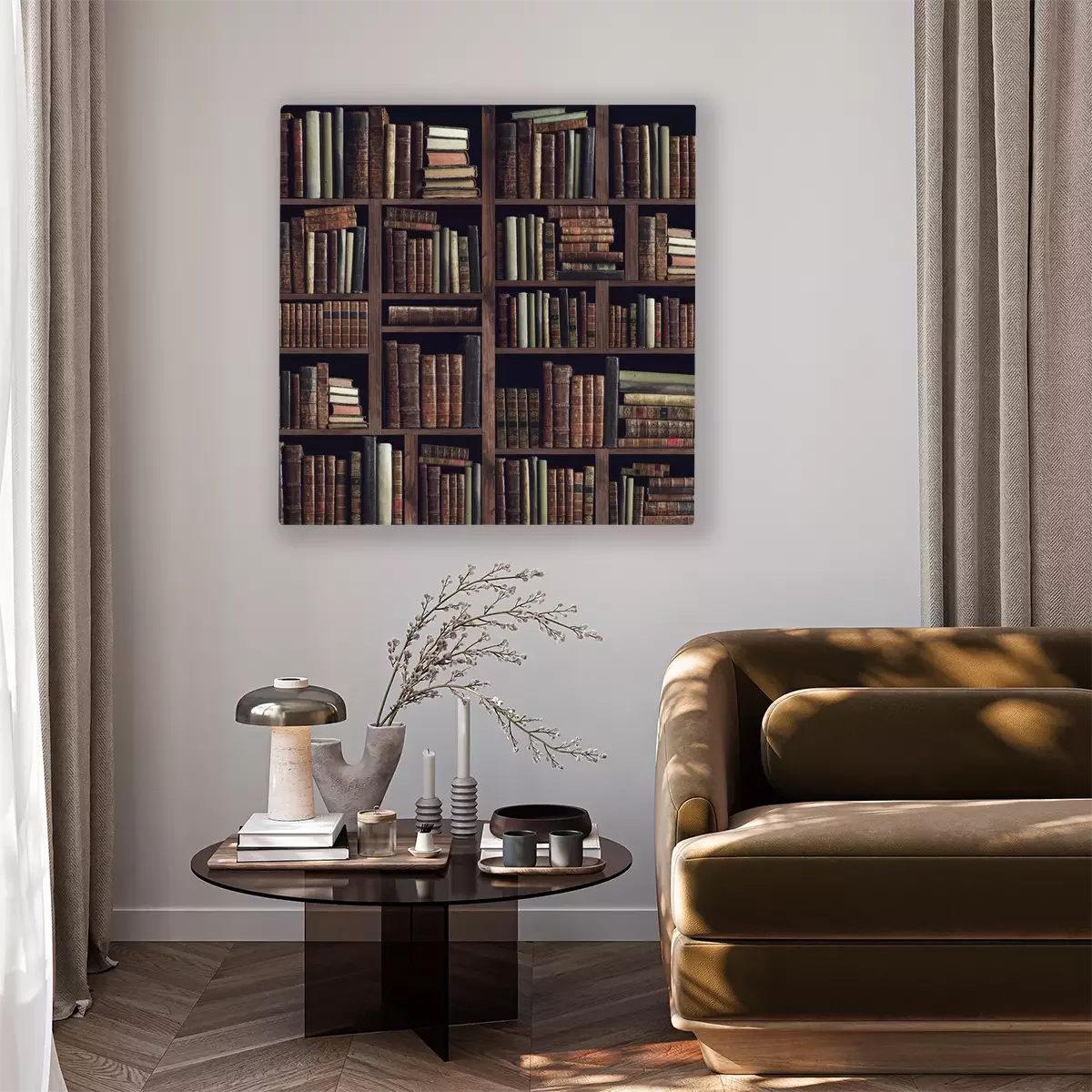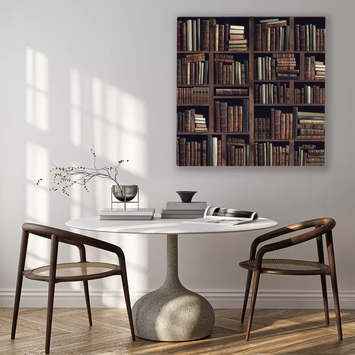 Tableau : Collection of valuable ancient books on a bookshelf