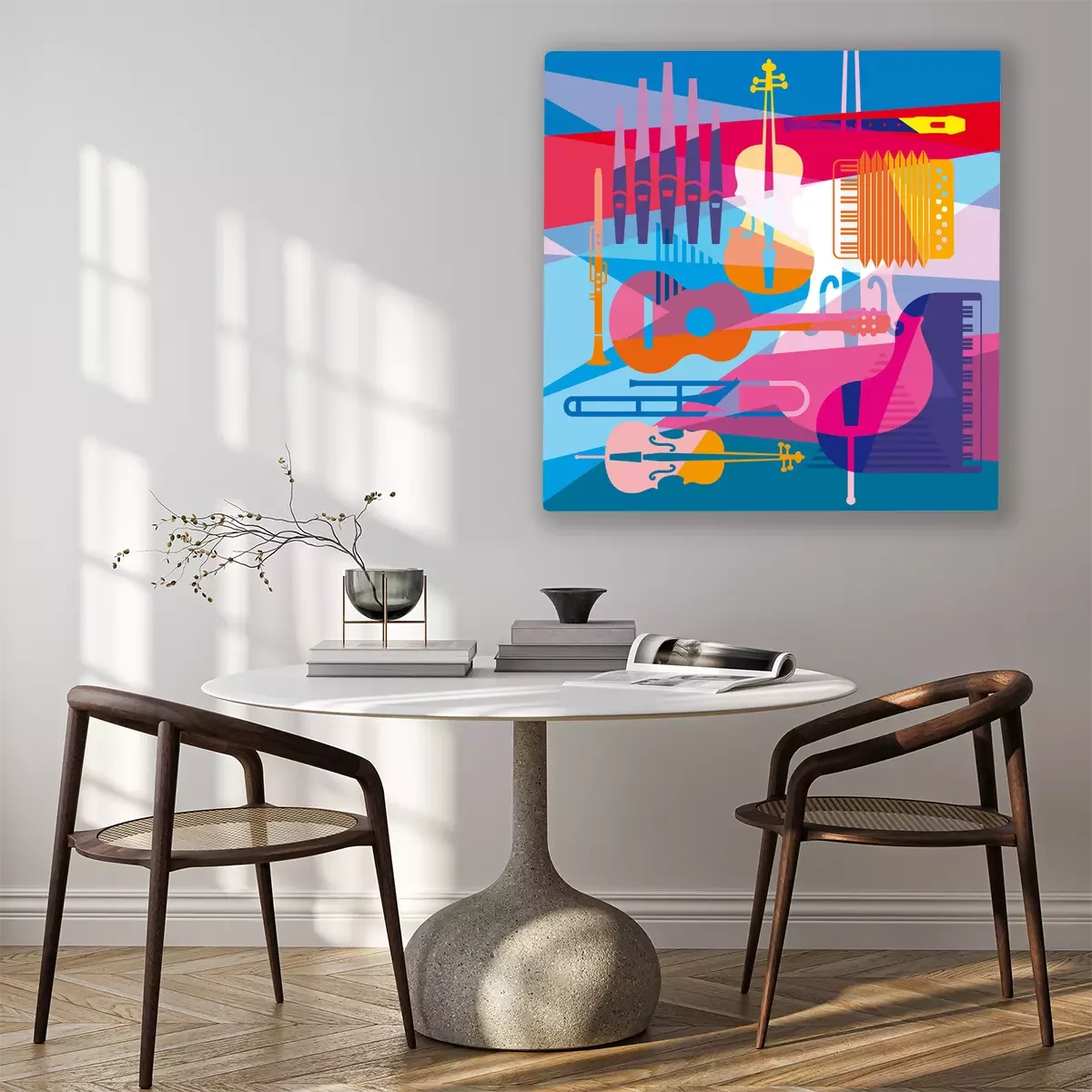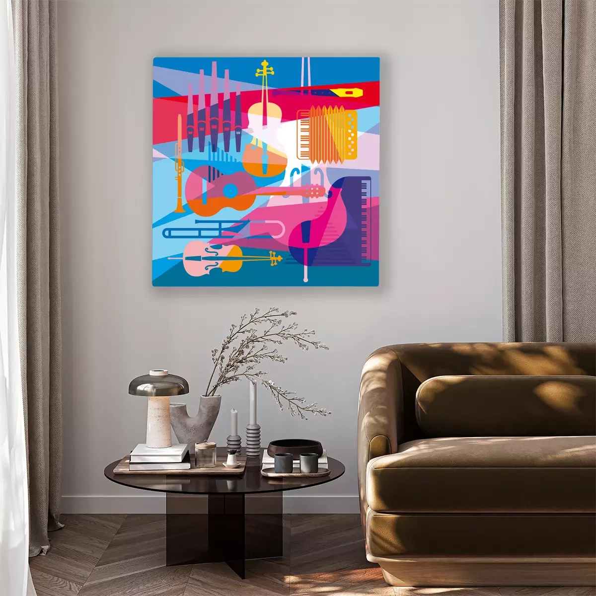 Tableau : colorful background with musical instruments