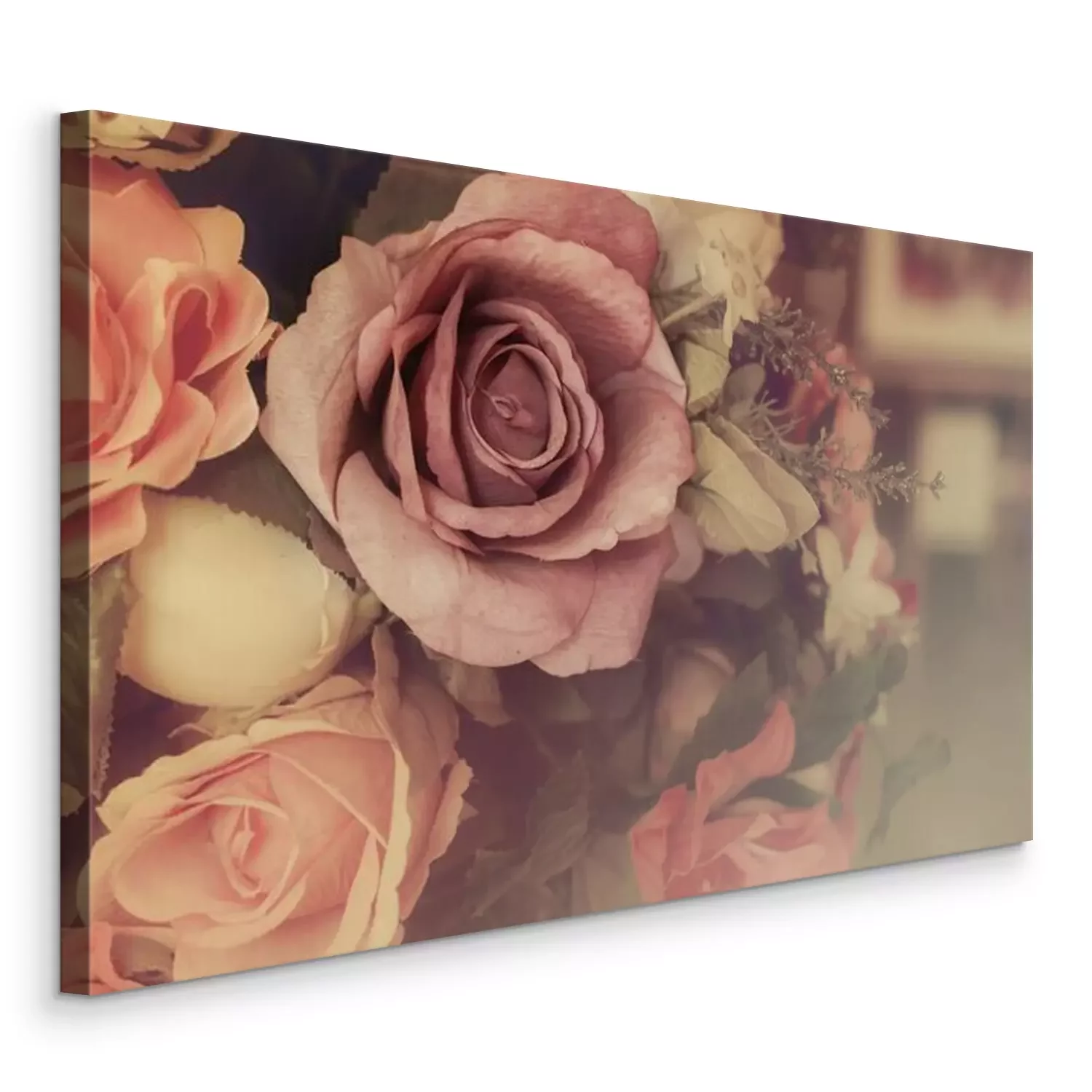 Tableau : Colorful pink roses in soft color and blur style for background, beautiful artificial flowers