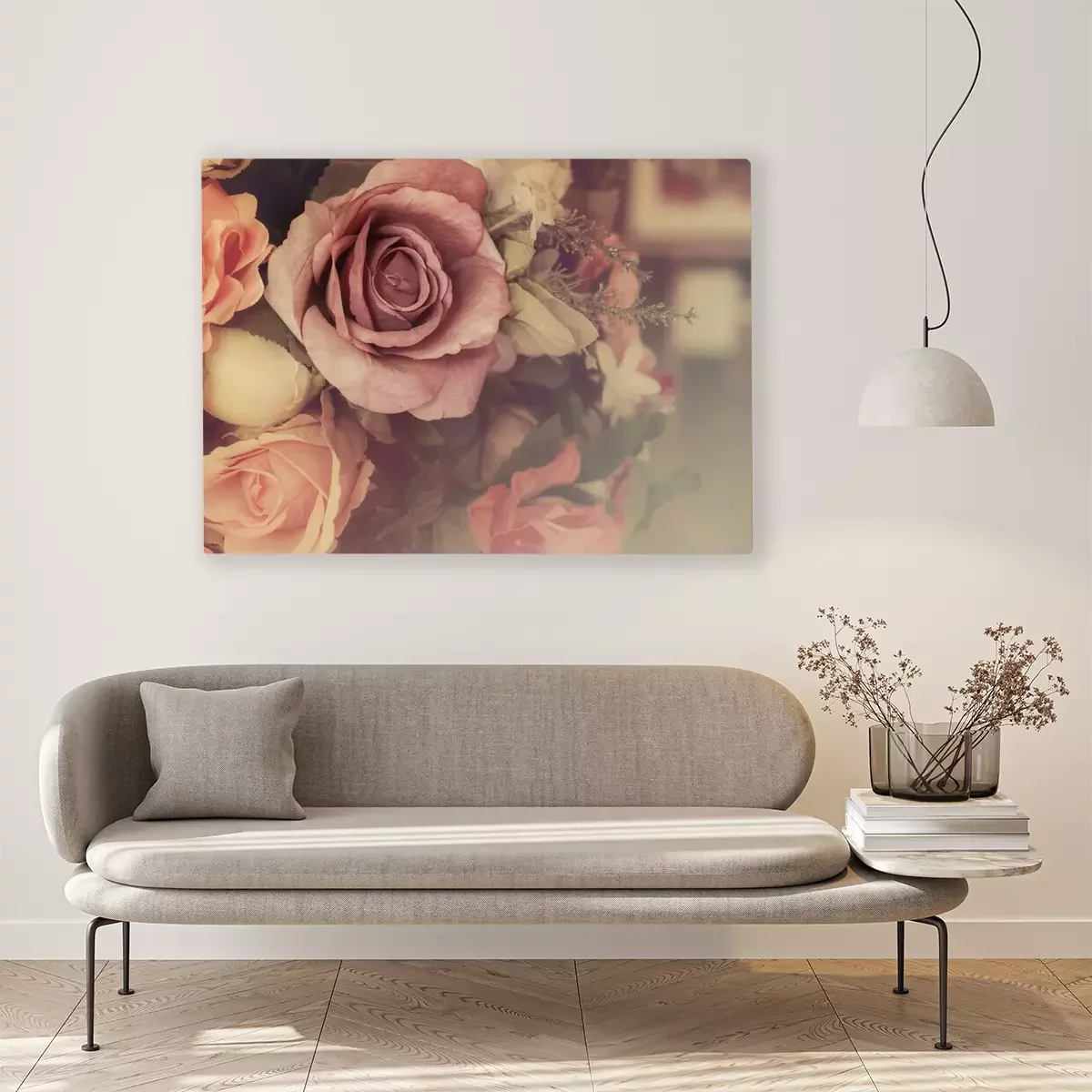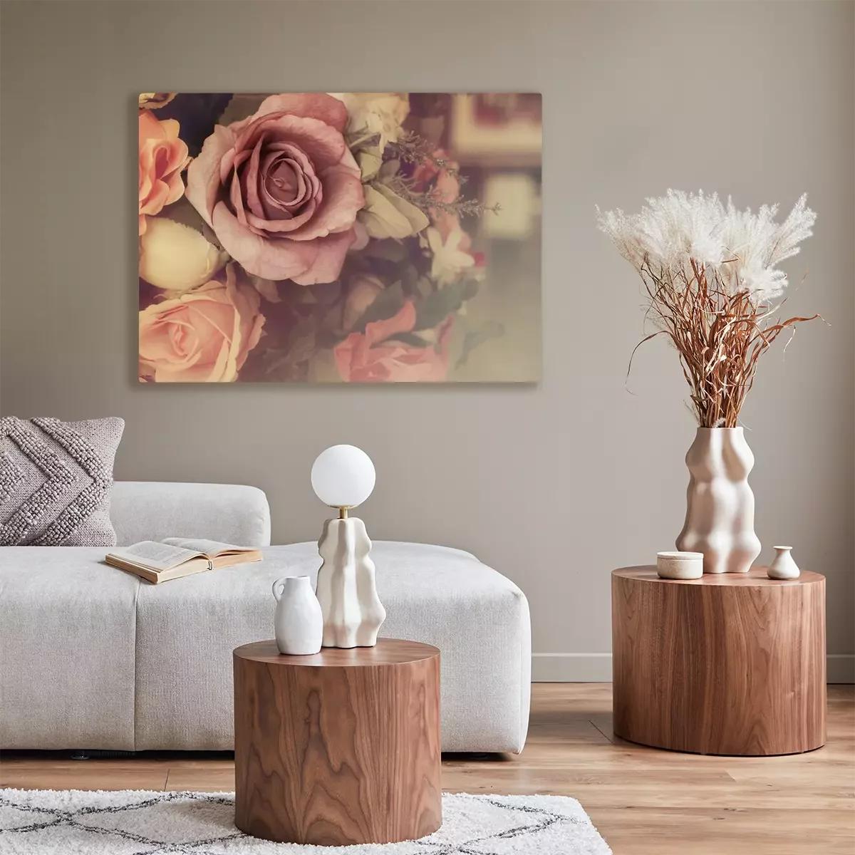 Tableau  Colorful pink roses in soft color and blur style for background, beautiful artificial flowers