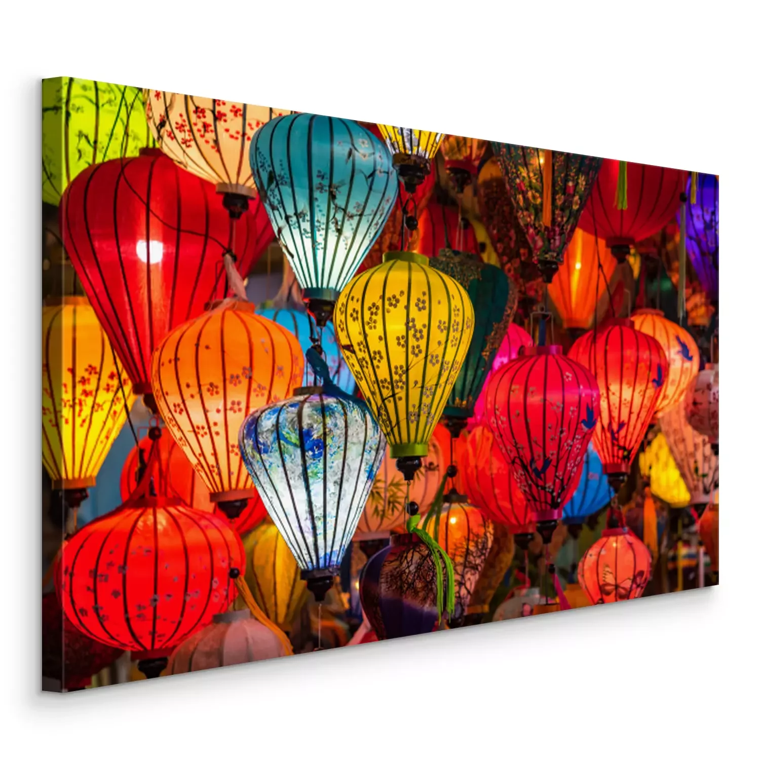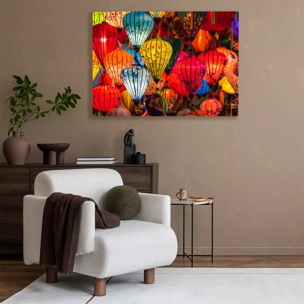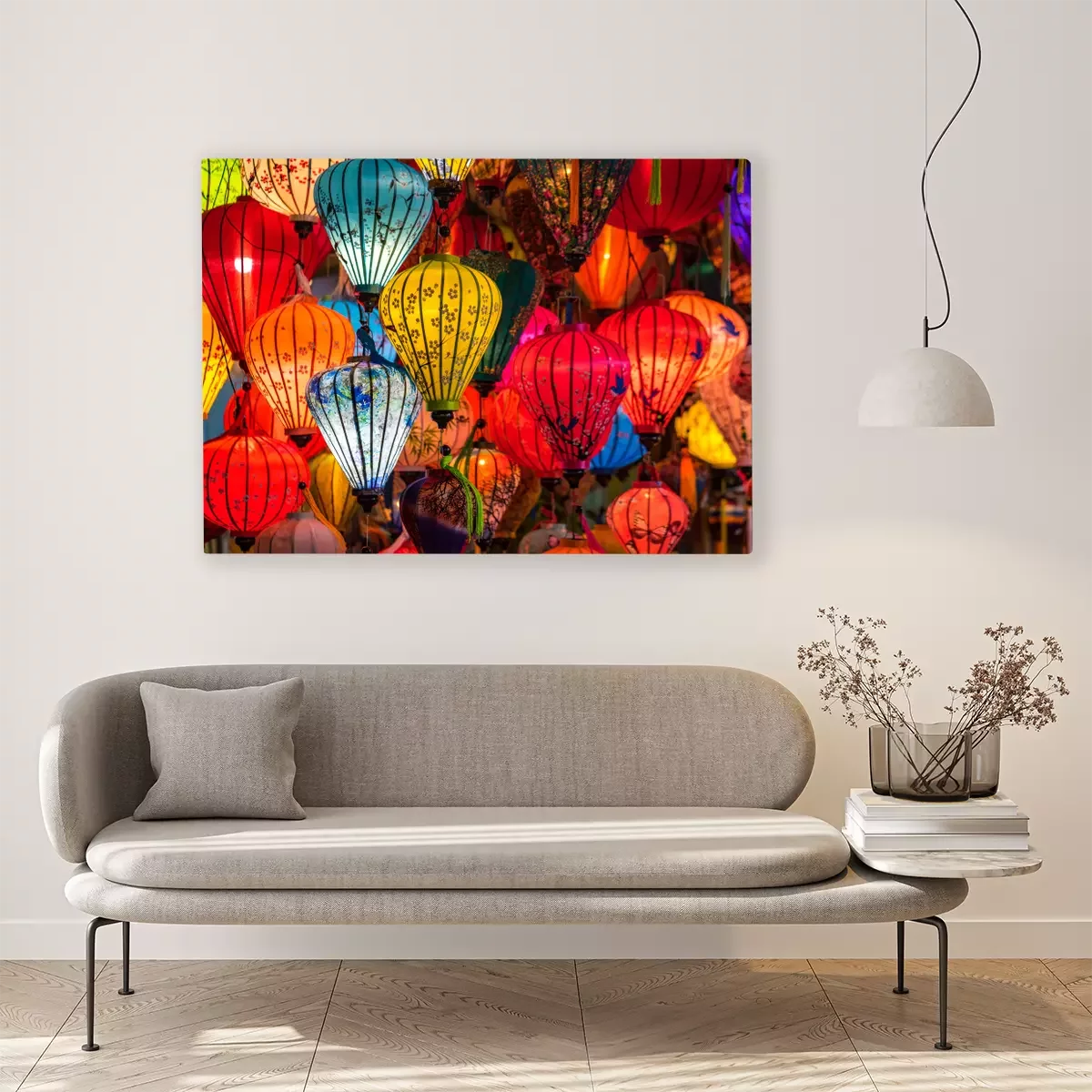 Tableau  Colorful traditional Chinese lantern or light lamp to decorate street at night, there are famous things of Hoi An - the heritage ancient city of Vietnam.
