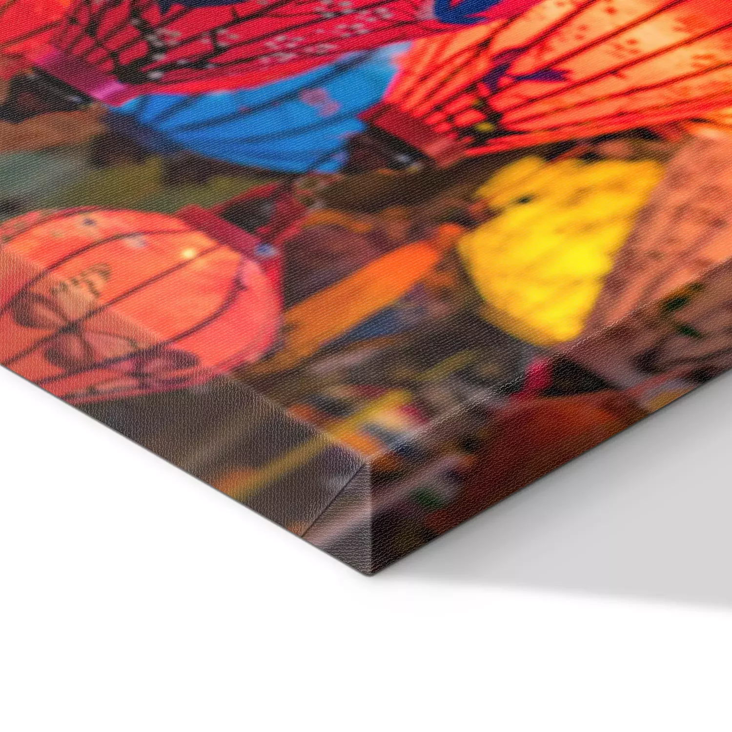Tableau : Colorful traditional Chinese lantern or light lamp to decorate street at night, there are famous things of Hoi An - the heritage ancient city of Vietnam.