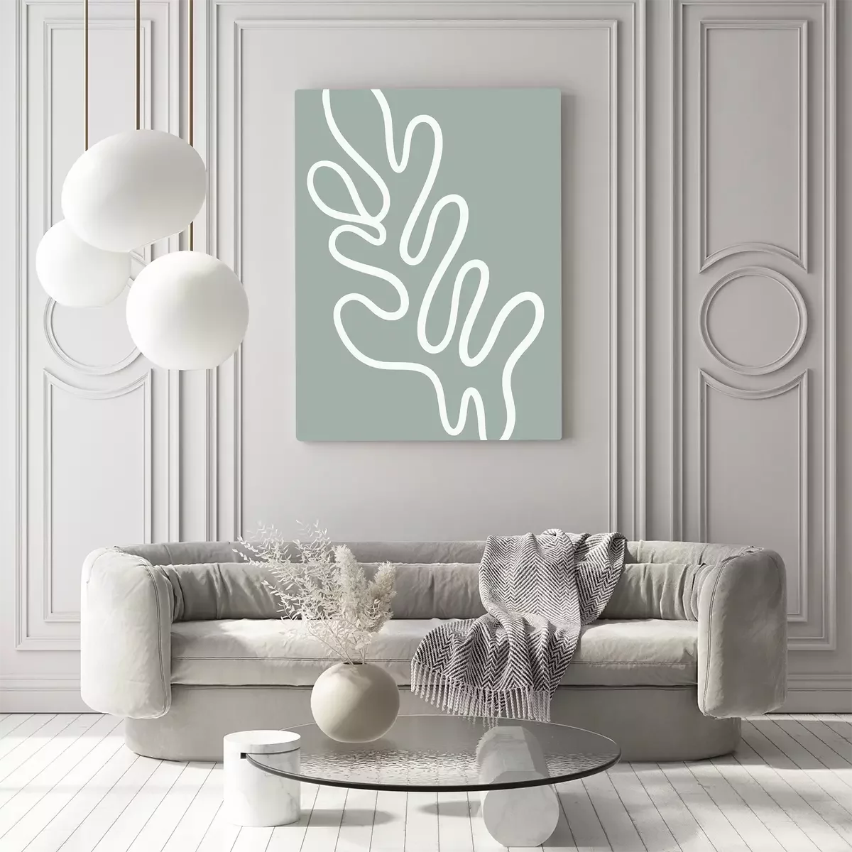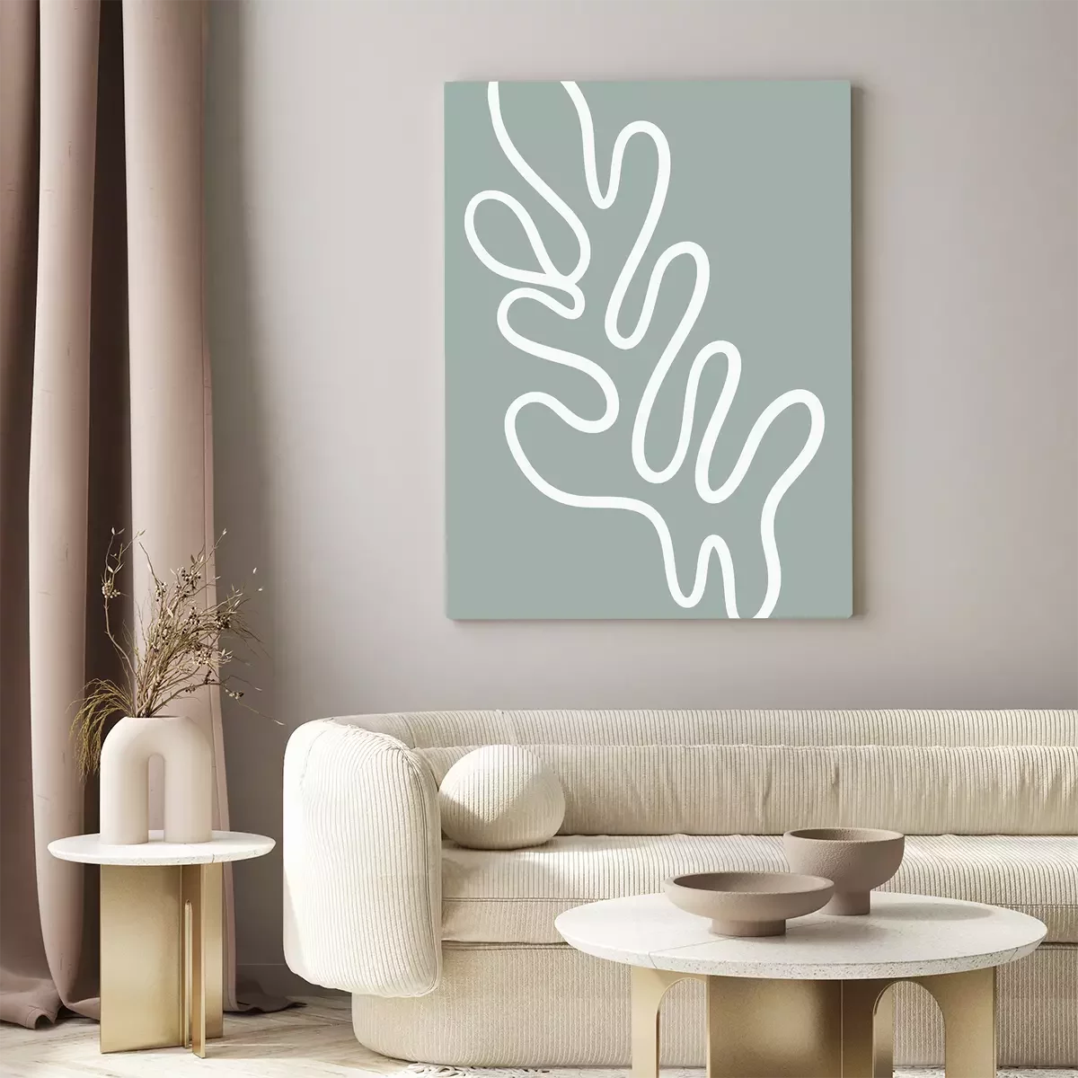 Tableau : Composition abstraite avec forme ondulée sur fond menthe