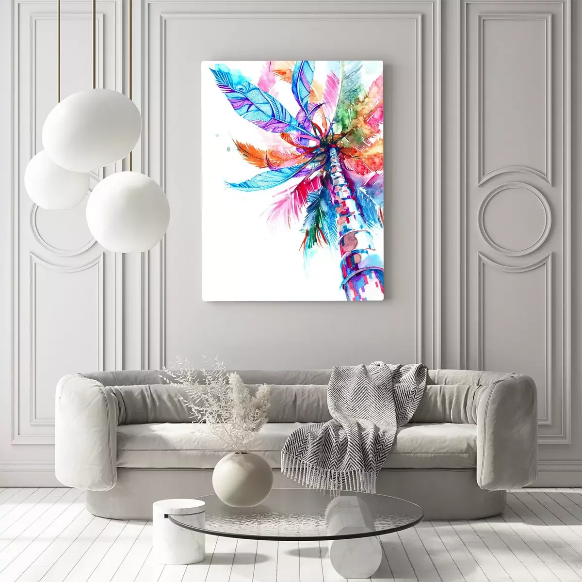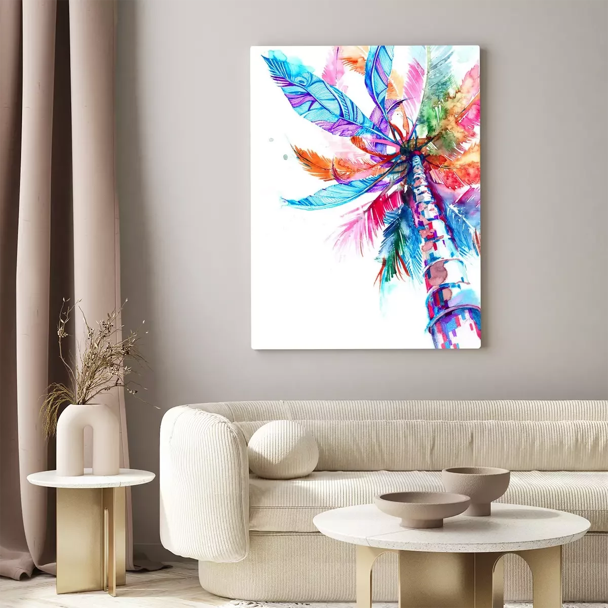 Tableau : Composition abstraite palmier en couleurs sur un fond blanc