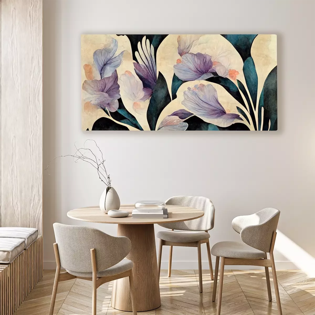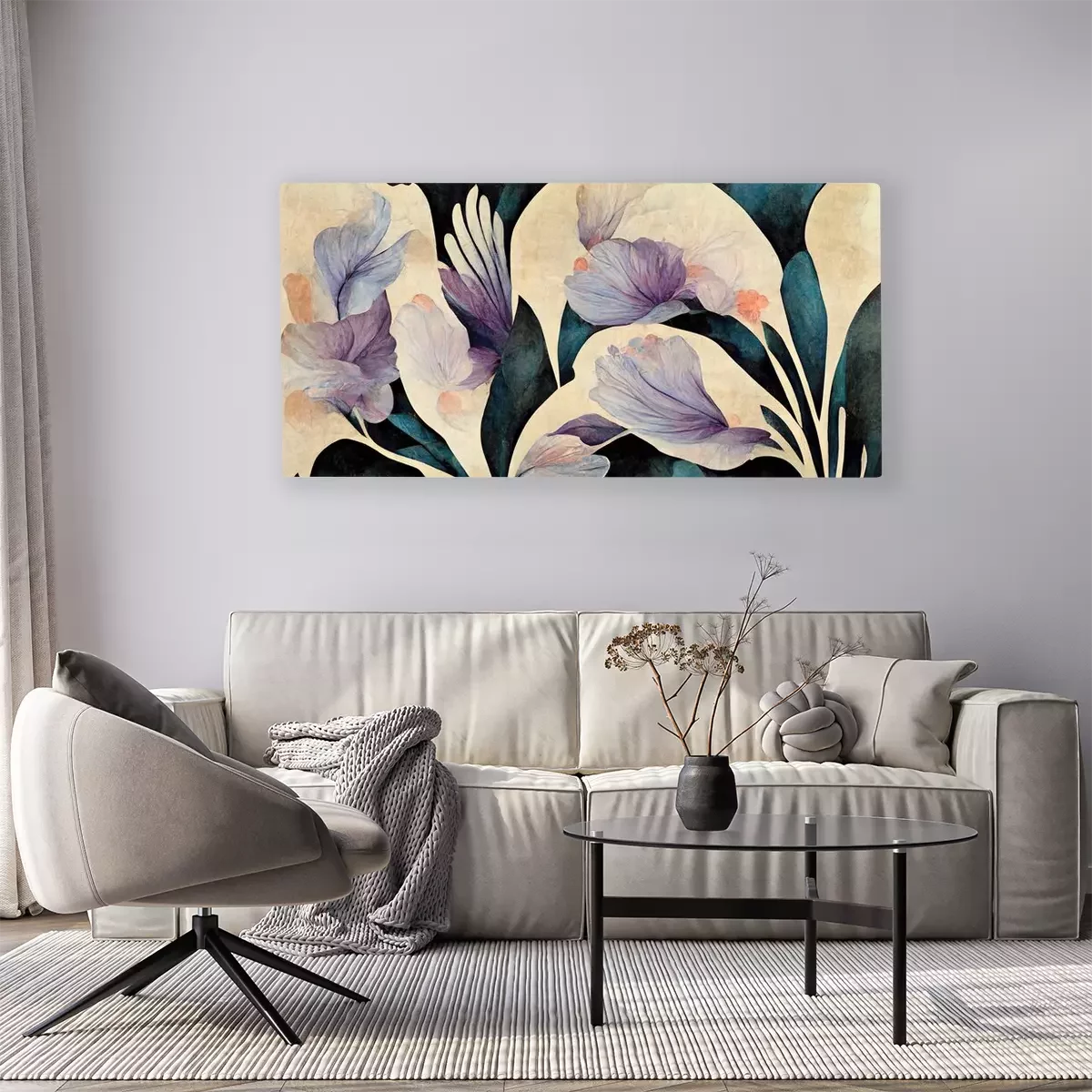 Tableau : Composition avec des fleurs violettes