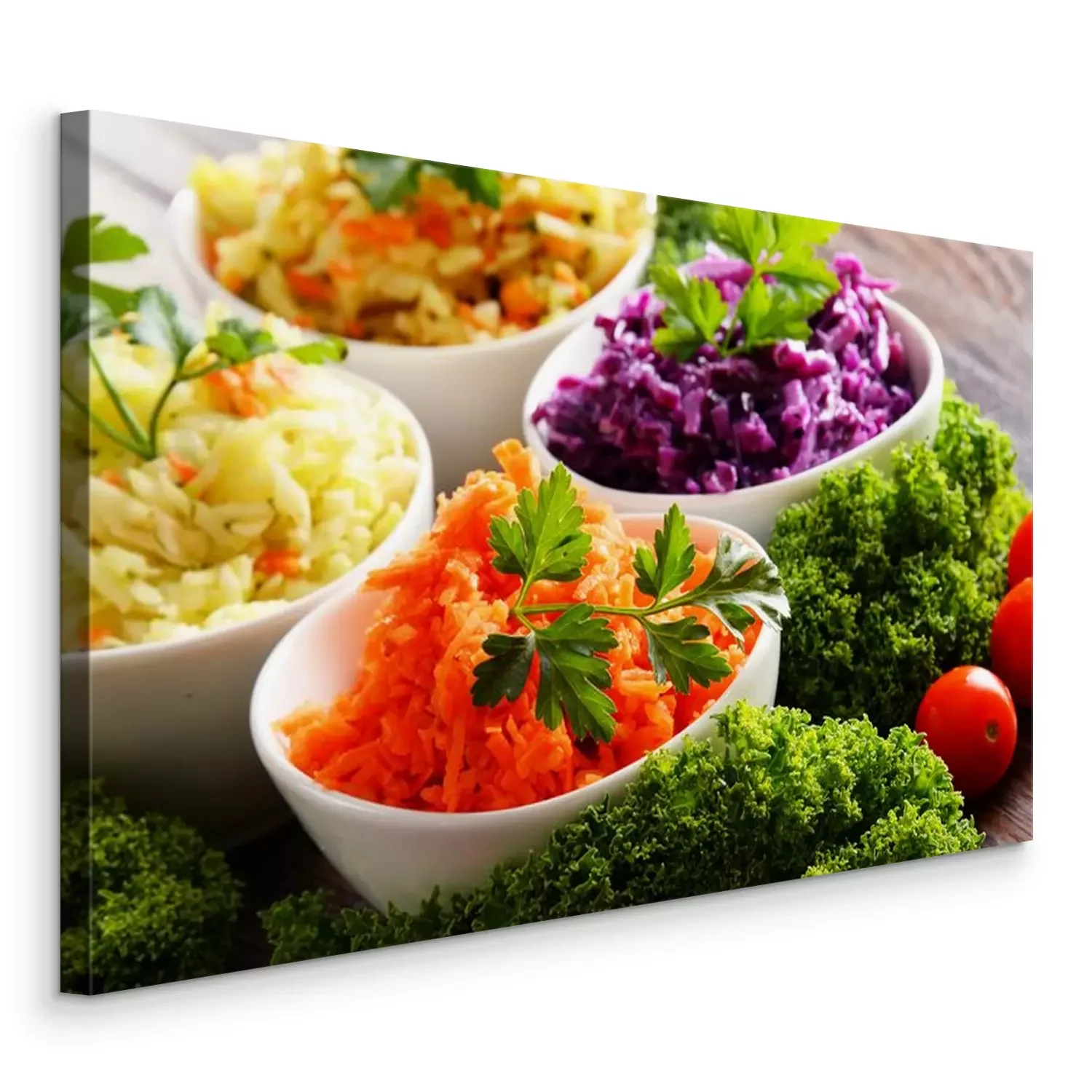 Tableau  Composition, quatre, légume, salade, bols, bois, table