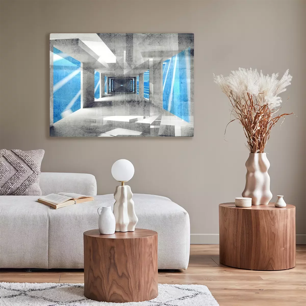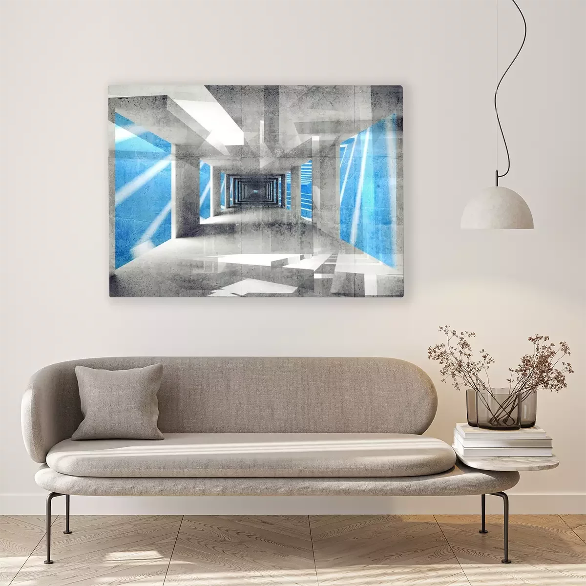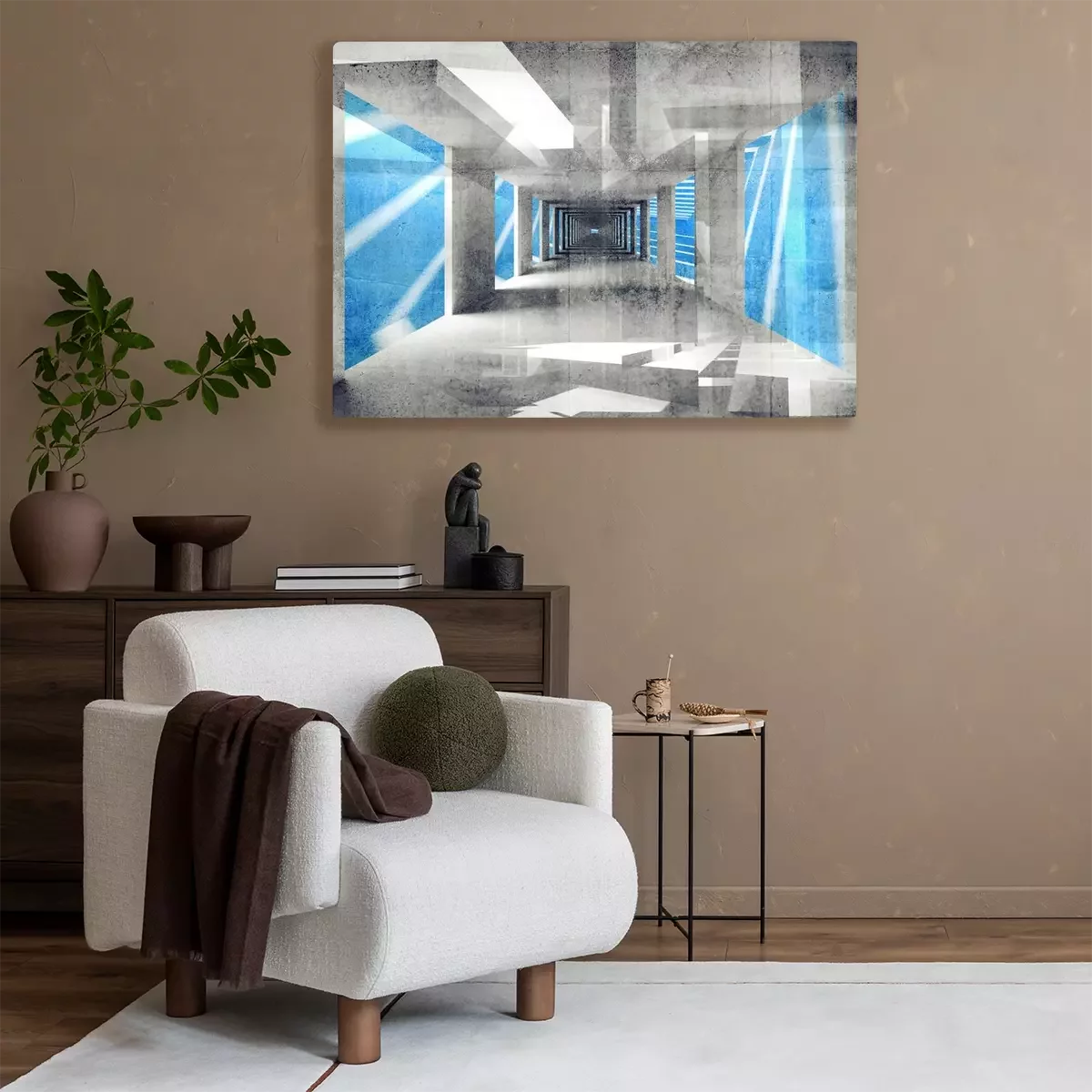 Résumé perspective intérieure 3d béton avec des rayures de lumière