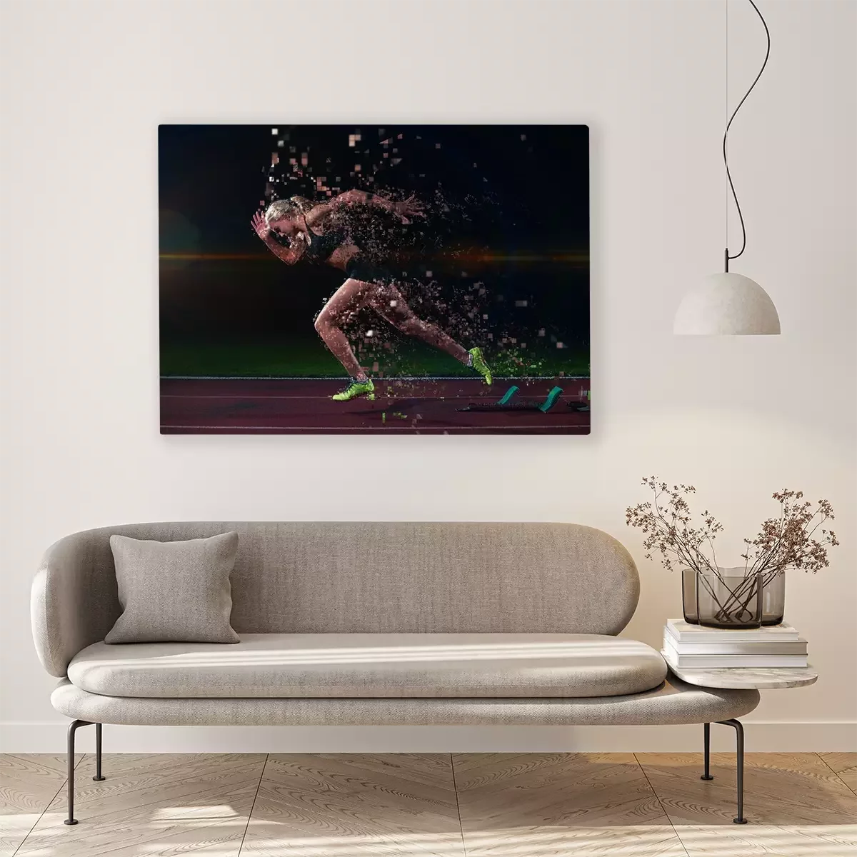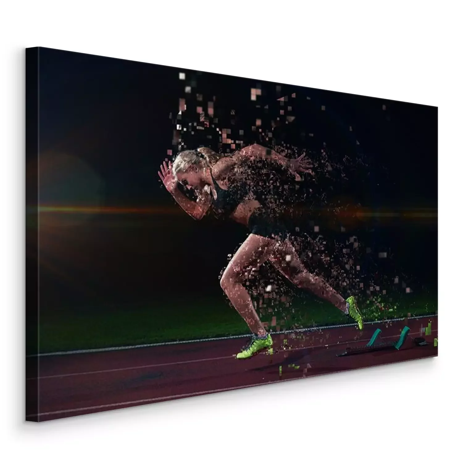 Tableau  conception pixélisé de la femme sprinter laissant starting-blocks
