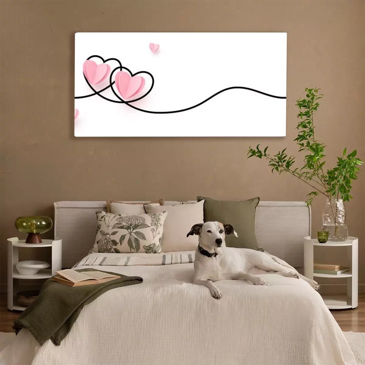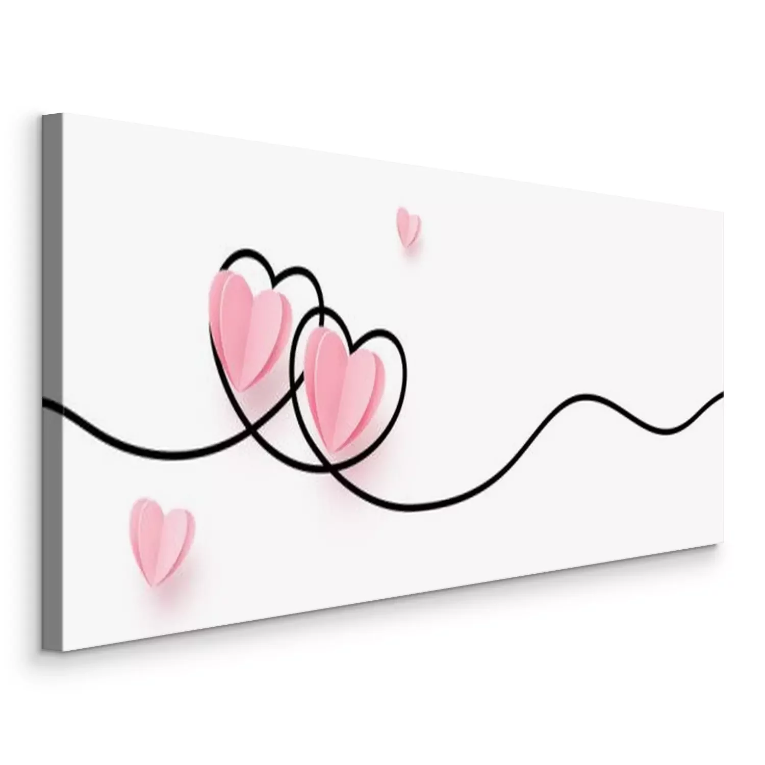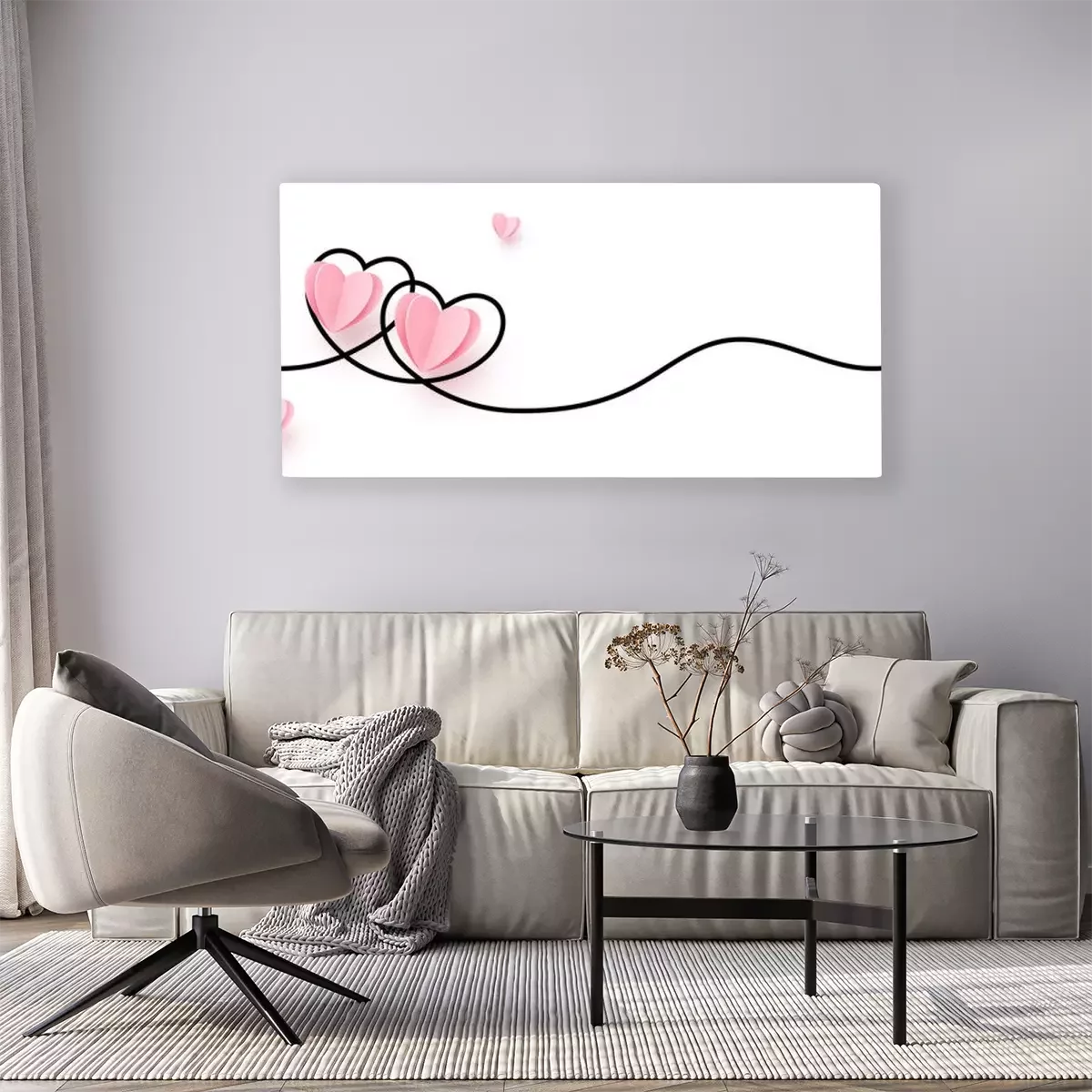 Tableau  Continuous line heart shape border with realistic paper heart on white background for valentines, women, mother day greeting invitation graphic design