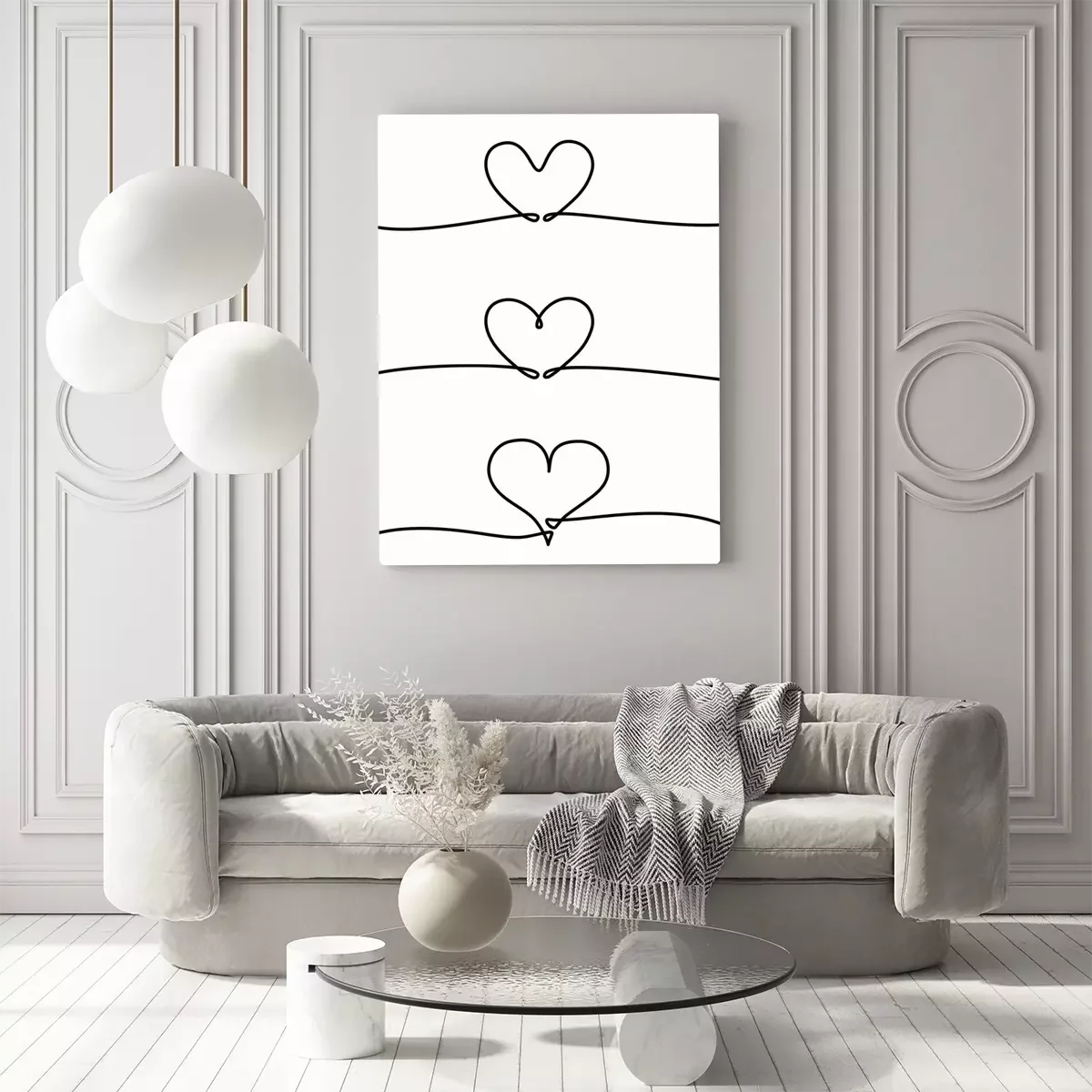 Tableau  Continuous one line drawing of heart isolated on white background. vector illustration for banner, poster, web, template, valentine's card, wedding. Black thin line image of heart icon. - Vector