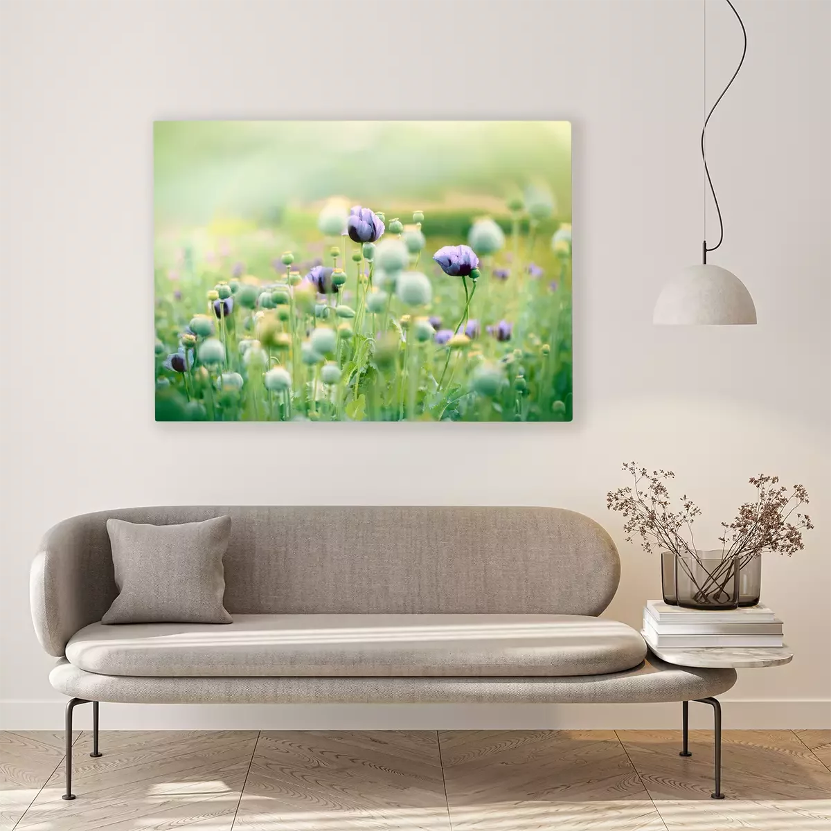 Tableau  Coquelicots couleur lilas dans un champ