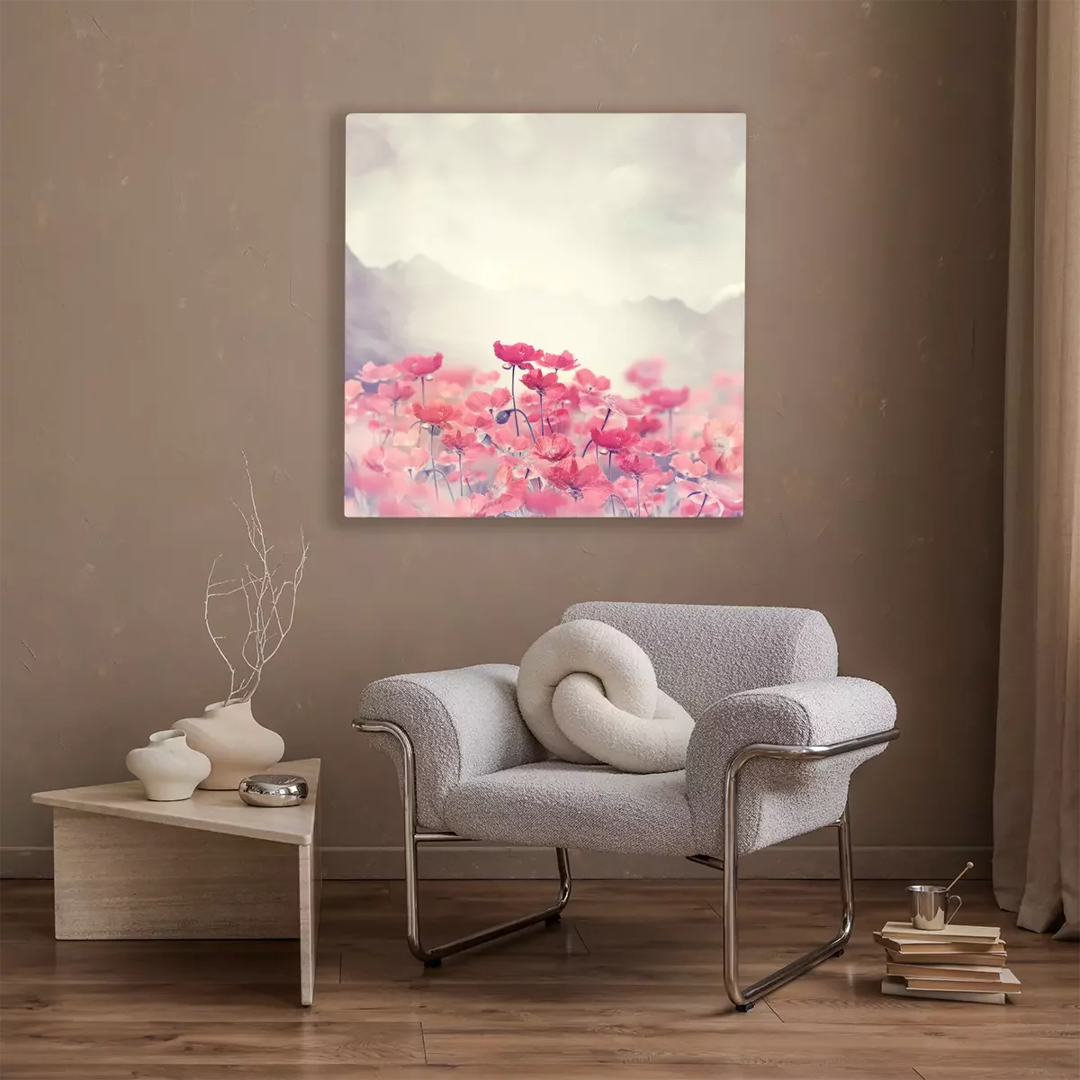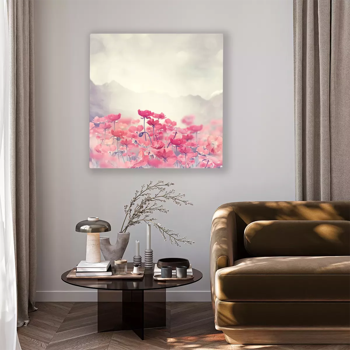 Tableau  Coquelicots des champs sur fond de montagnes