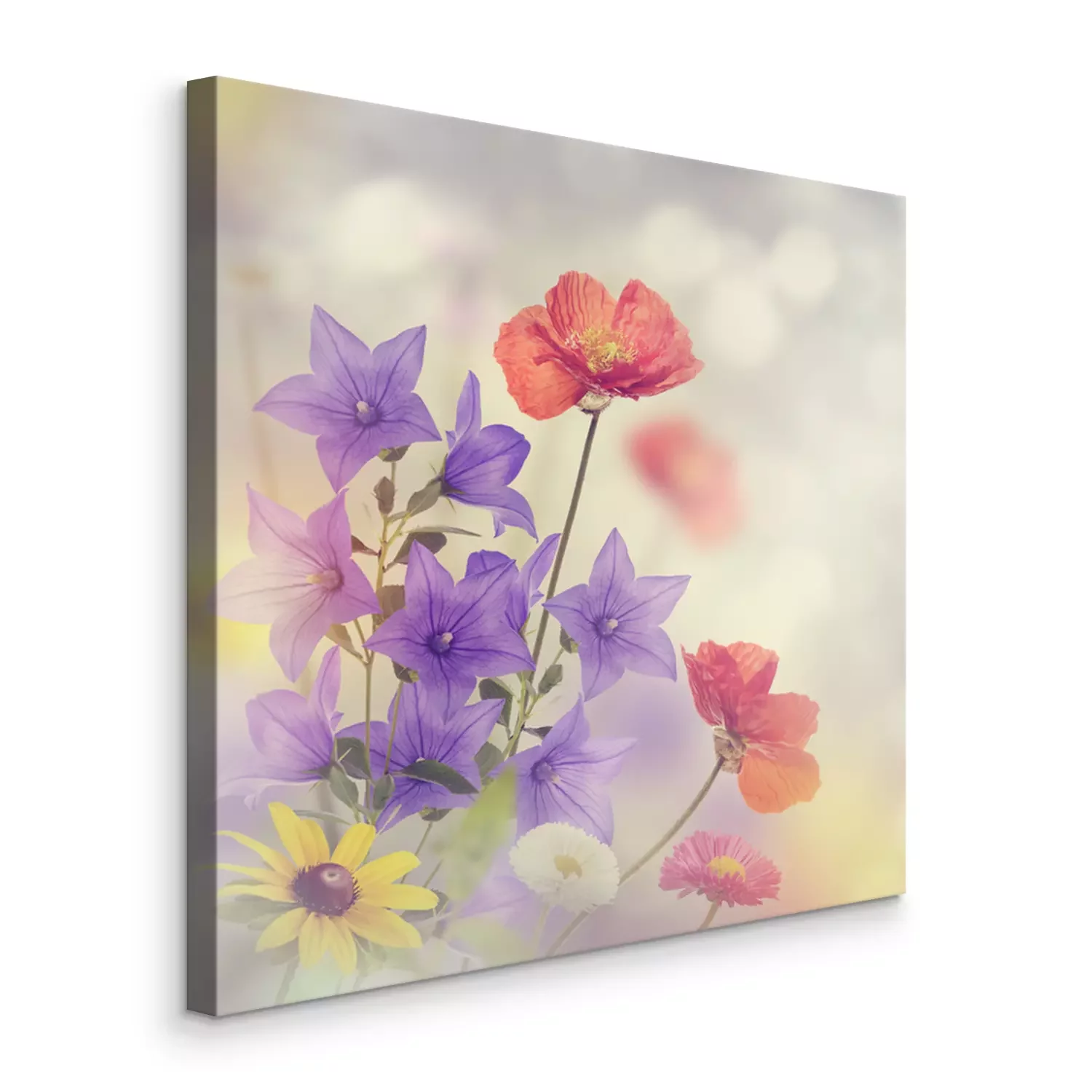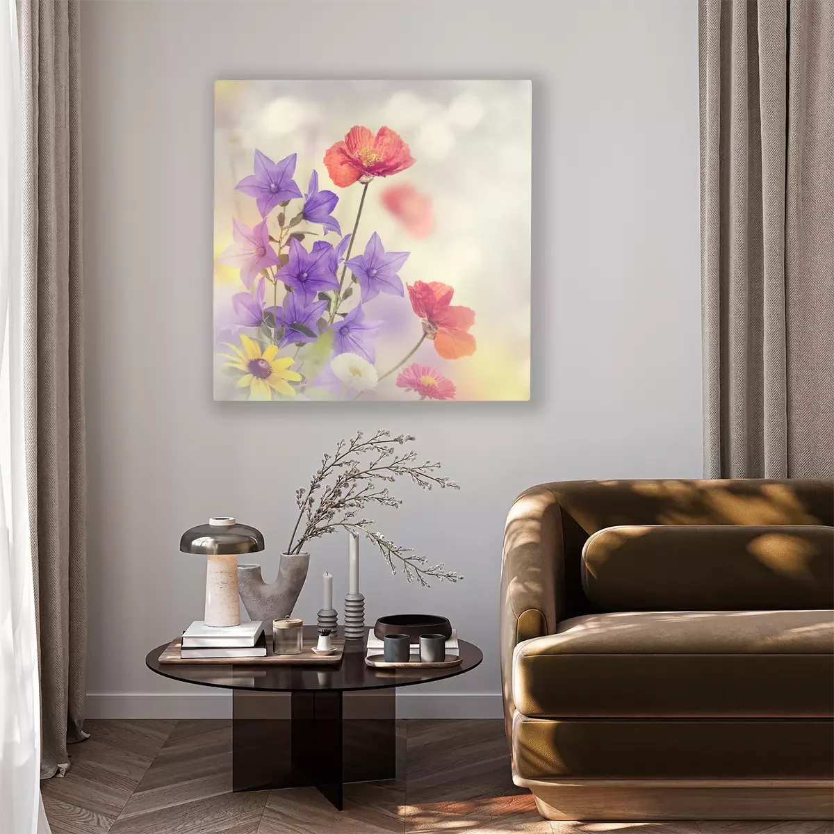 Tableau  Coquelicots et fleurs violettes dans le pré