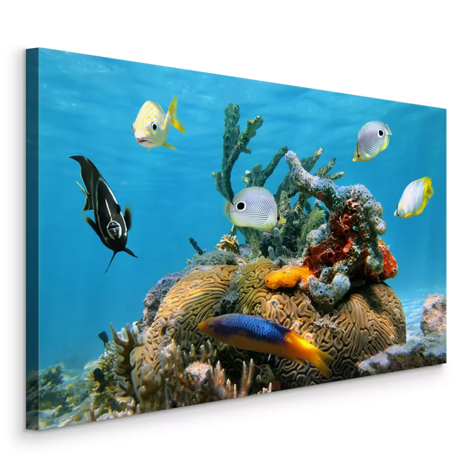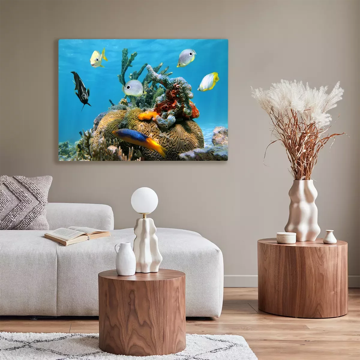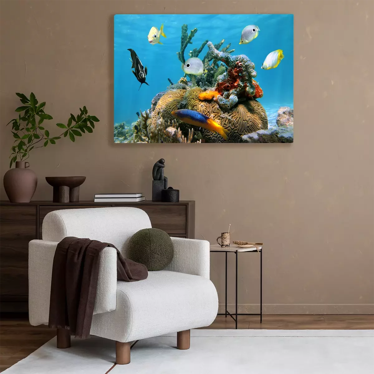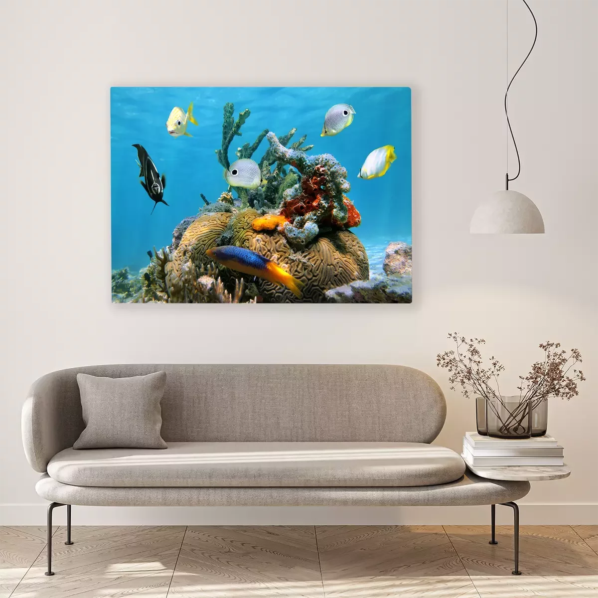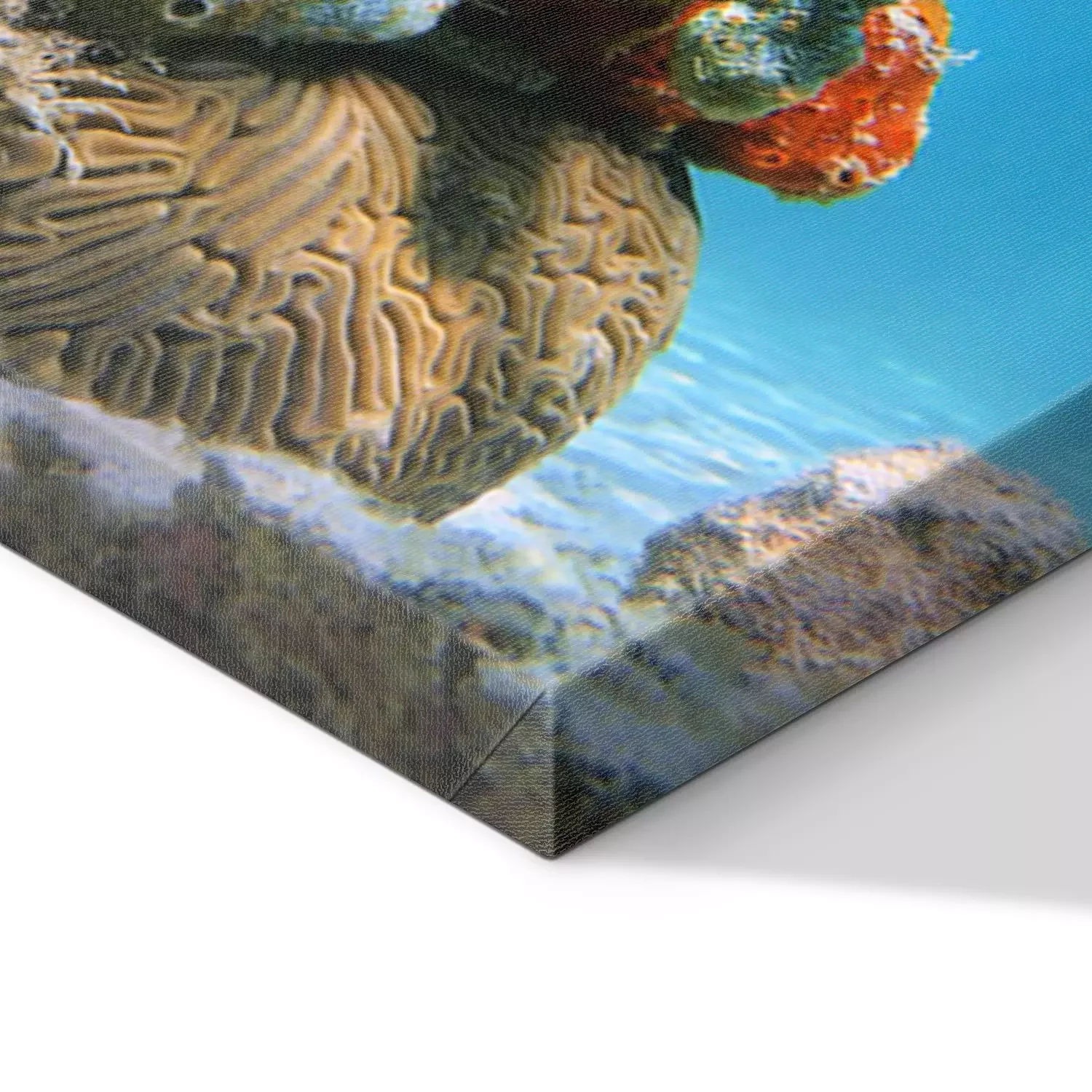 Tableau  Corail de cerveau avec des éponges de mer et les poissons colorés