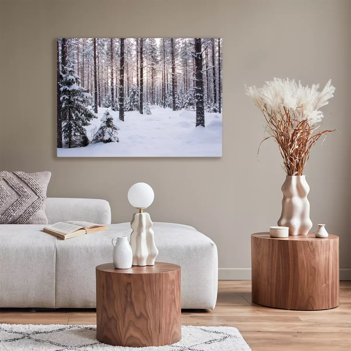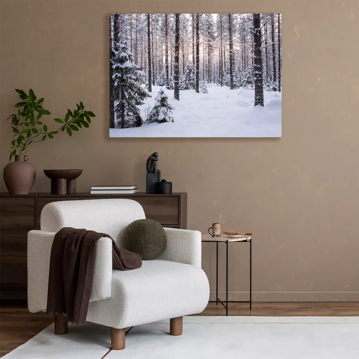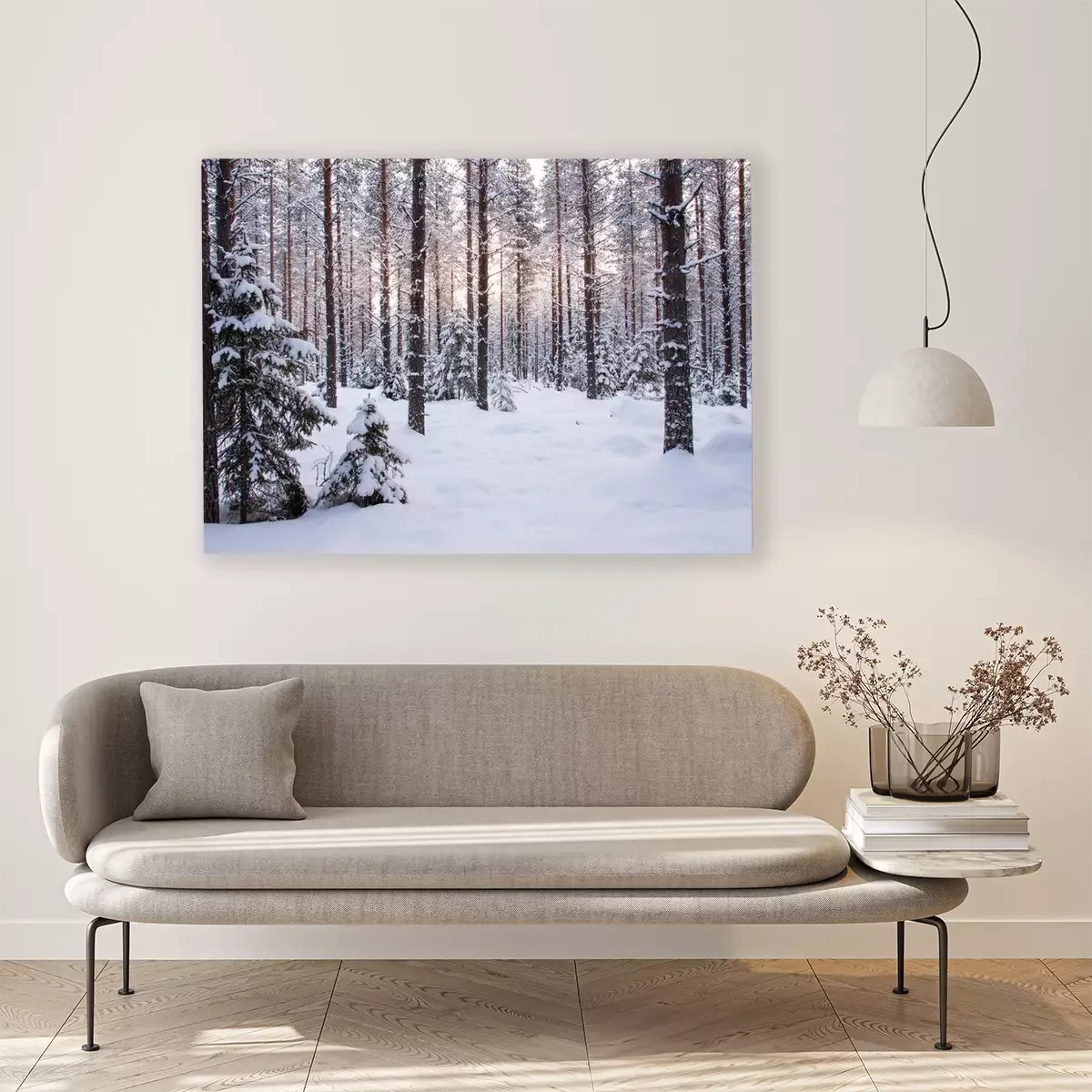 Tableau  Coucher de soleil dans la forêt d'hiver