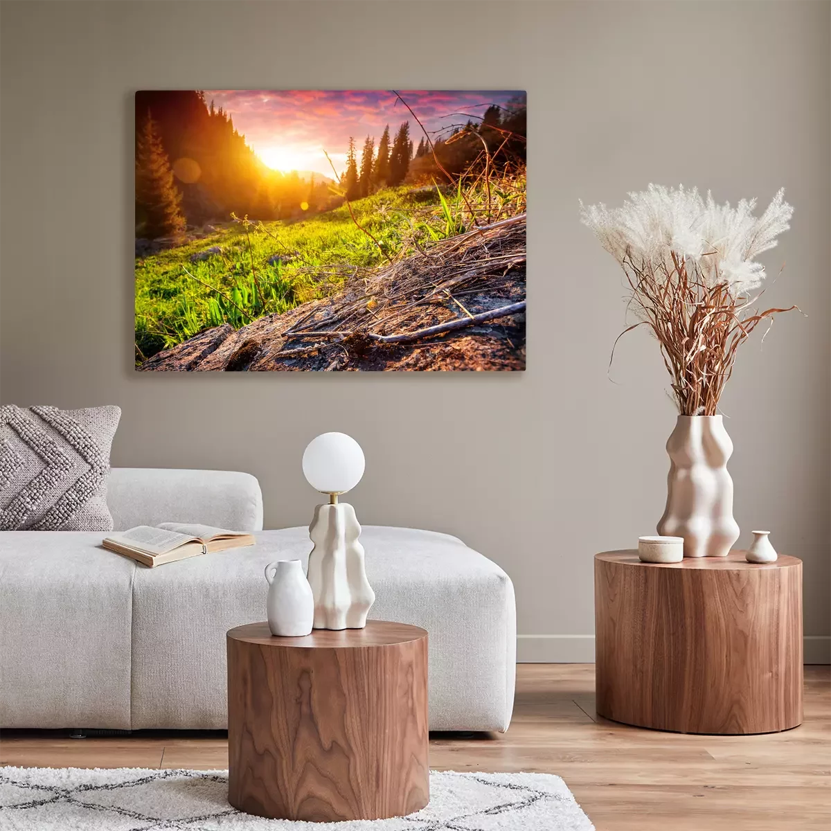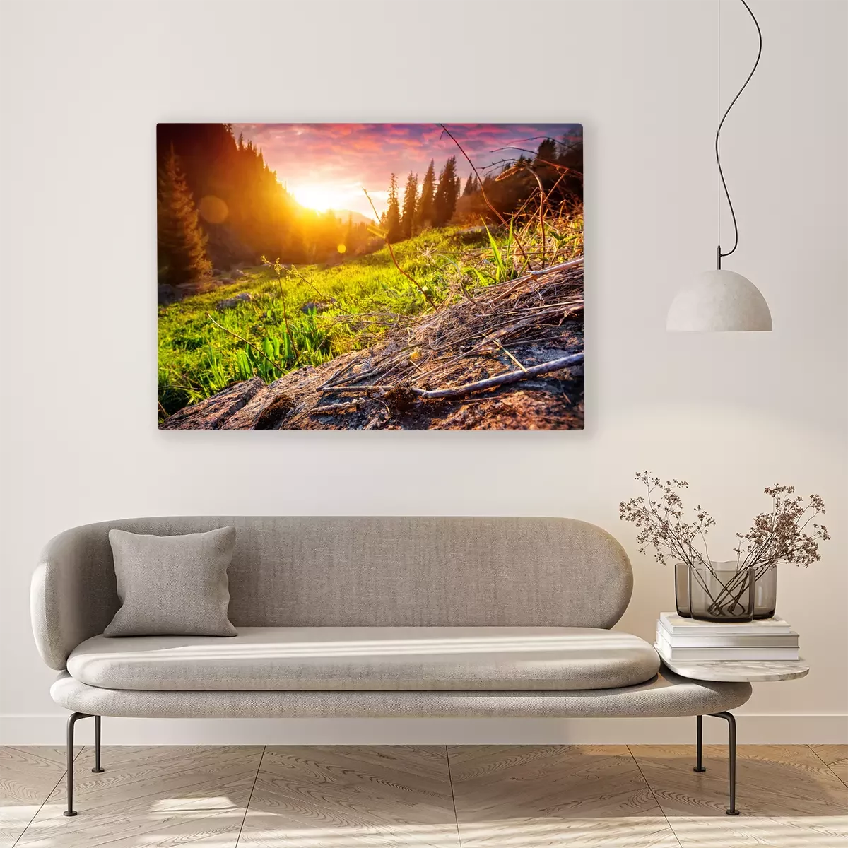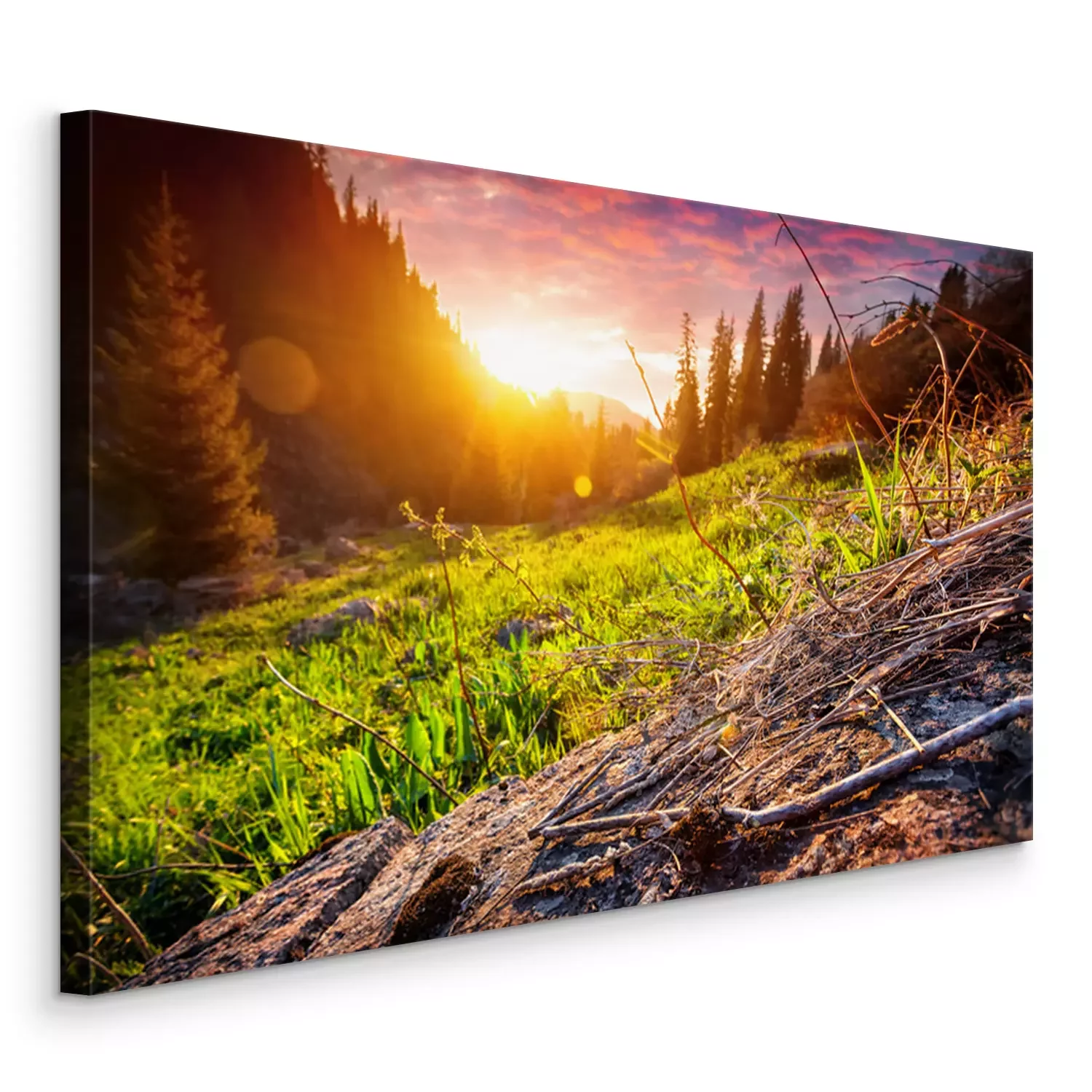 Tableau  Coucher de soleil dans la forêt de montagne
