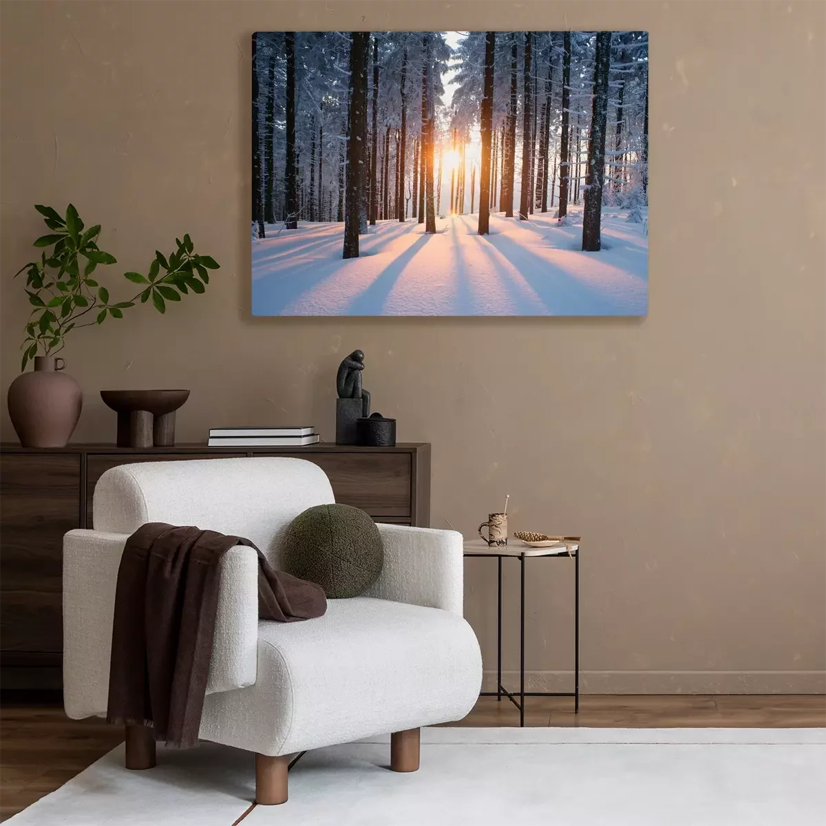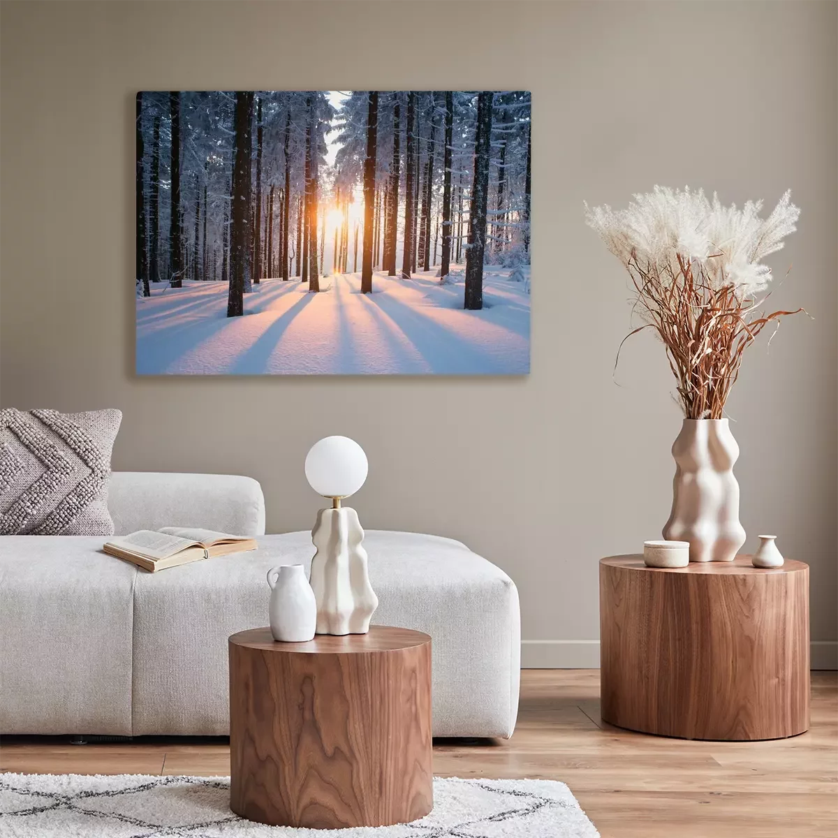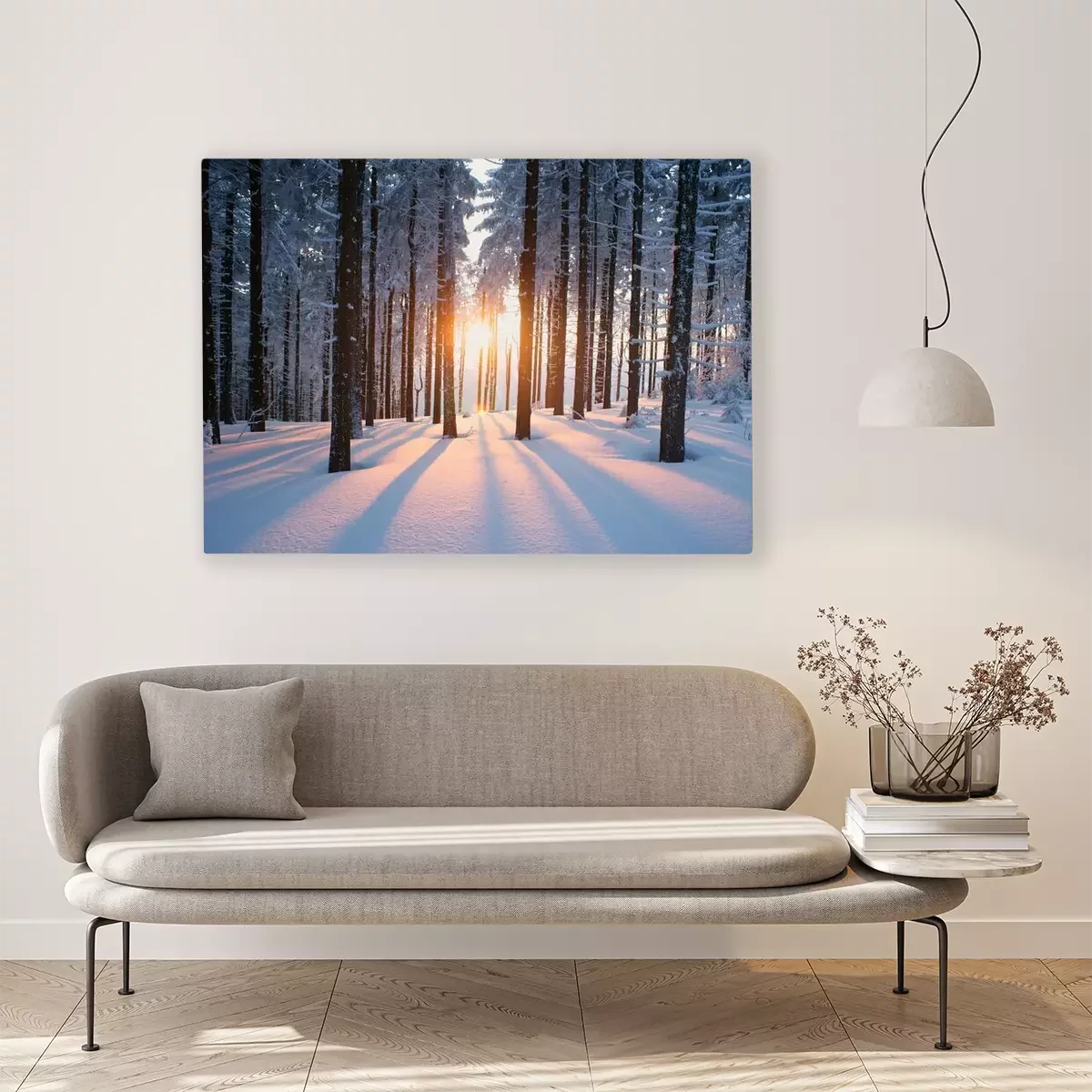 Tableau  Coucher de soleil dans le bois en période hivernale