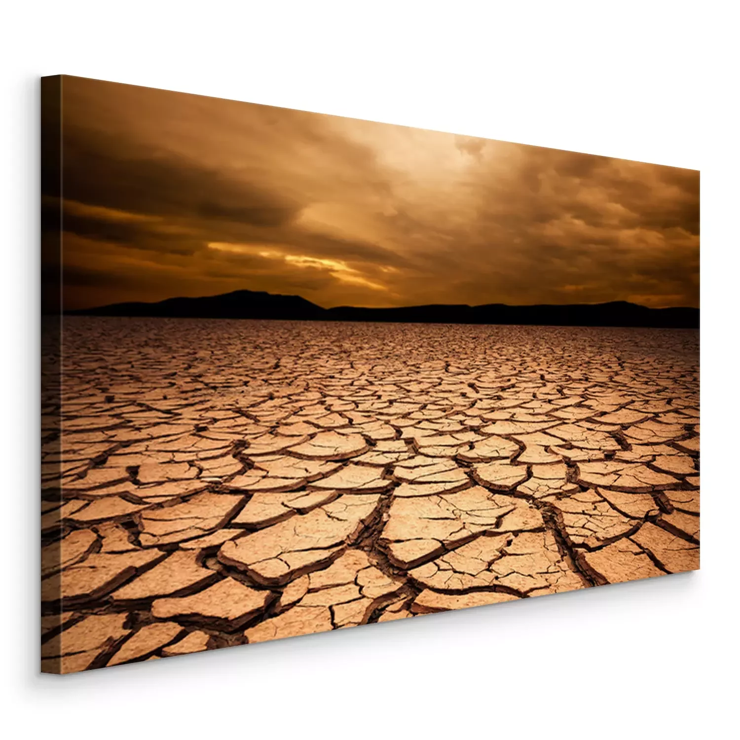 Tableau  Coucher de soleil dramatique sur la terre craquelée. Désert, paysage, fond