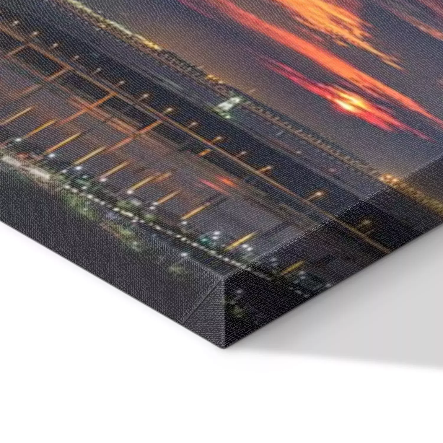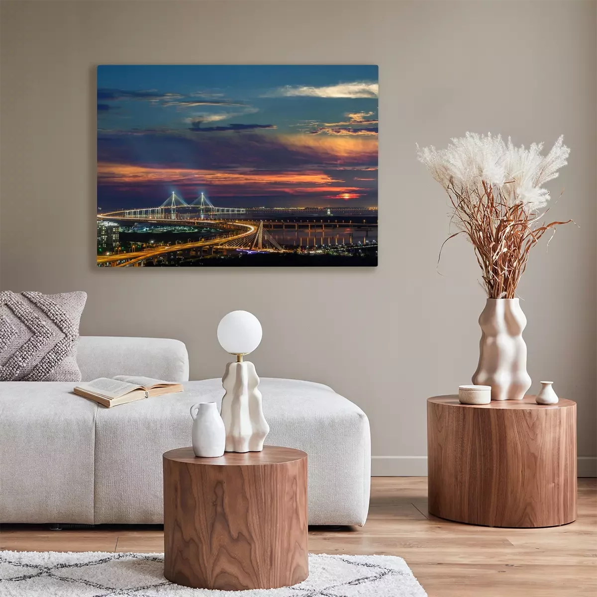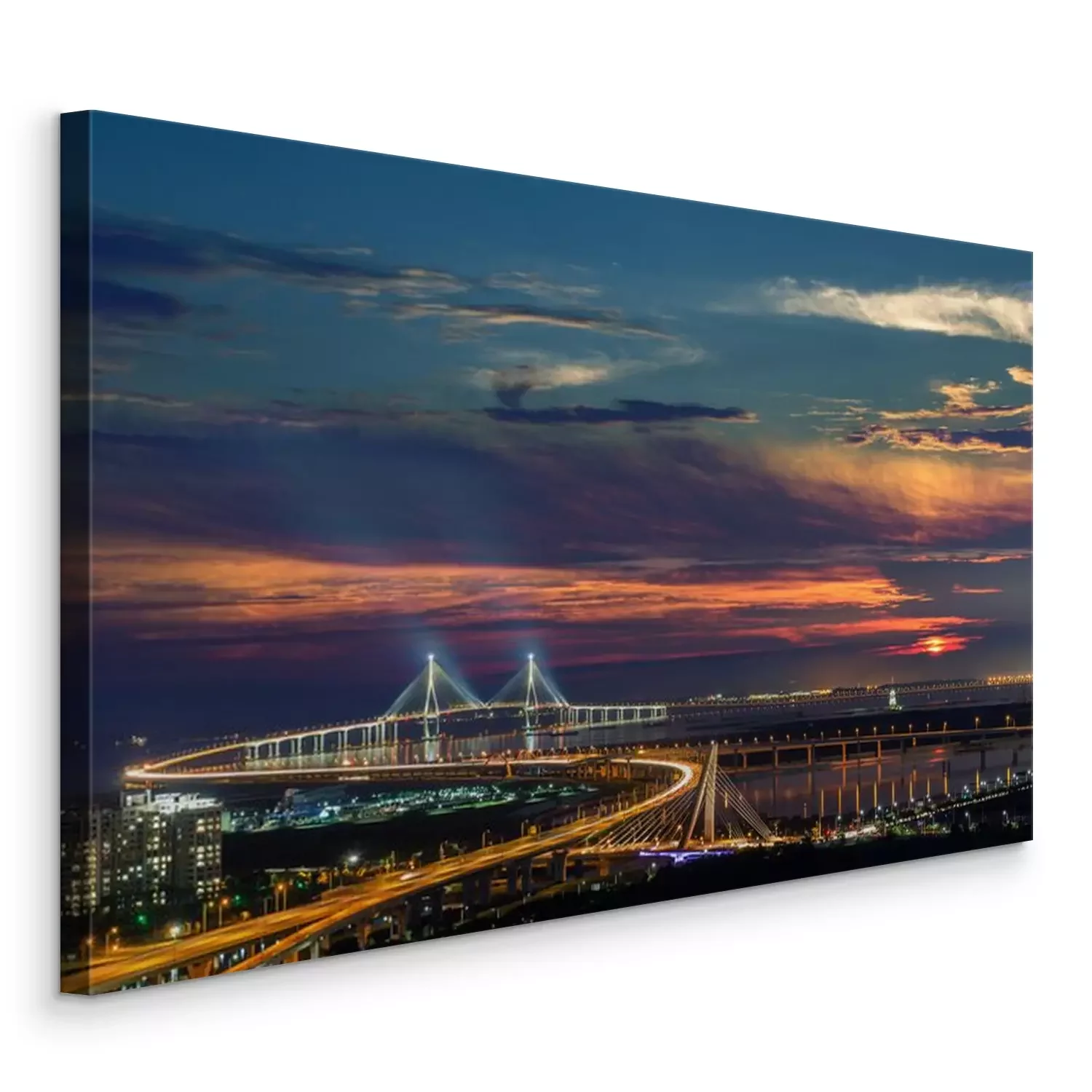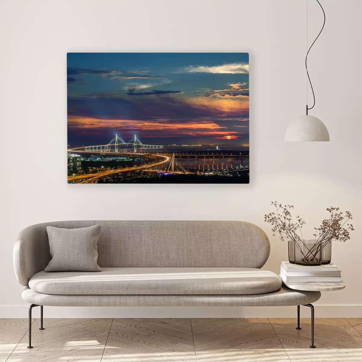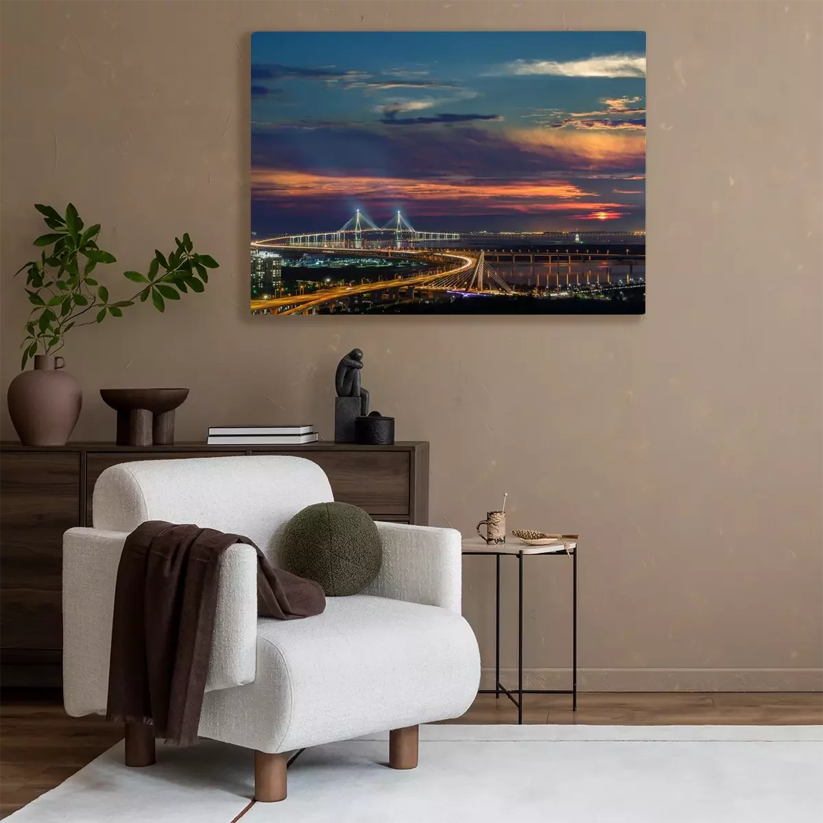 Tableau  Coucher de soleil, Incheon, pont, nuit, Seouth, Corée.