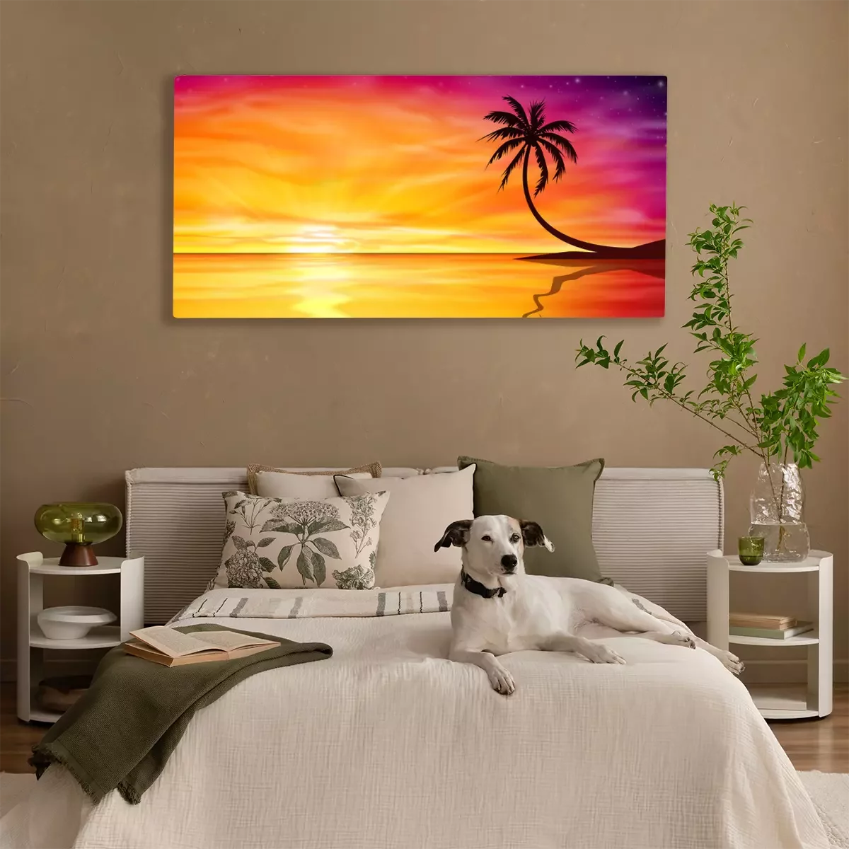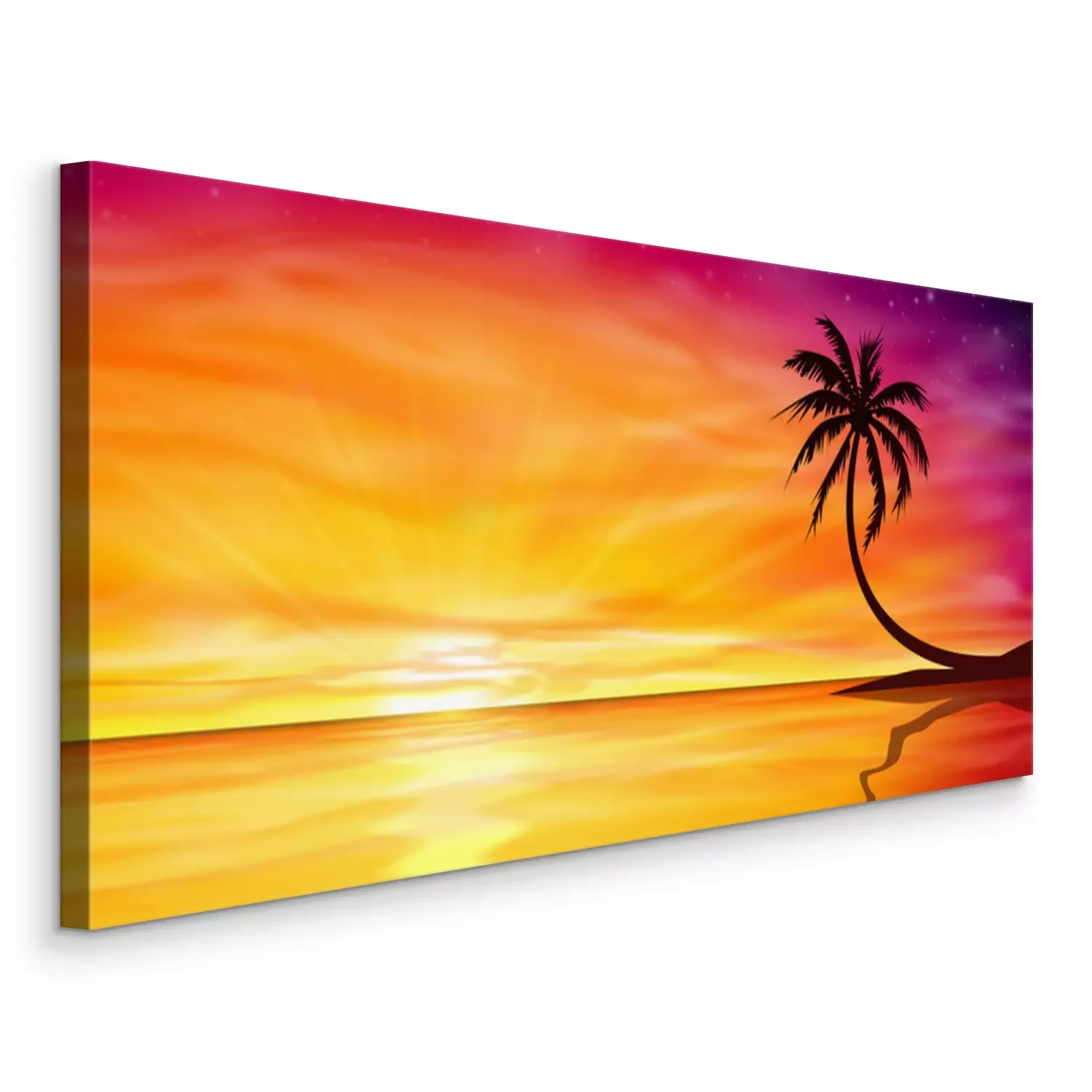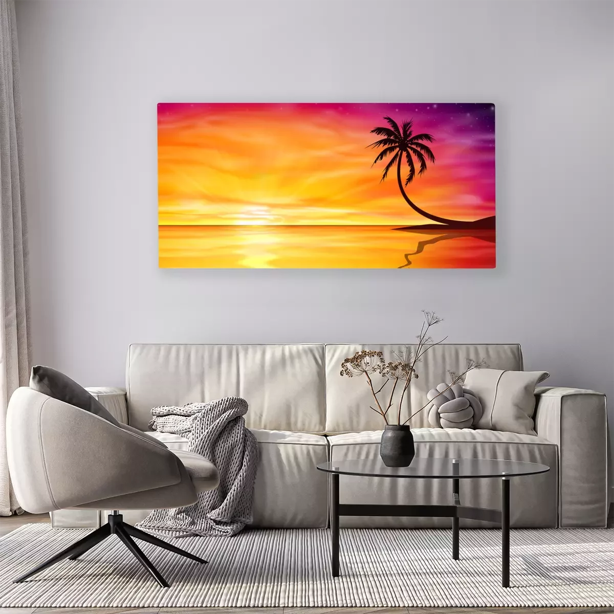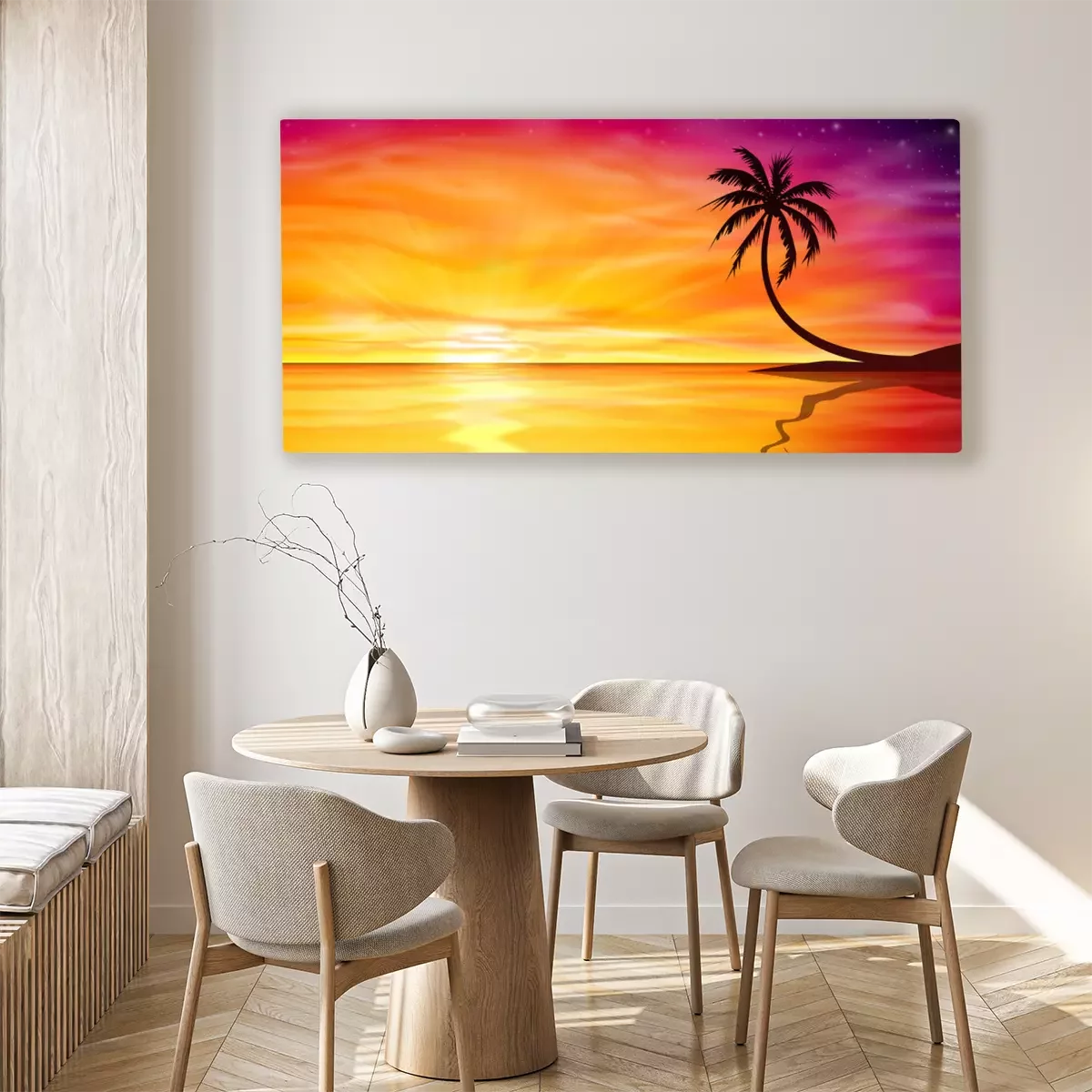 Tableau  Coucher de soleil, lever de soleil avec le palmier