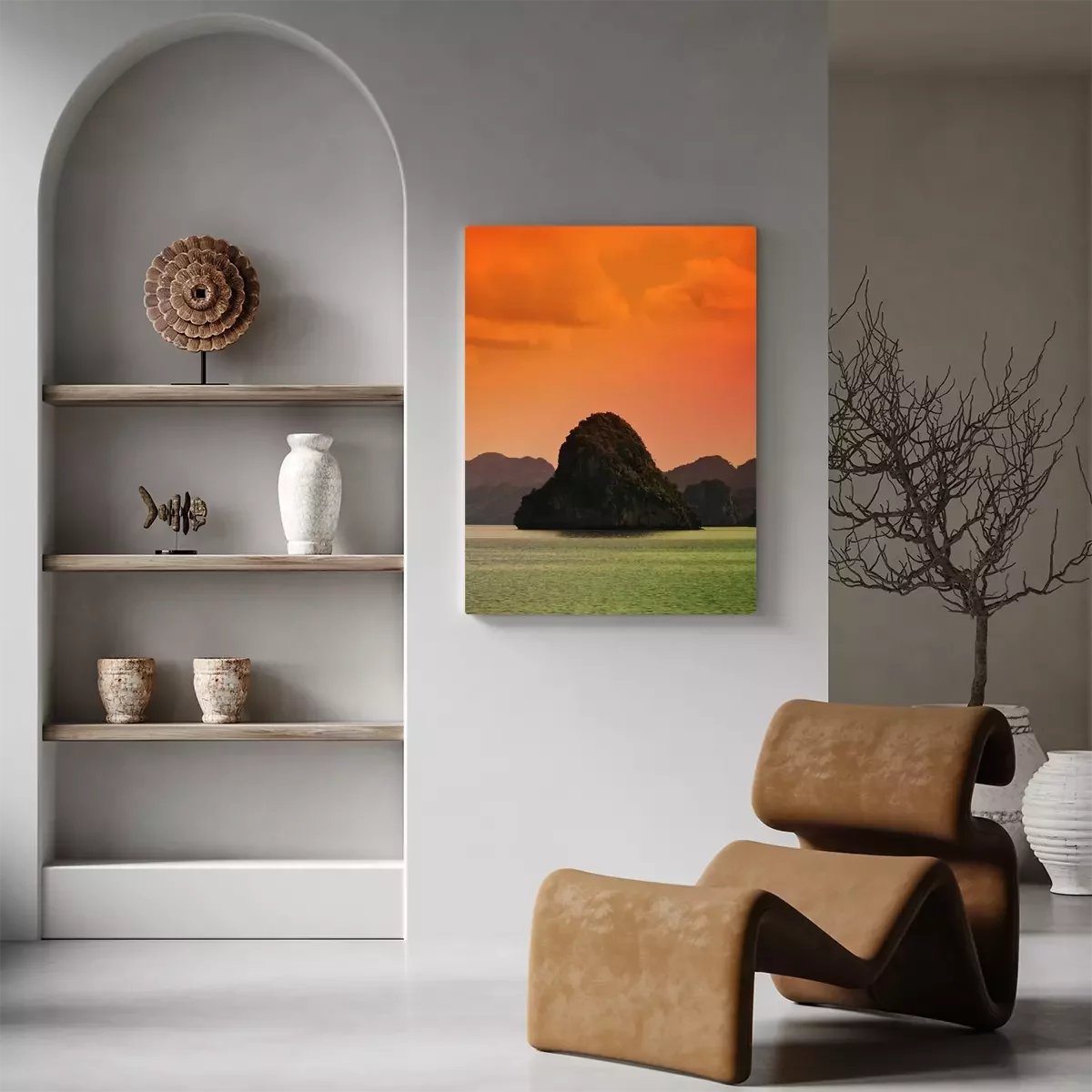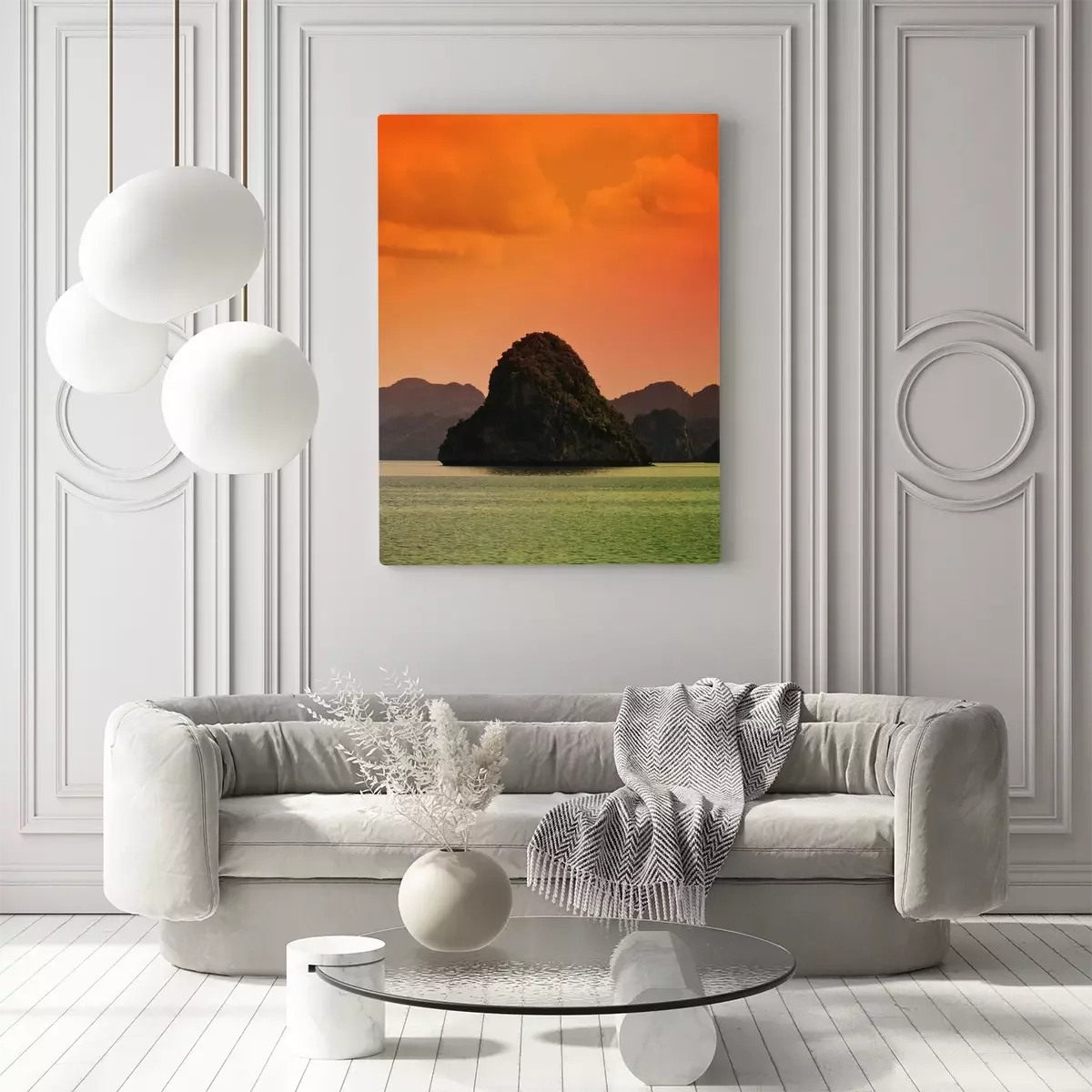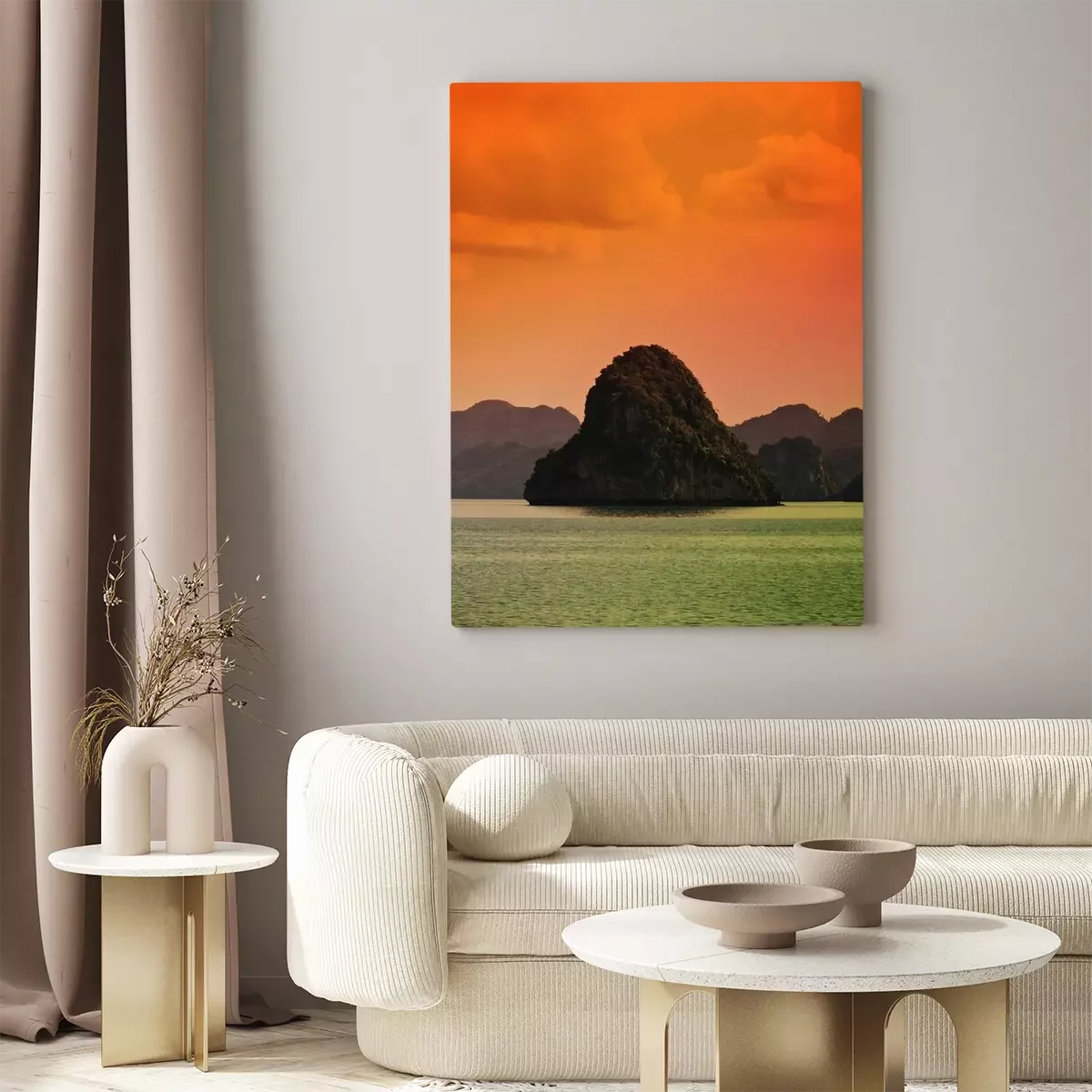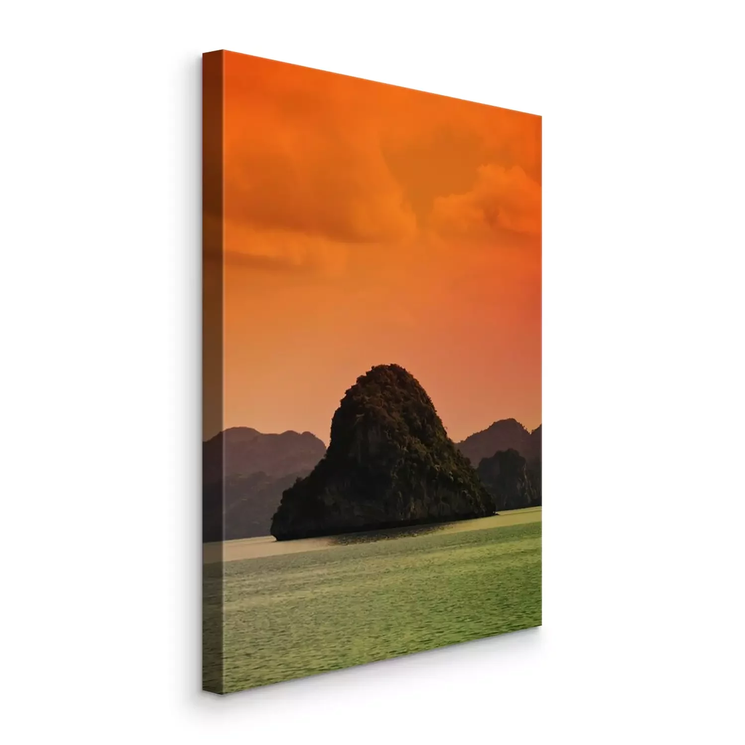 Tableau : Coucher de soleil sur la baie d'Halong, au Vietnam