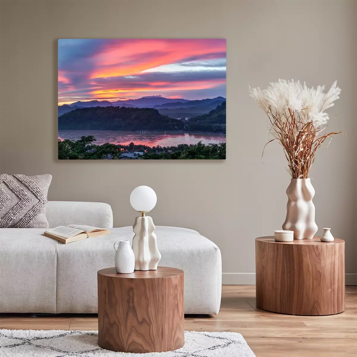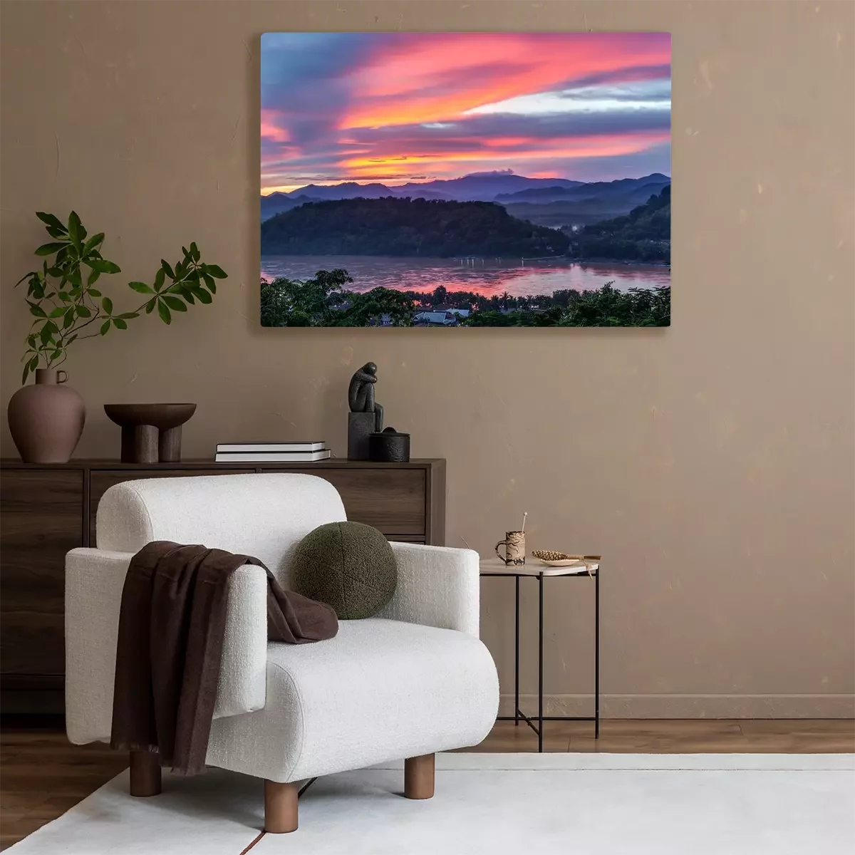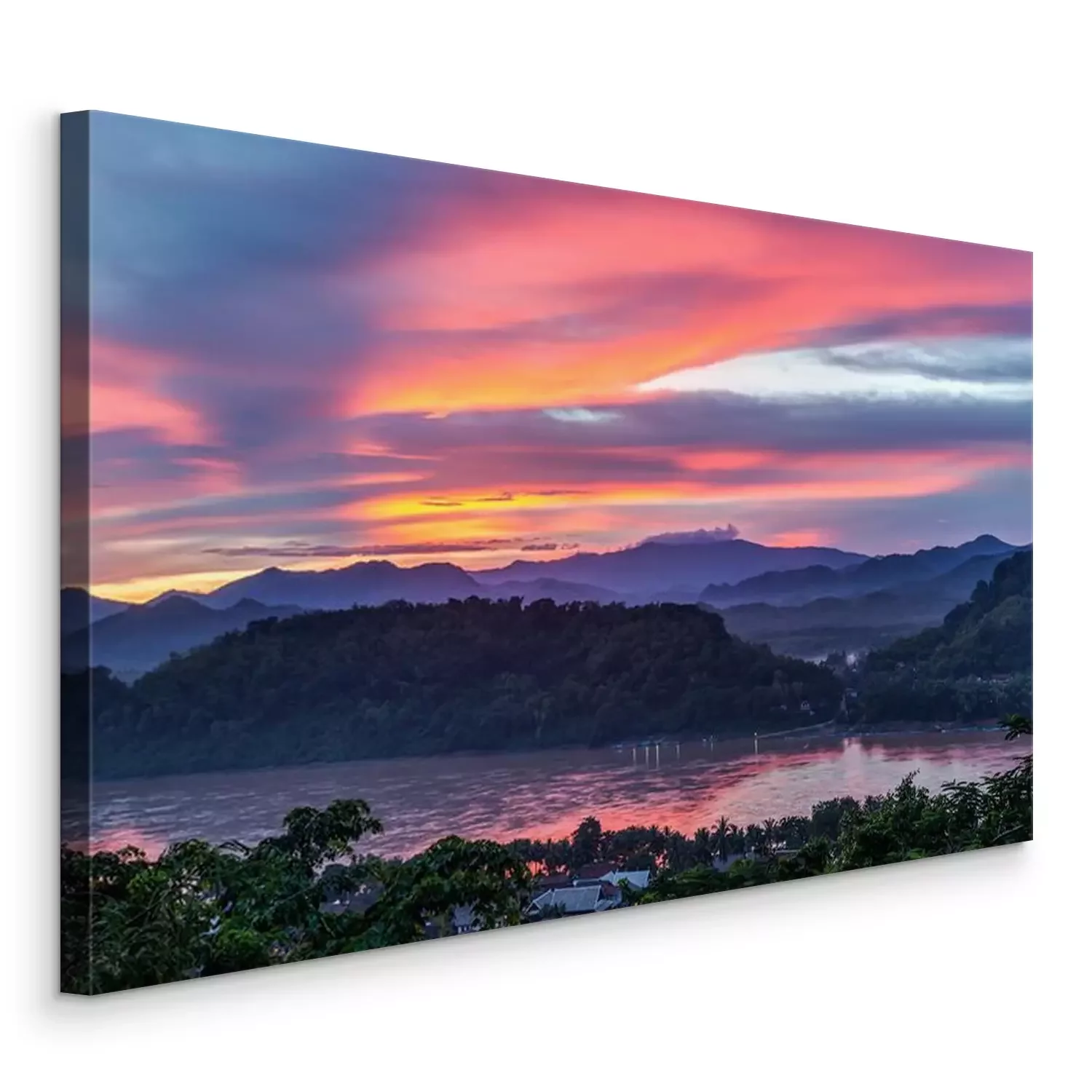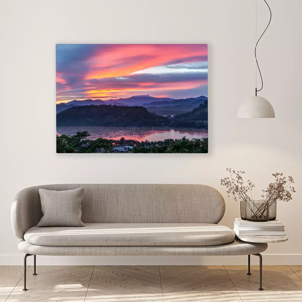 Tableau  Coucher de soleil sur le fleuve Mékong, le mont Phousi, Luang Prabang, Laos