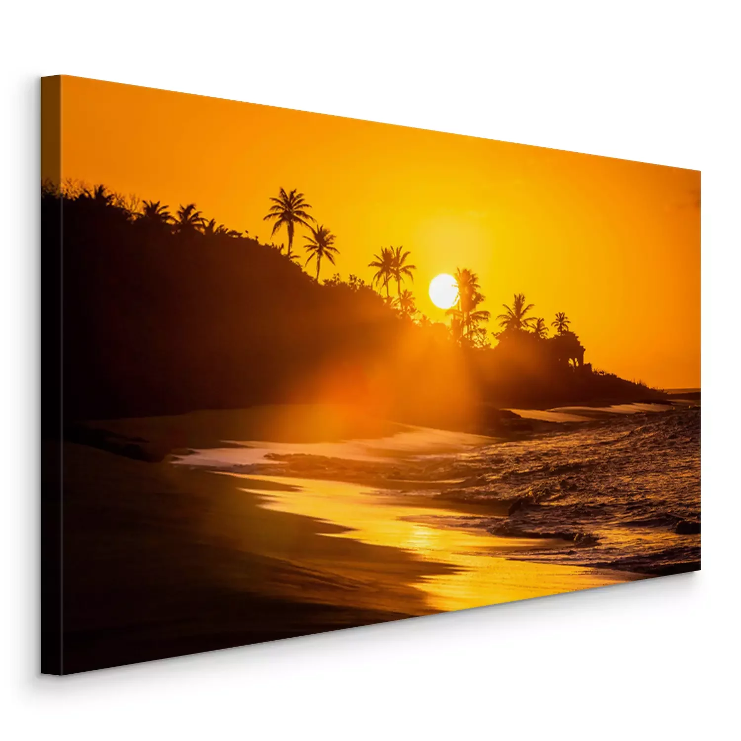 Tableau  Coucher de soleil tropical à la plage avec des palmiers