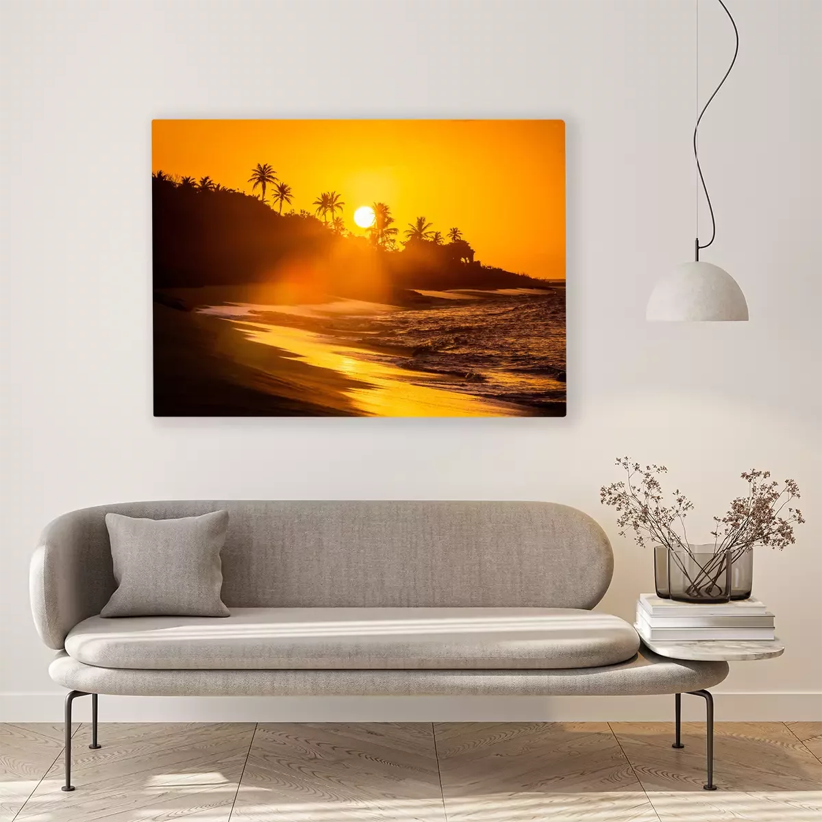 Tableau : Coucher de soleil tropical à la plage avec des palmiers