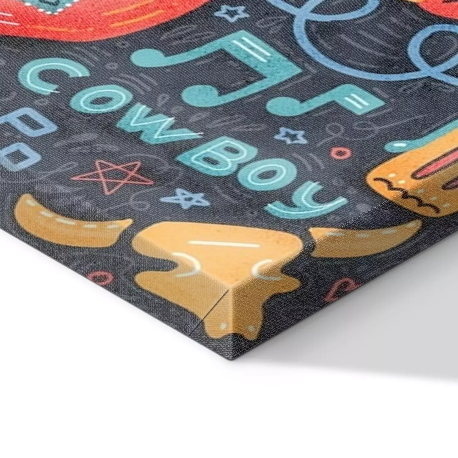 Tableau : Country music print concept for postcards or festival banners. hand drawn illustration in textured flat doodle style. Guitar with written lettering.