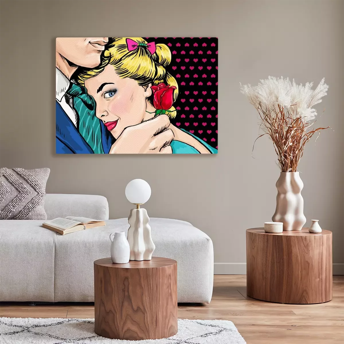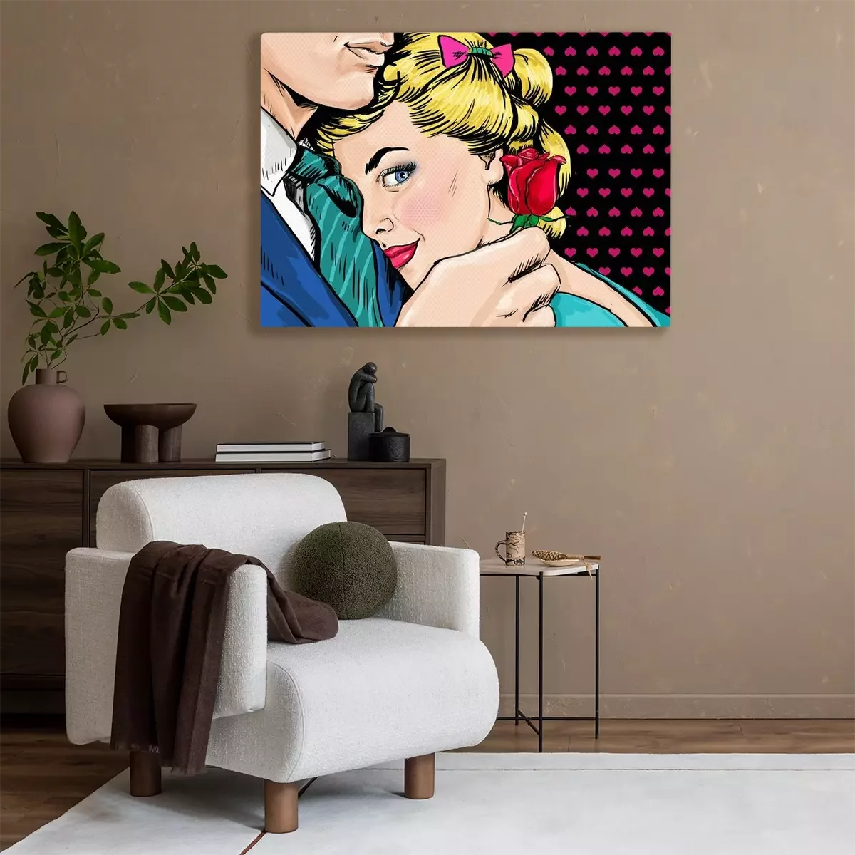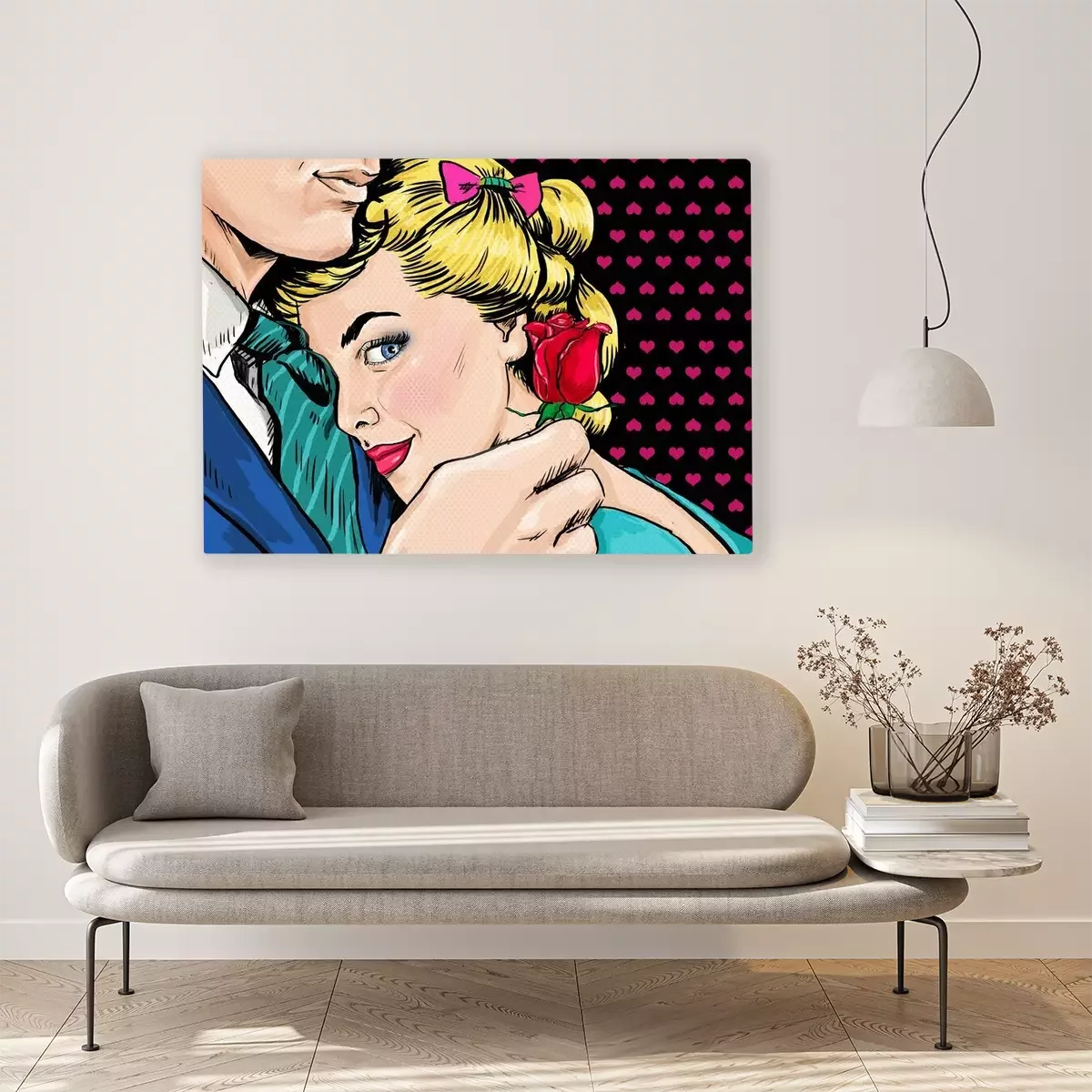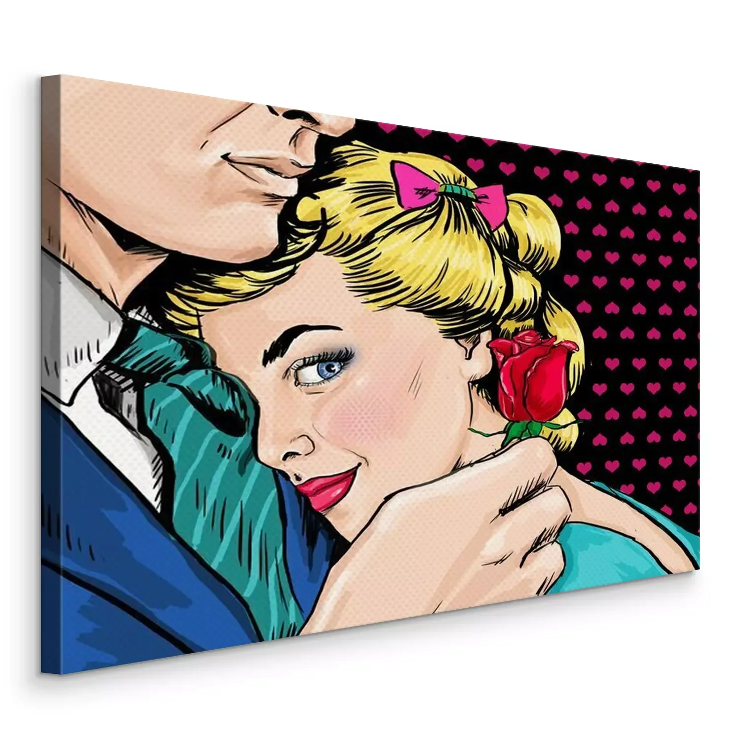 Tableau  Couple d'art de bruit. Couple amoureux. Pop Art l'amour. Carte postale de Saint Valentin. Scène de film d'Hollywood. Vrai amour. Premier baiser. Affiche de film. Amour bande dessinée. Une rose. Femme