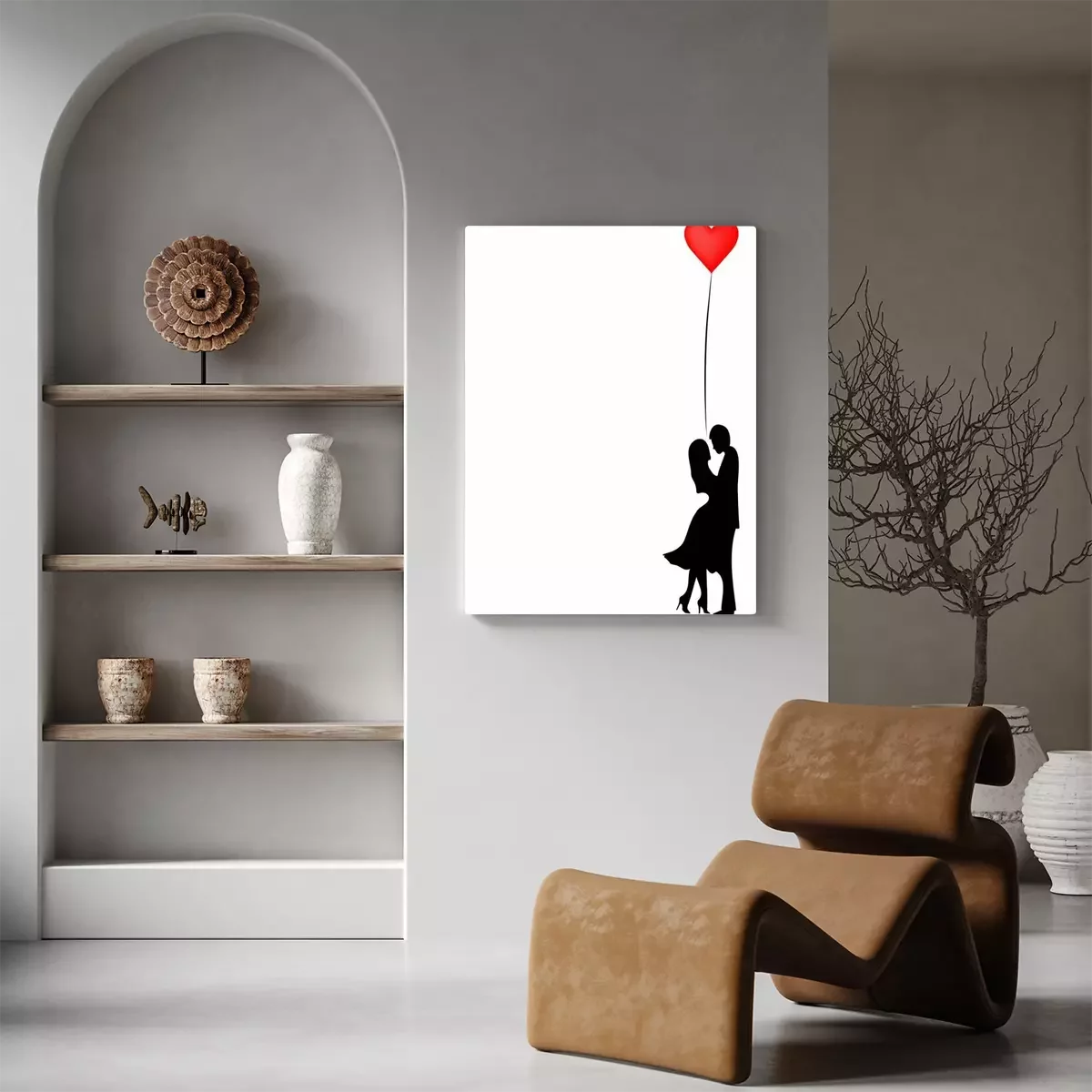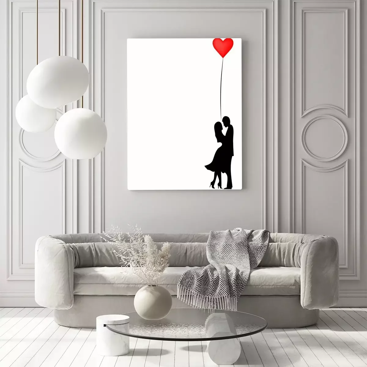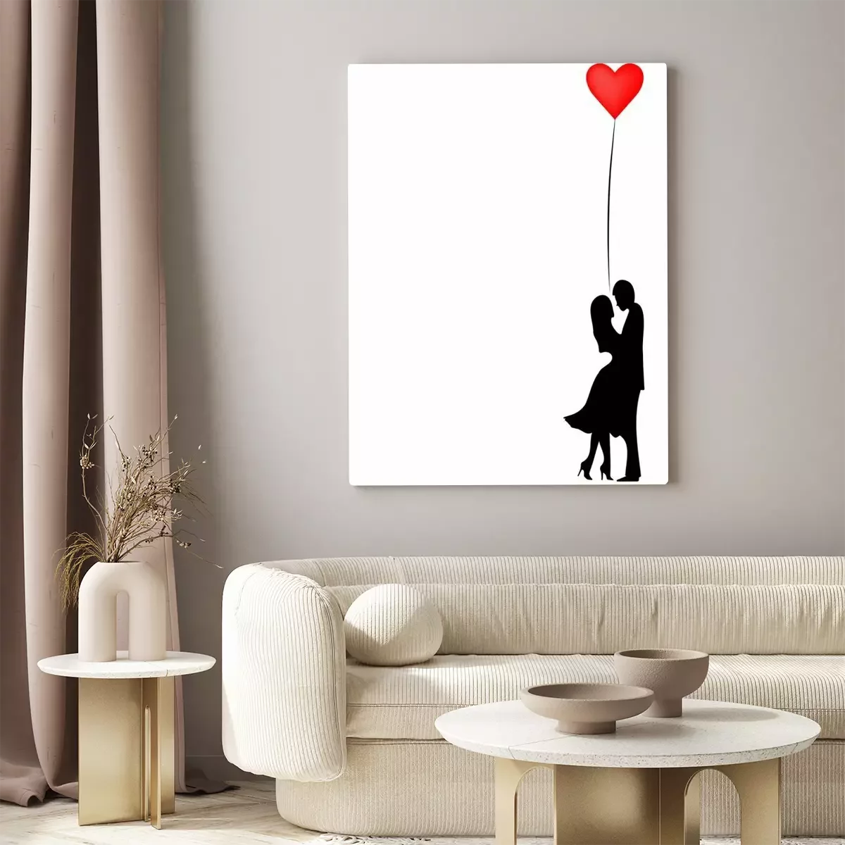 Tableau : Couple romantique avec un ballon en forme de cœur
