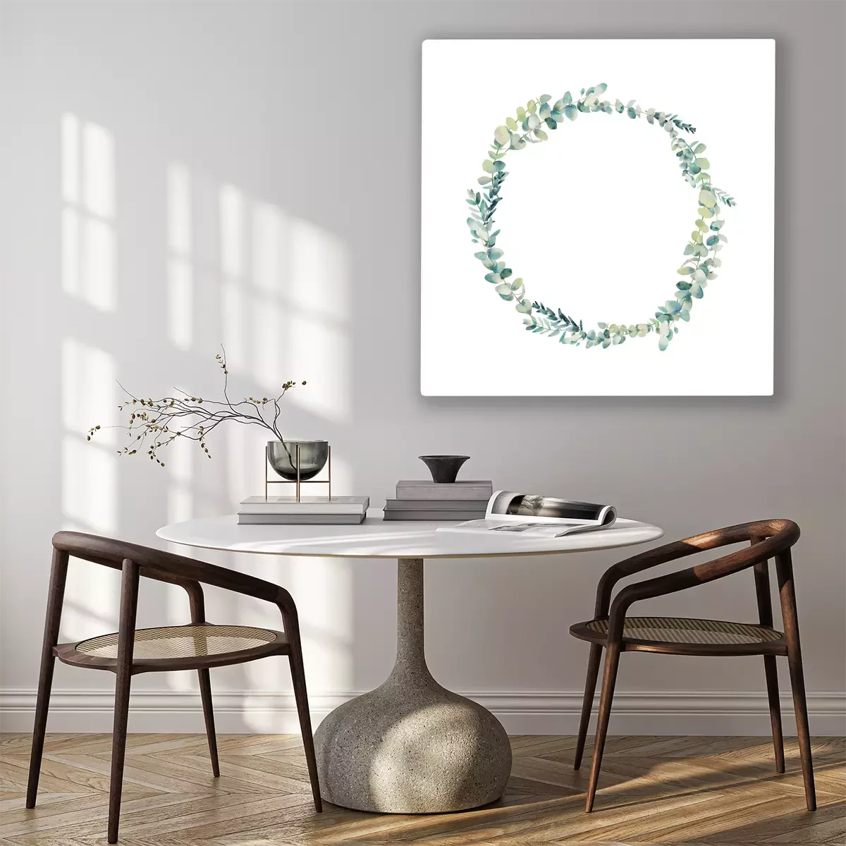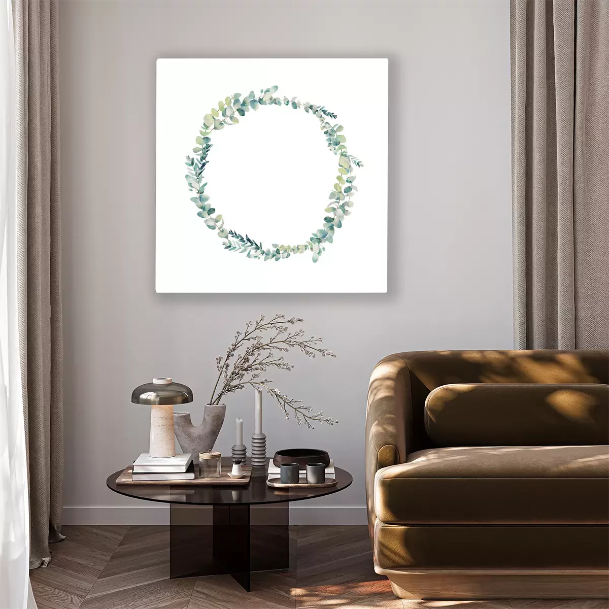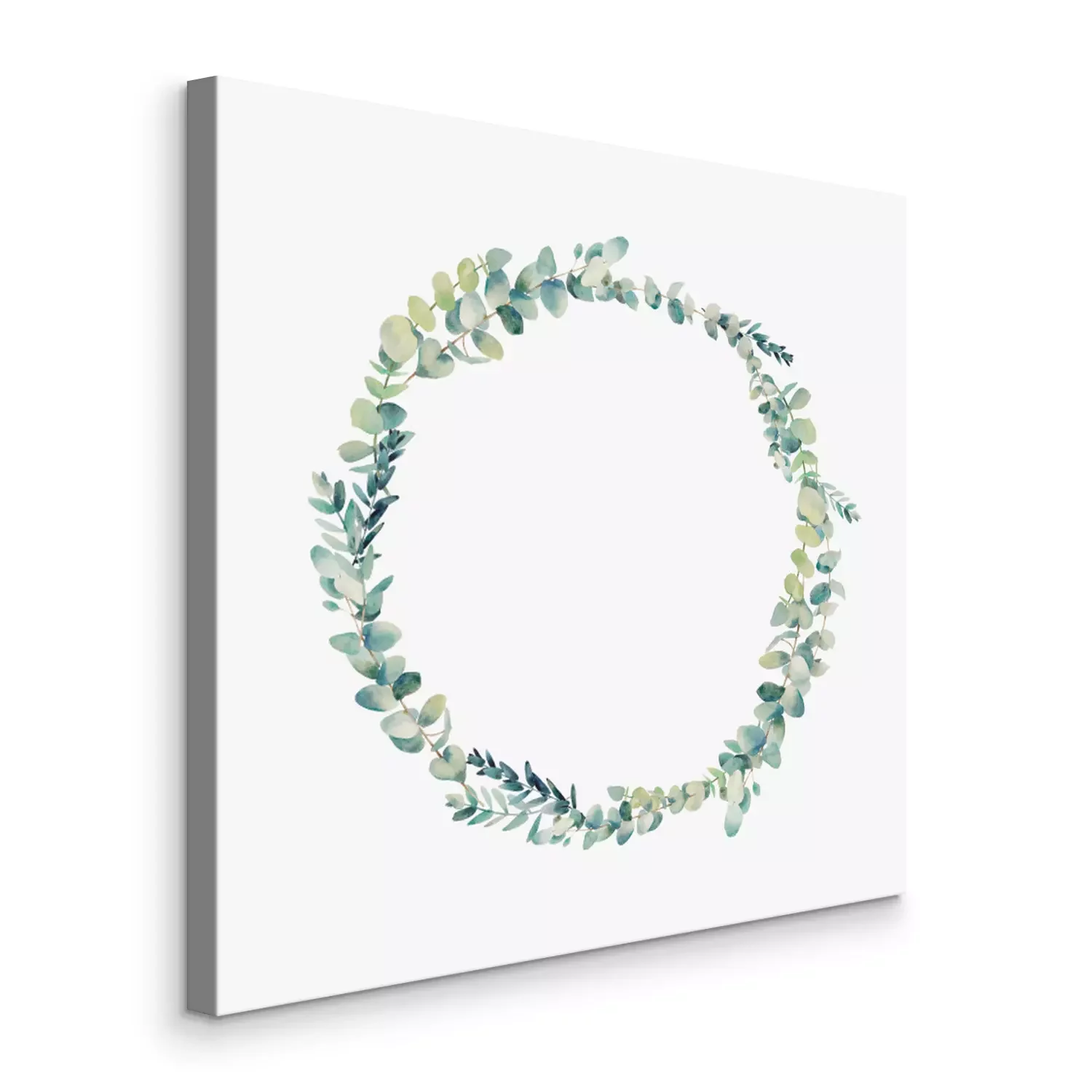Tableau  Couronne d'eucalyptus Aquarelle. Cadre rond floral peint à la main isolé sur fond blanc.