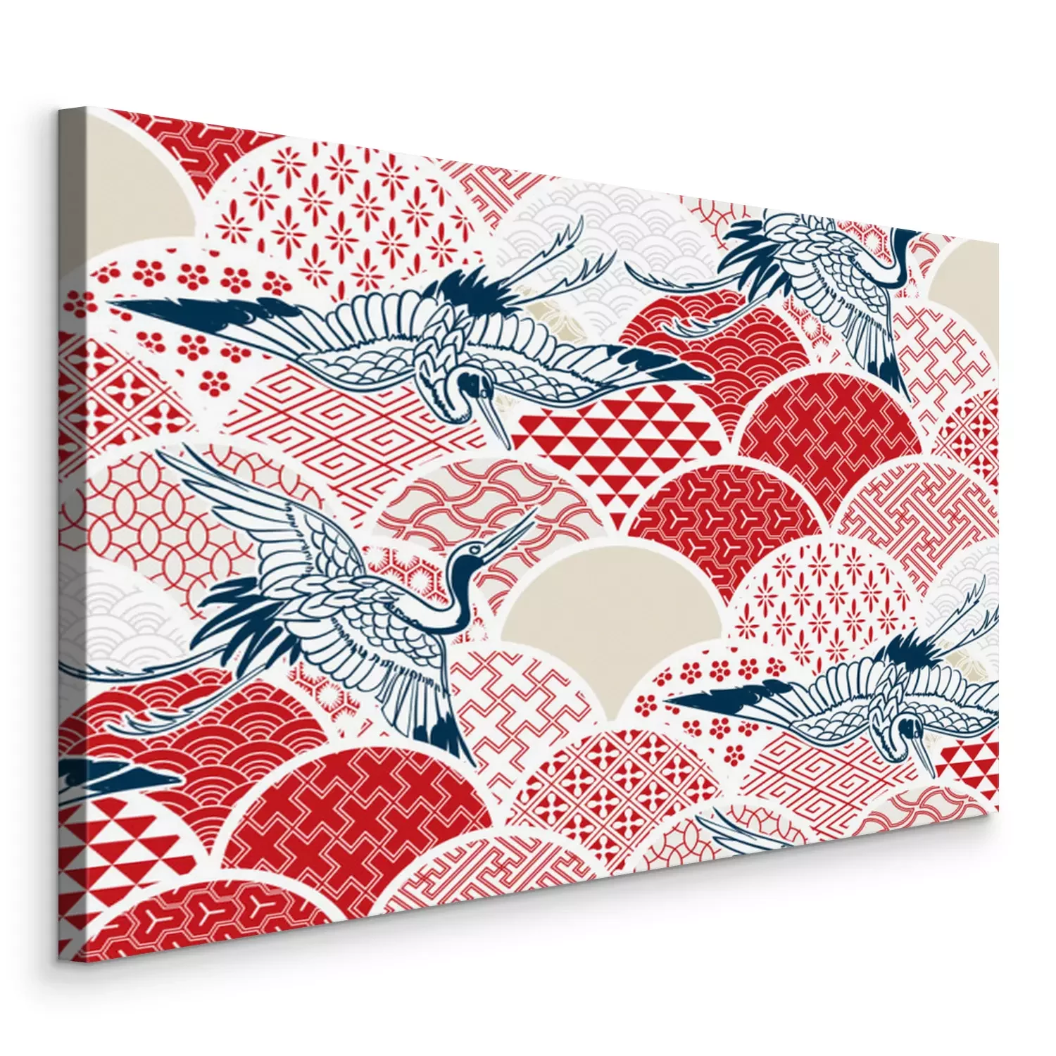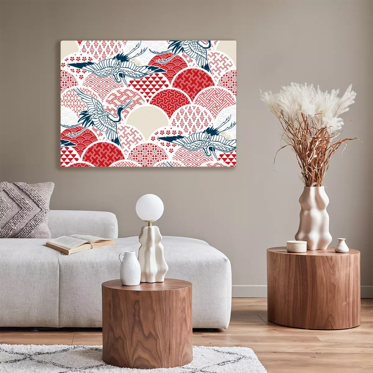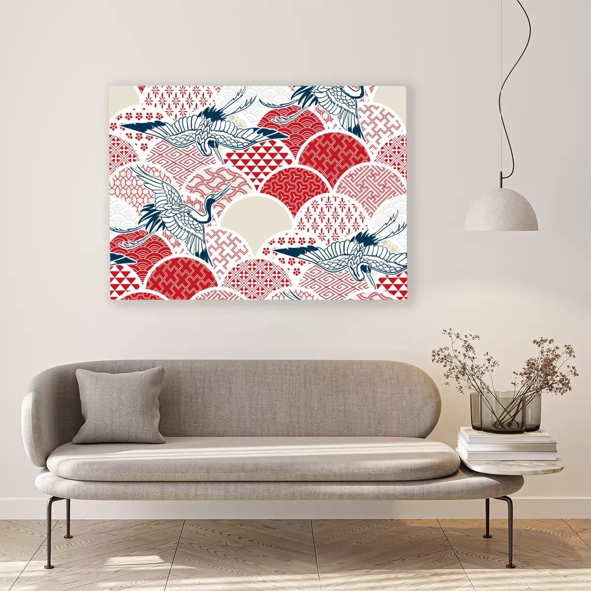 Tableau  crane bird traditional kimono pattern vector sketch illustration line art japanese chinese oriental design