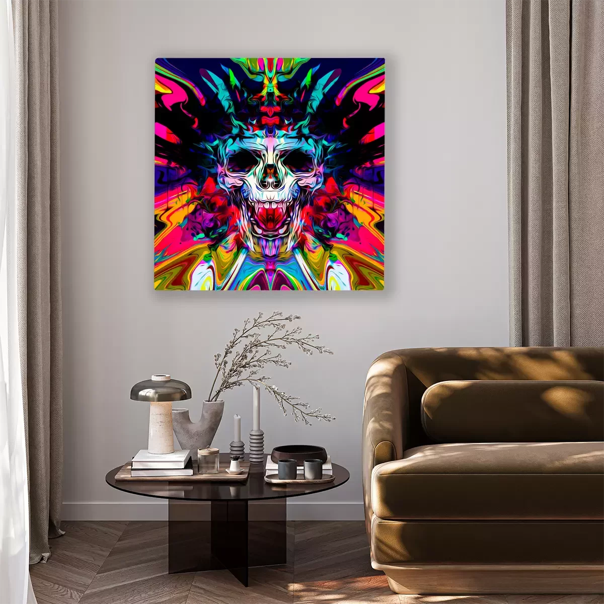 Tableau : Crâne coloré sur fond de graffiti