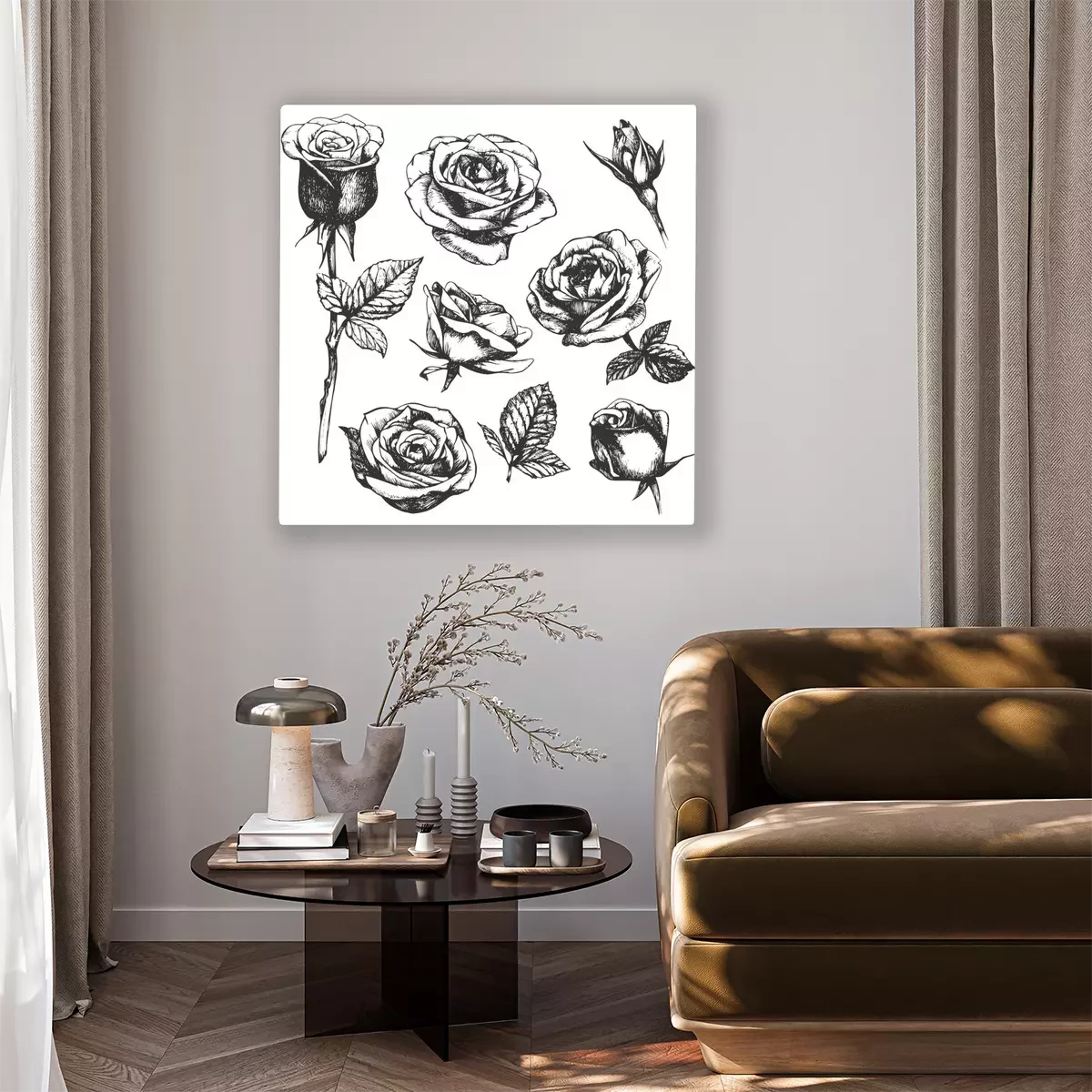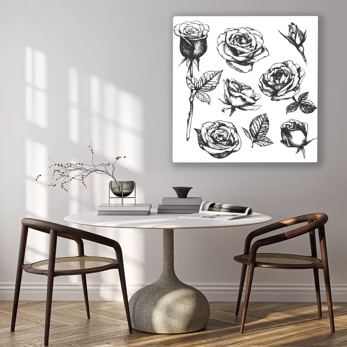 Tableau : Croquis noir et blanc avec des roses