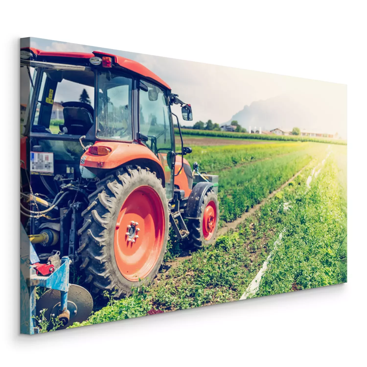 Tableau  Cut out of tractor cultivating field in spring, agriculture